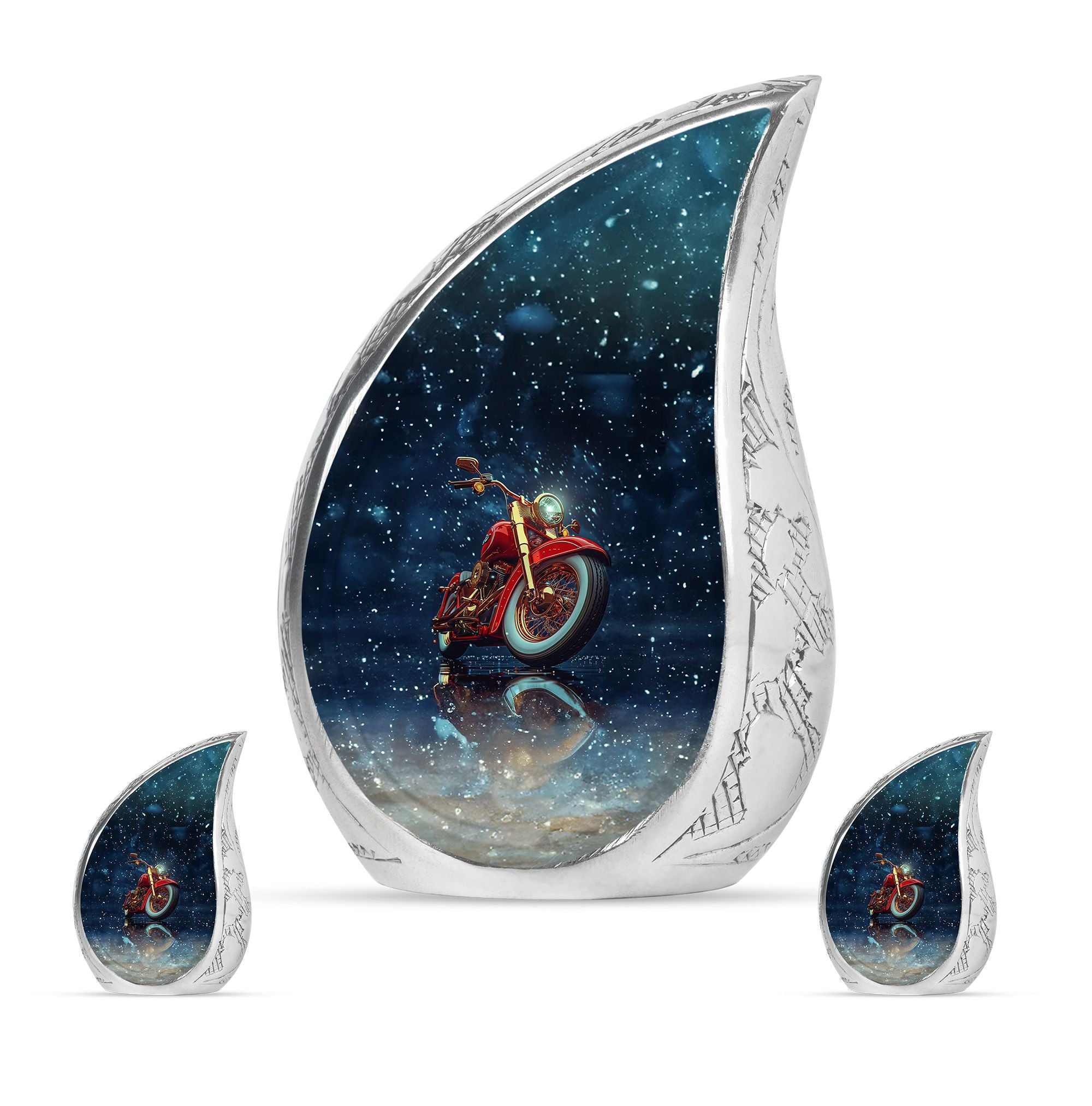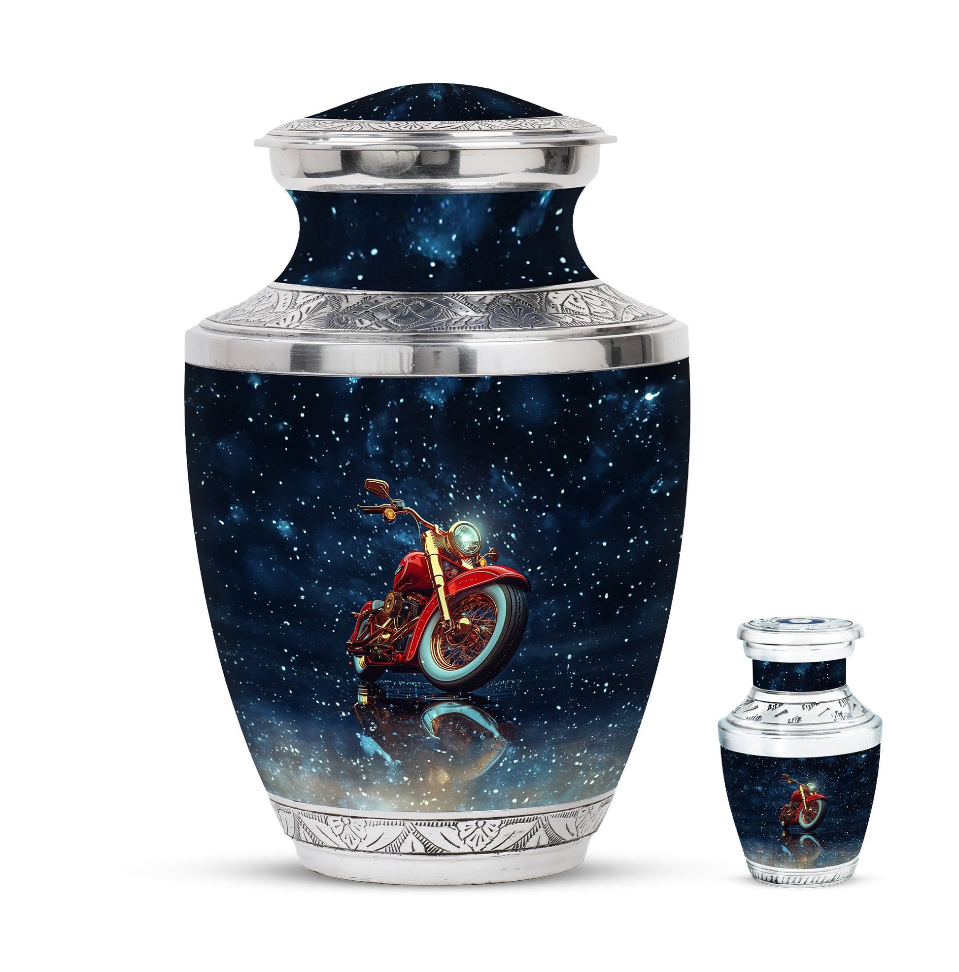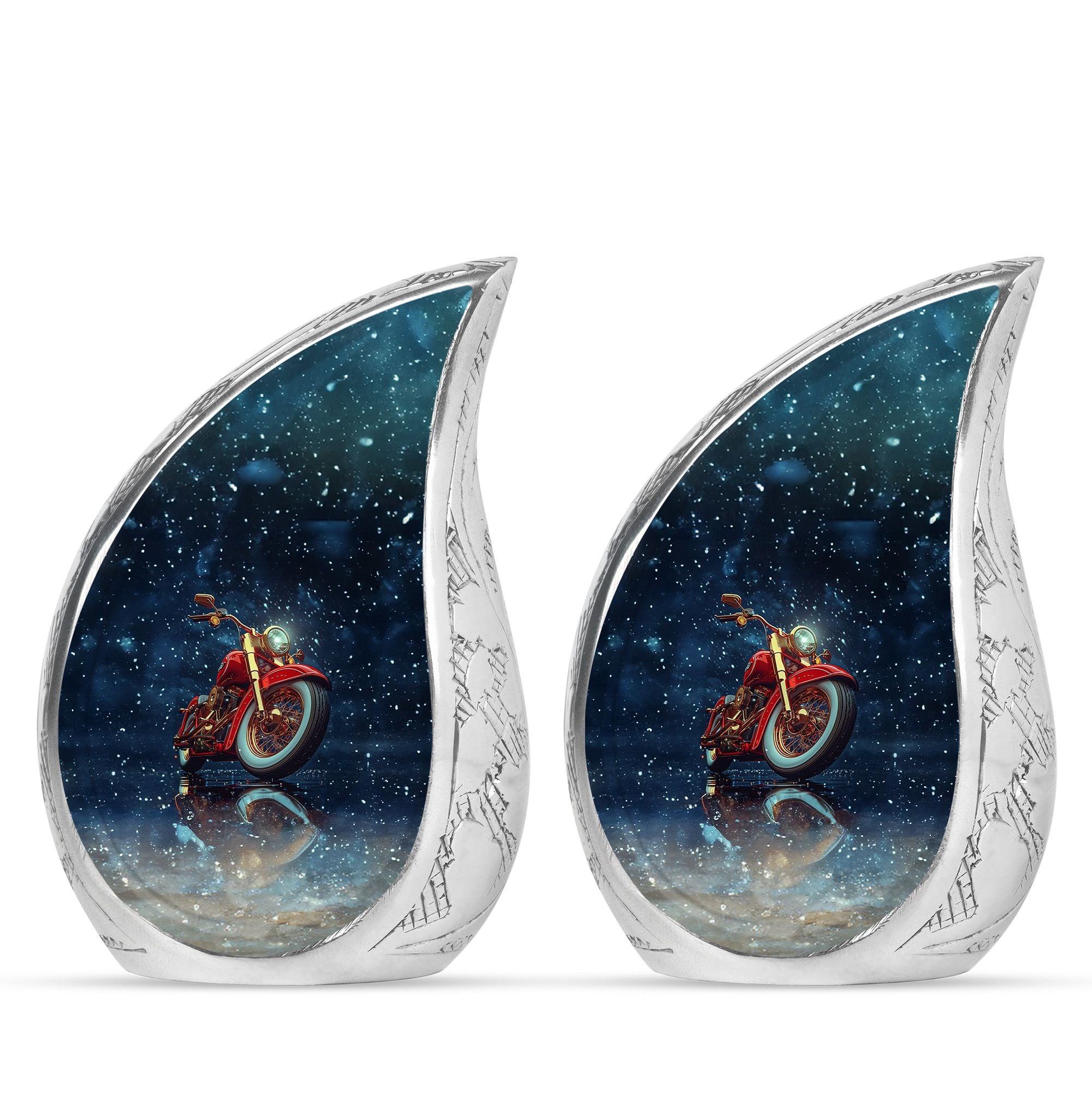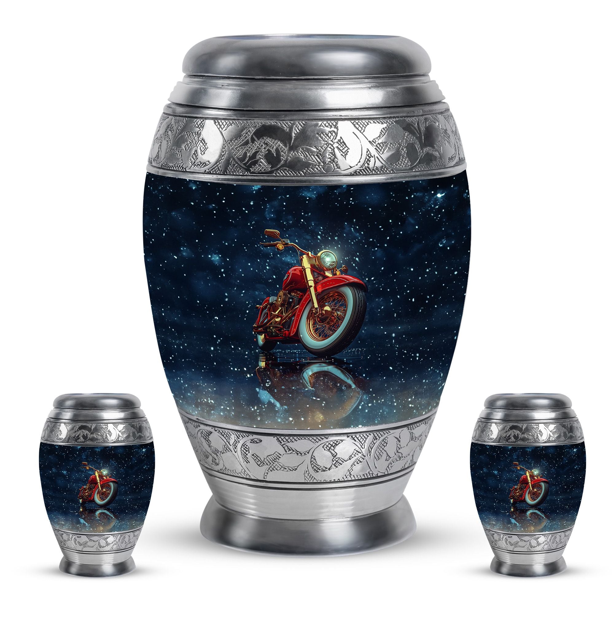 The Red Motorcycle Cremation Urn offers families a heartfelt way to honor the memory of a loved one. With its striking design and snowfall detail, this memorial urn symbolizes both strength and serenity, making it a meaningful choice for funeral urns for human ashes or adult funeral urns. Its design reflects individuality while providing comfort and dignity.