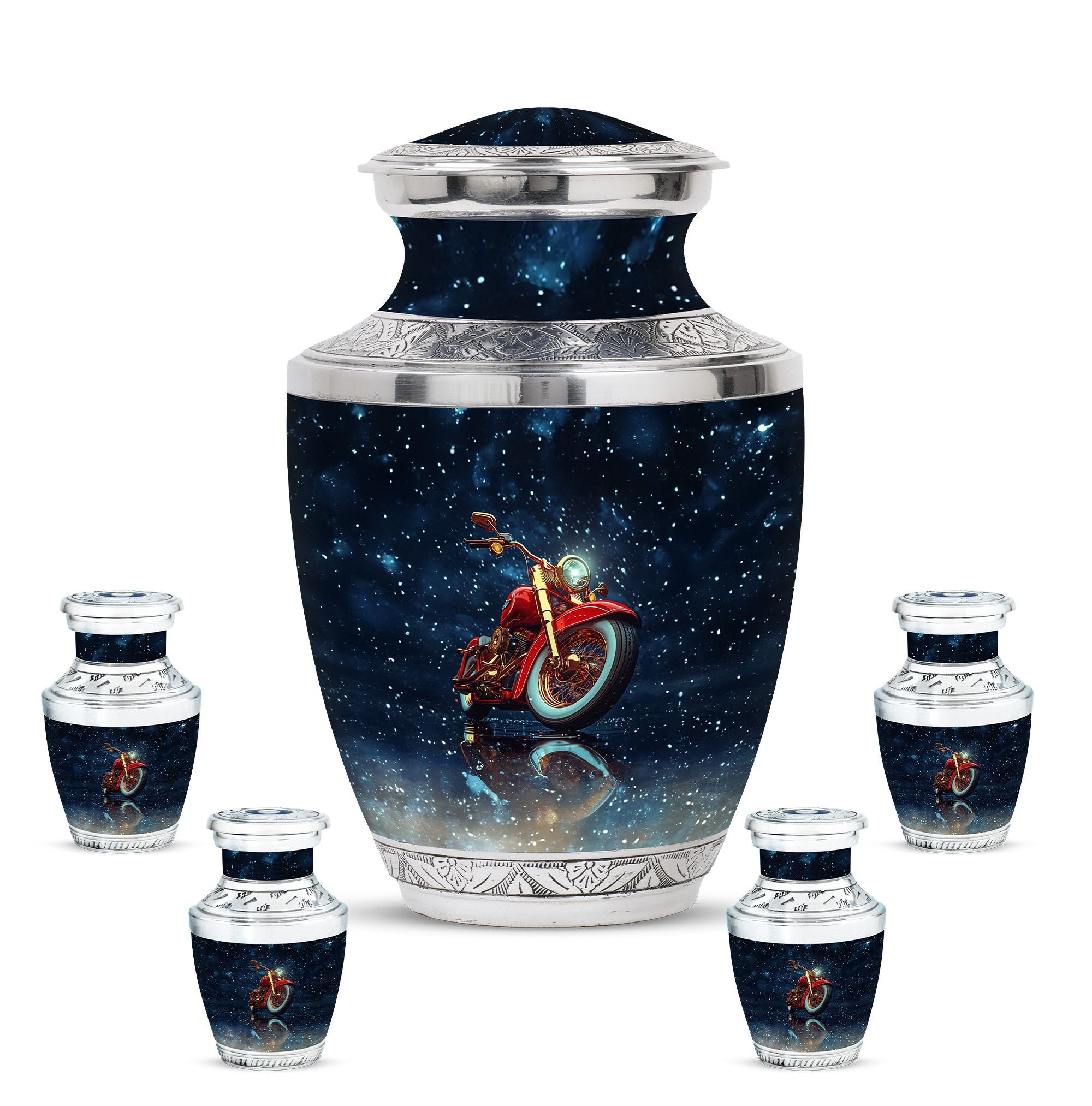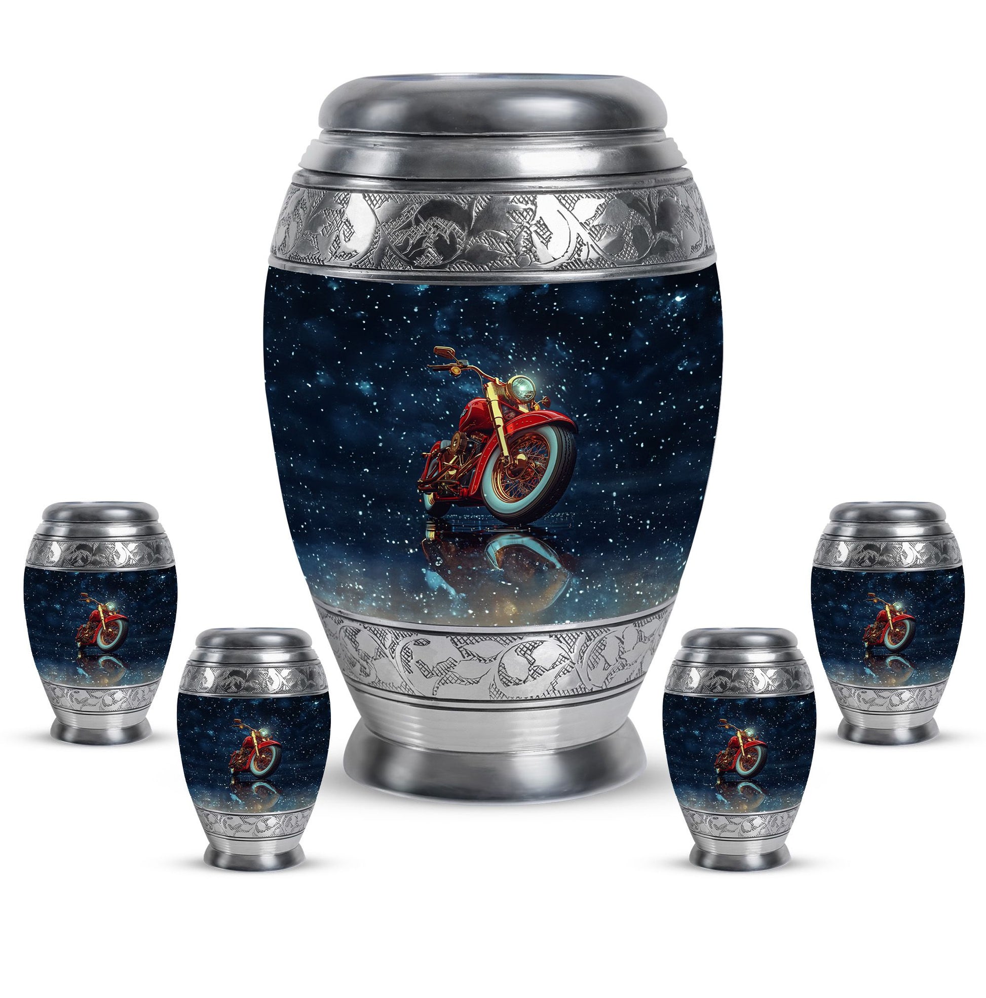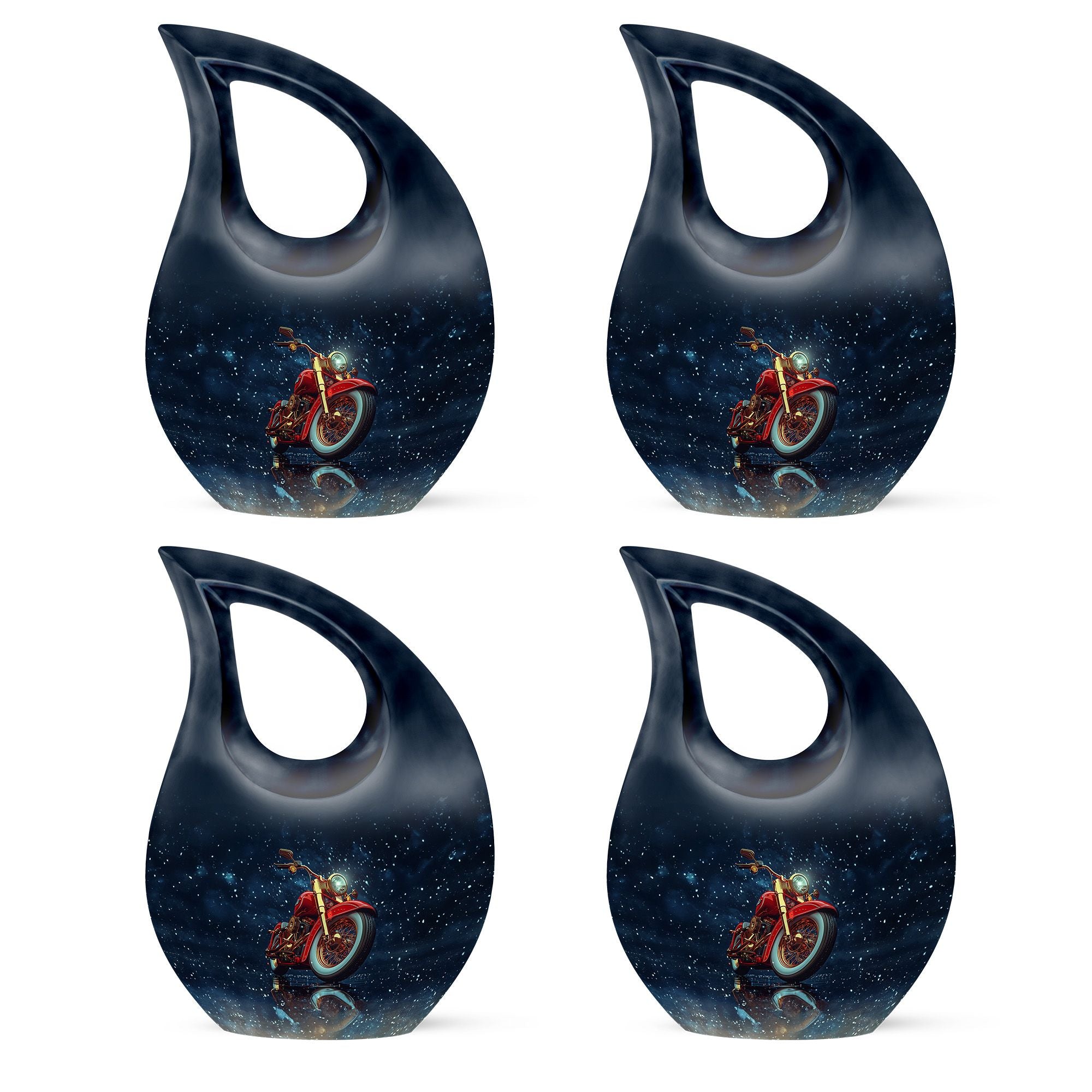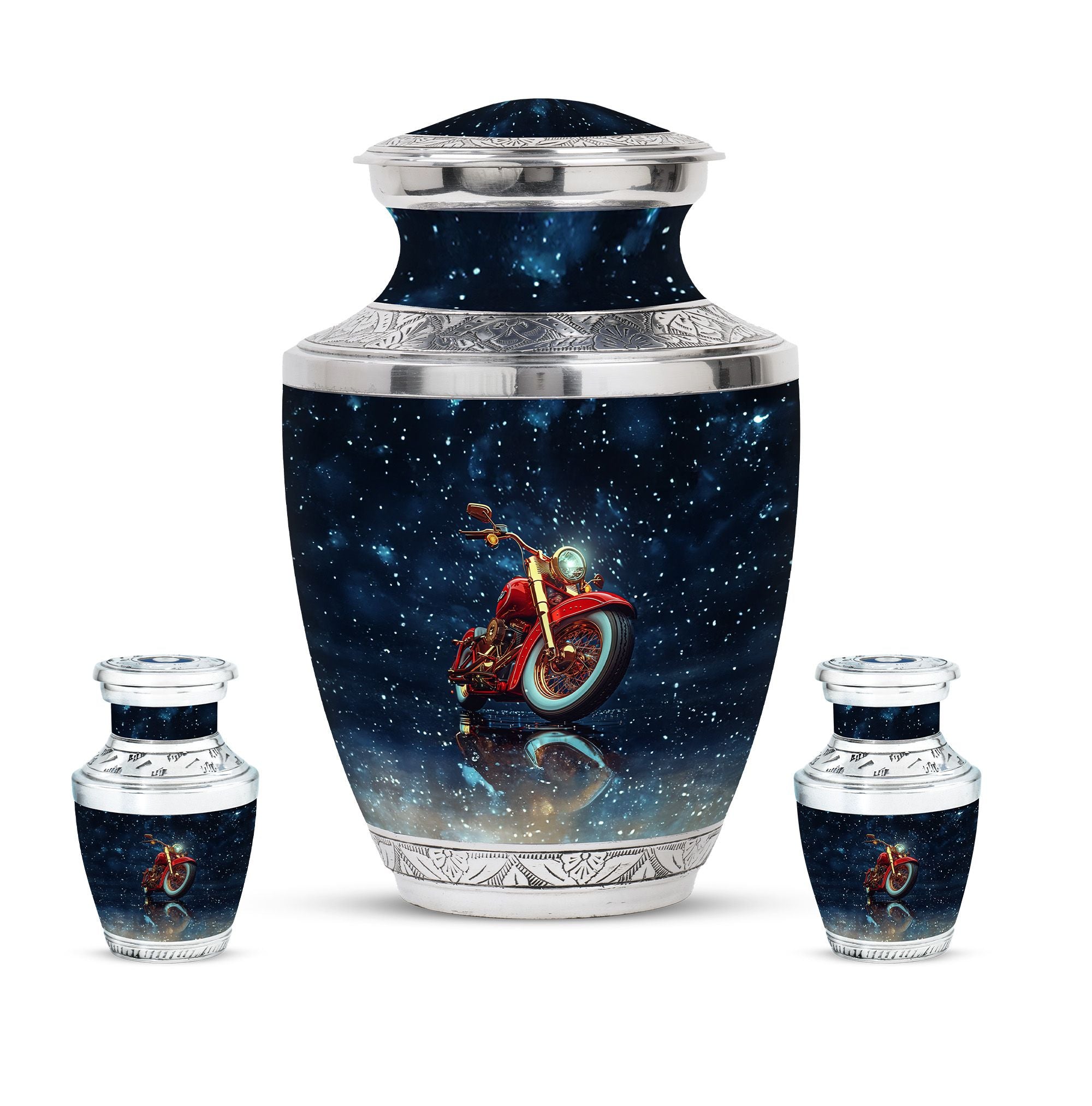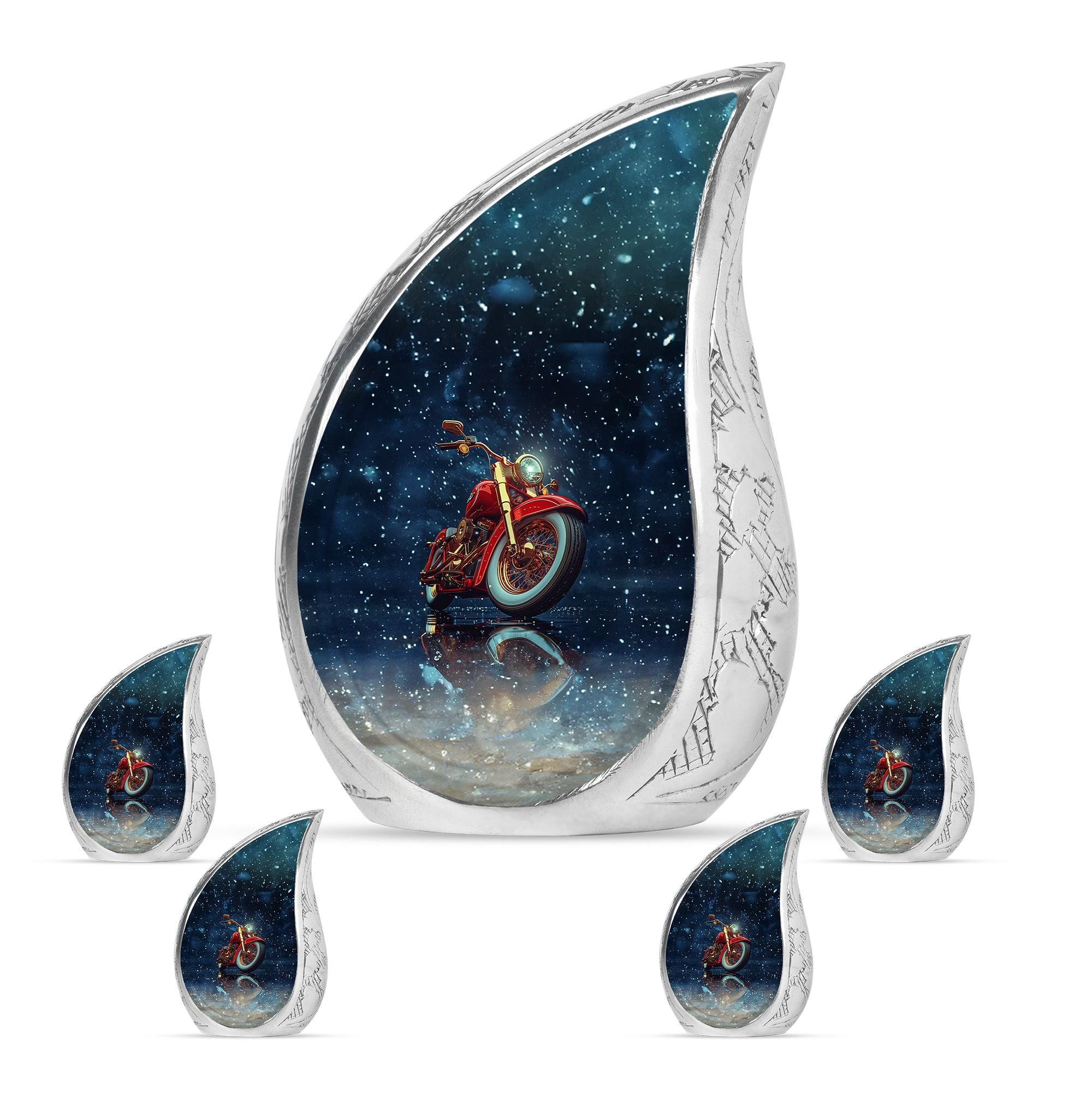 The Red Motorcycle Cremation Urn offers families a heartfelt way to honor the memory of a loved one. With its striking design and snowfall detail, this memorial urn symbolizes both strength and serenity, making it a meaningful choice for funeral urns for human ashes or adult funeral urns. Its design reflects individuality while providing comfort and dignity.