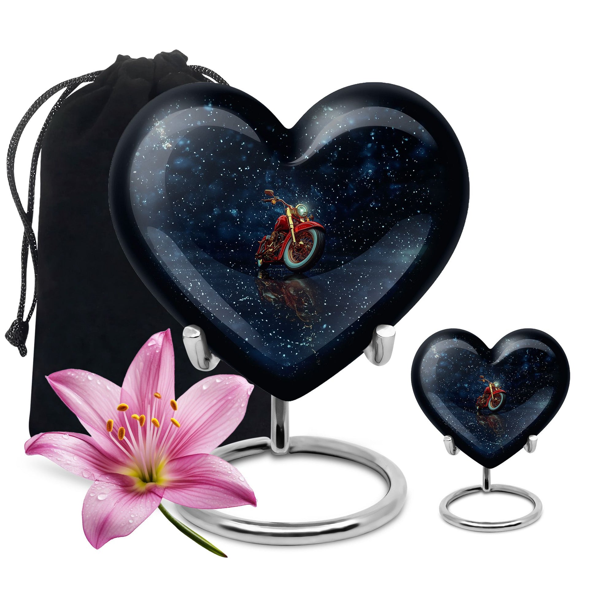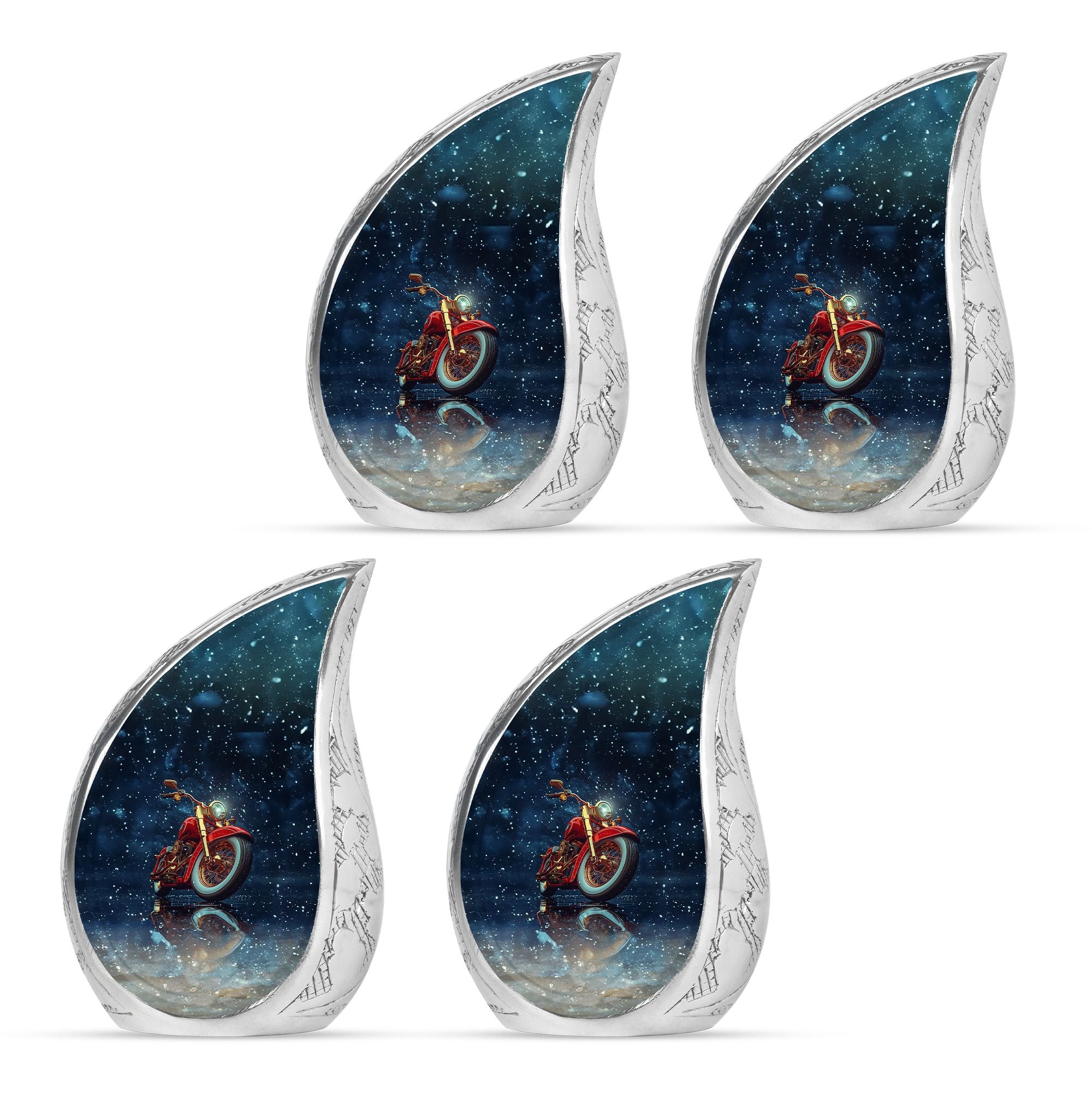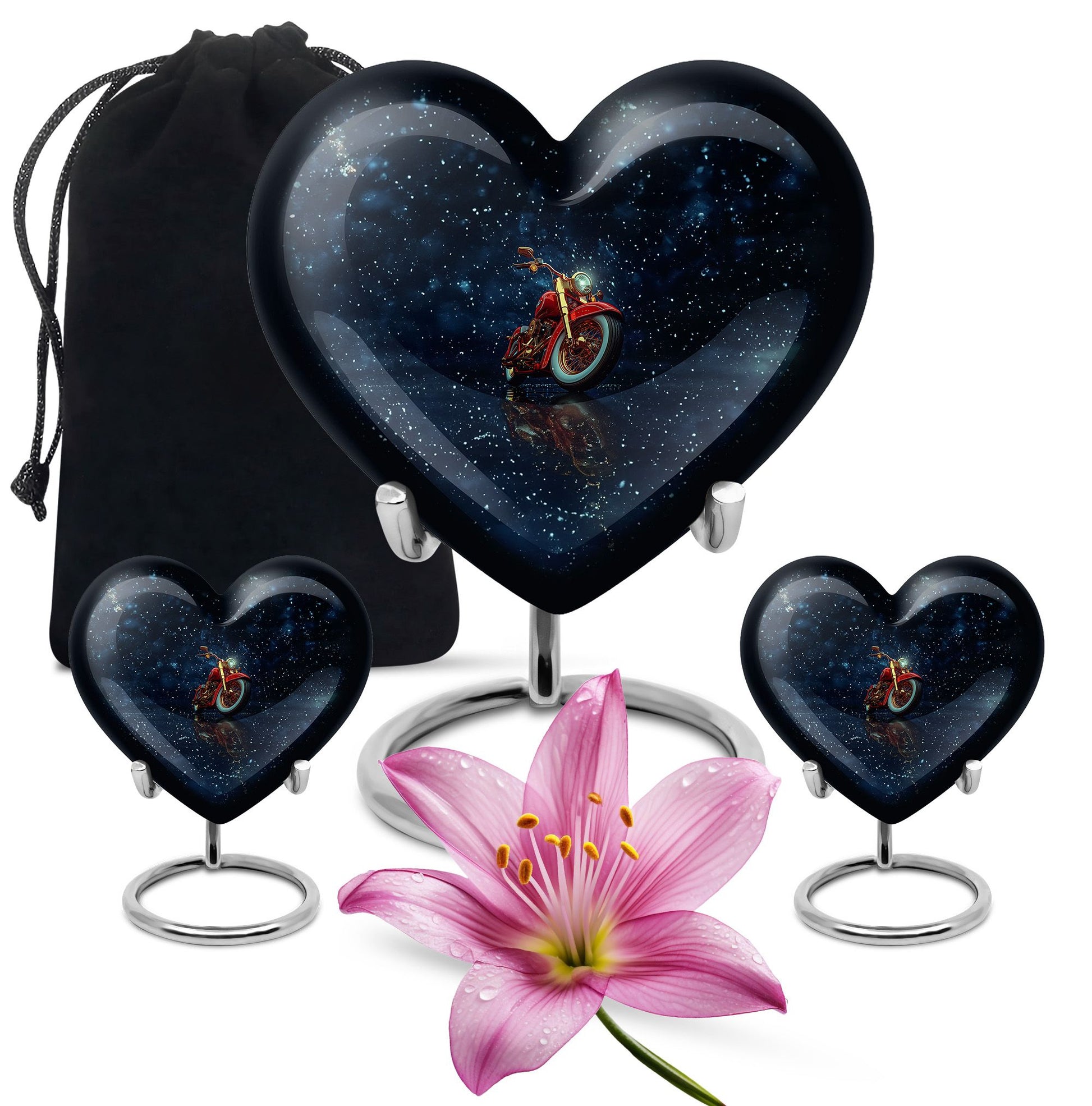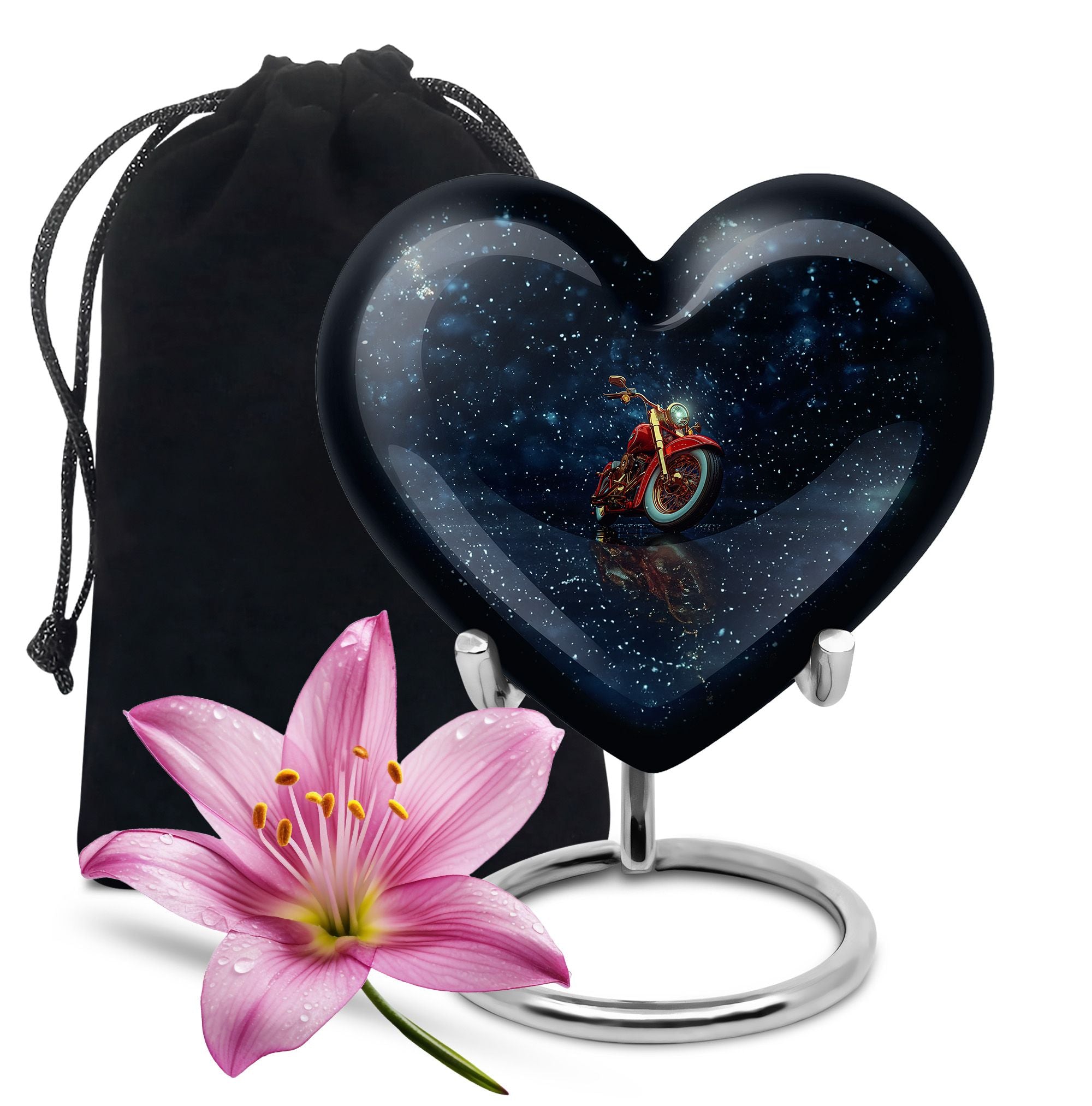 The Red Motorcycle Cremation Urn offers families a heartfelt way to honor the memory of a loved one. With its striking design and snowfall detail, this memorial urn symbolizes both strength and serenity, making it a meaningful choice for funeral urns for human ashes or adult funeral urns. Its design reflects individuality while providing comfort and dignity.