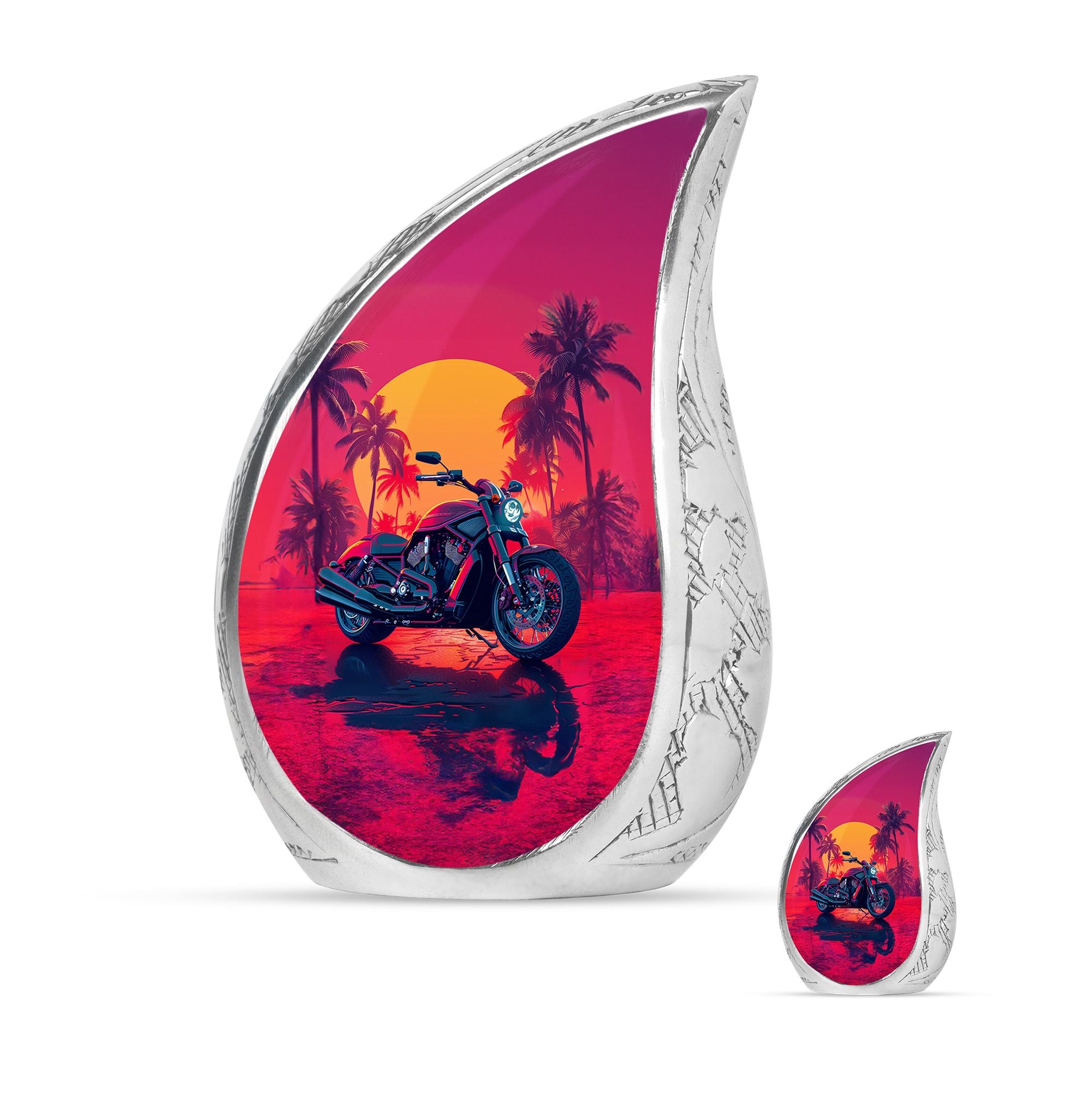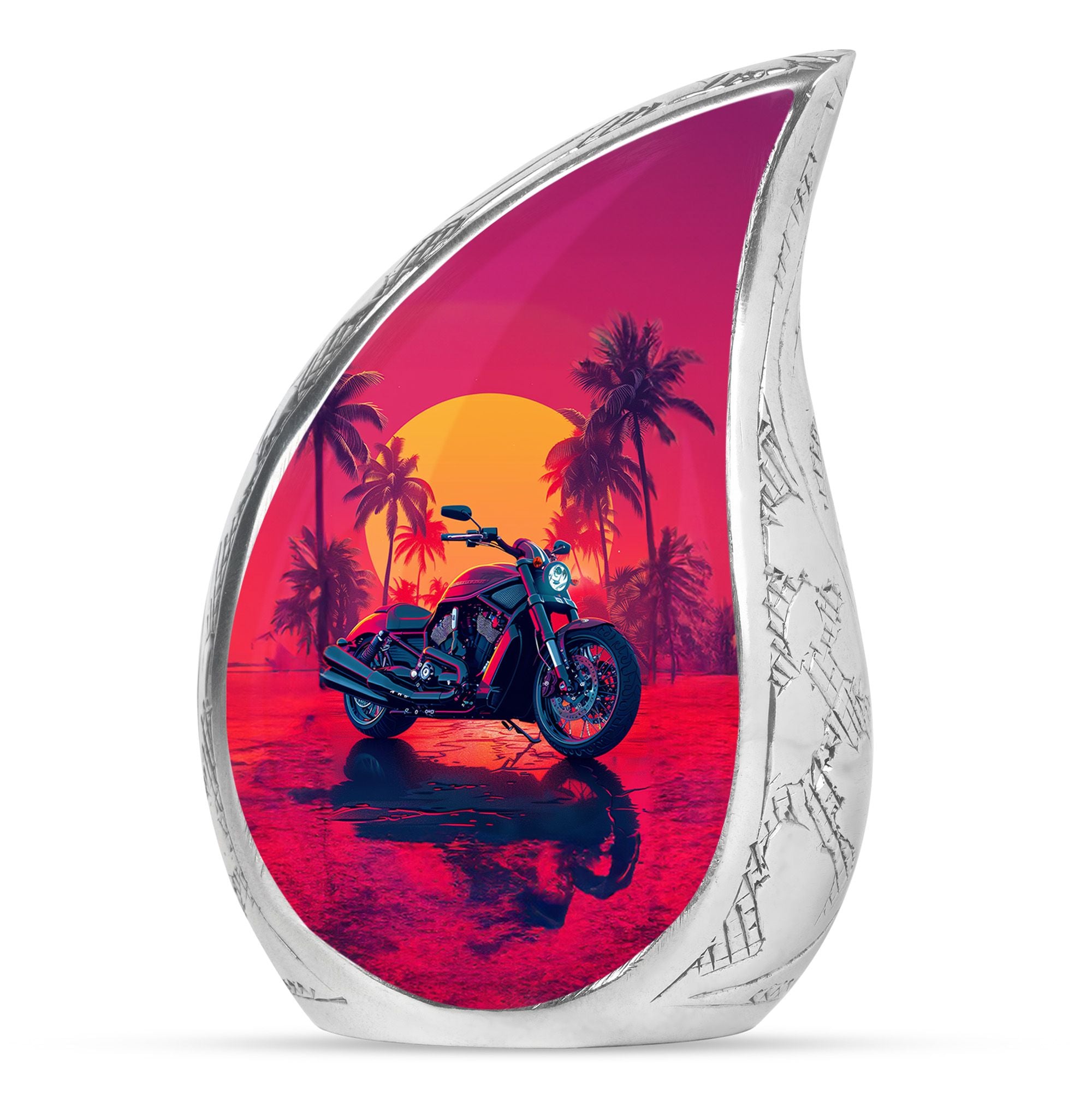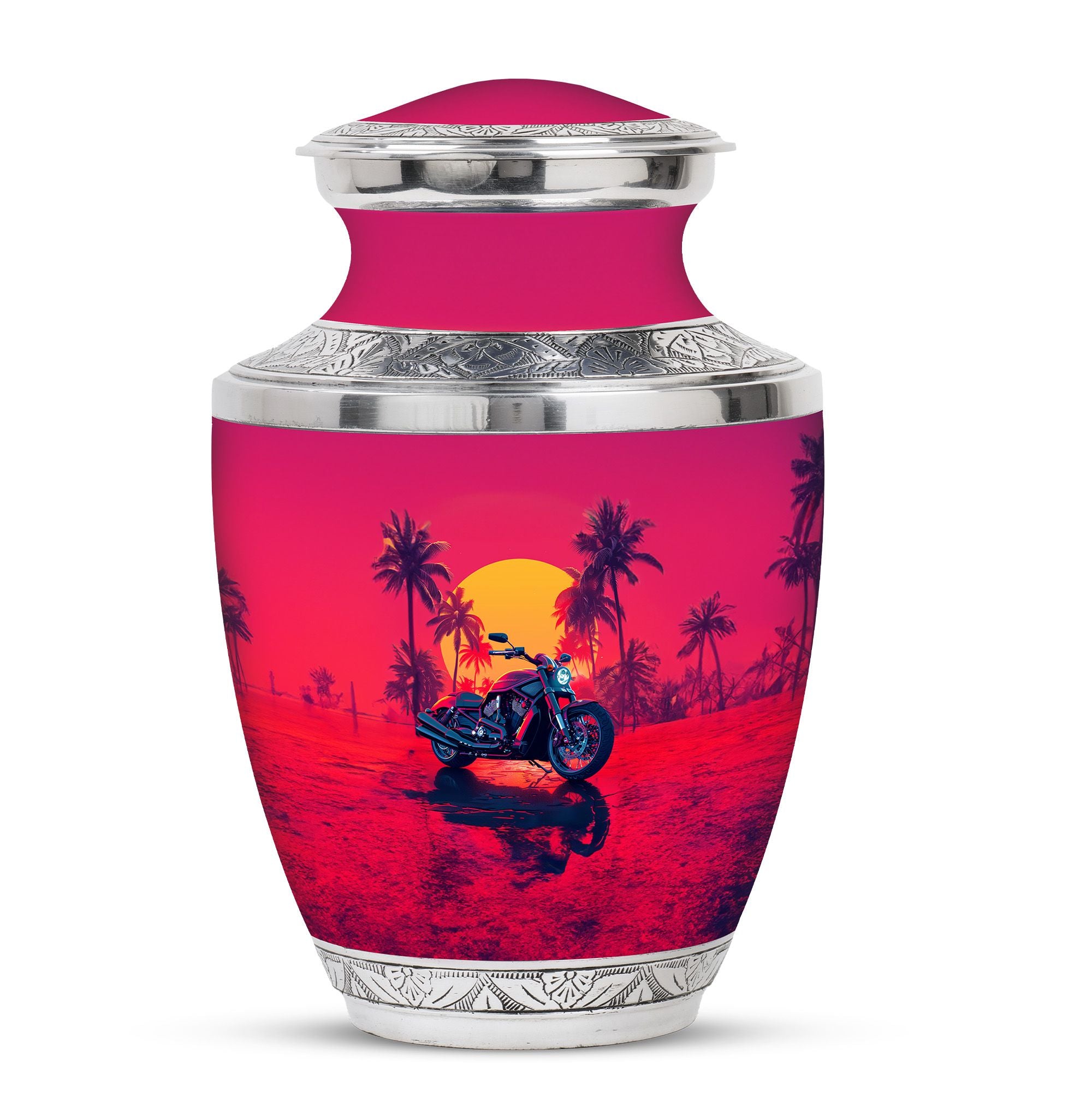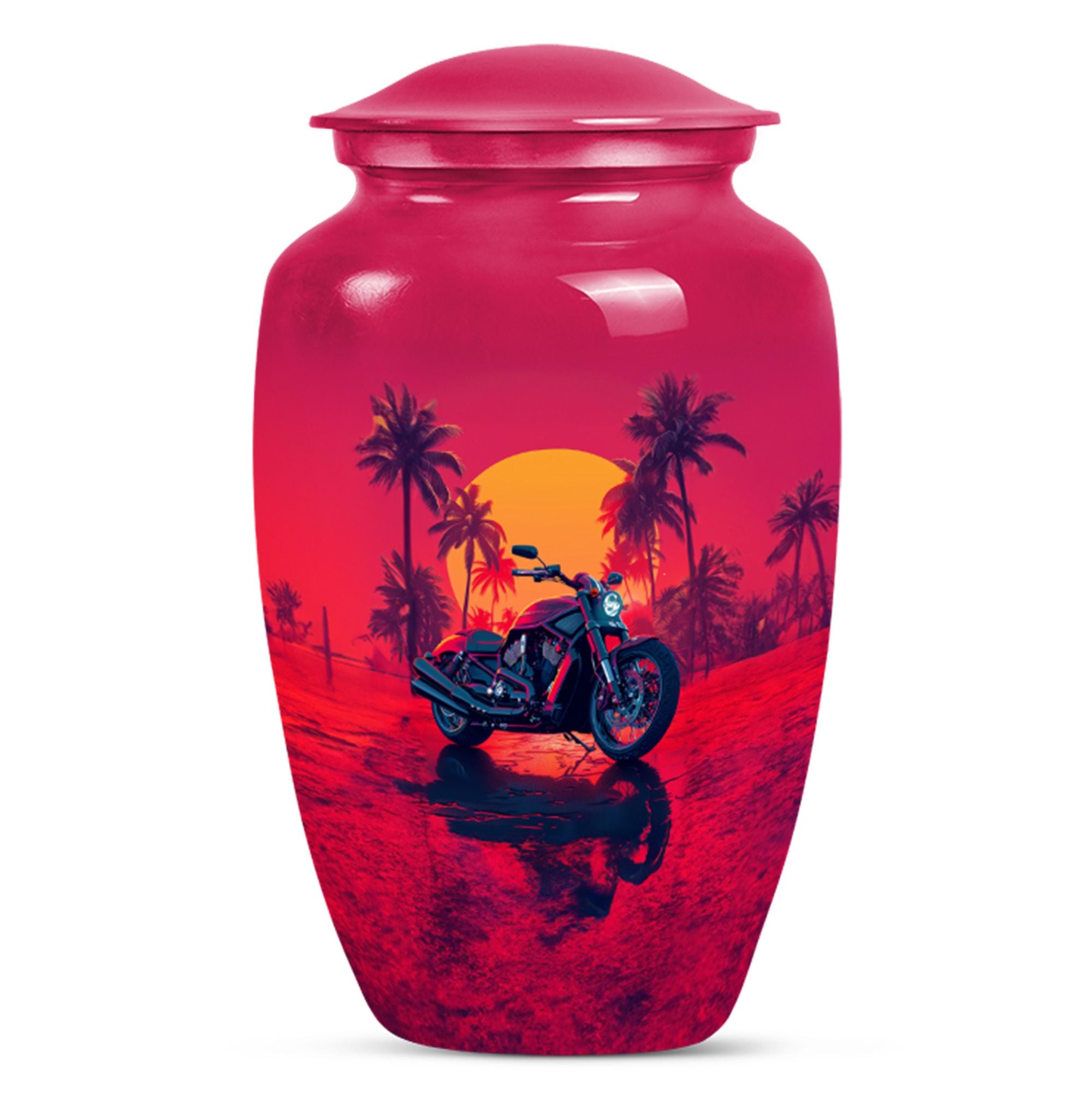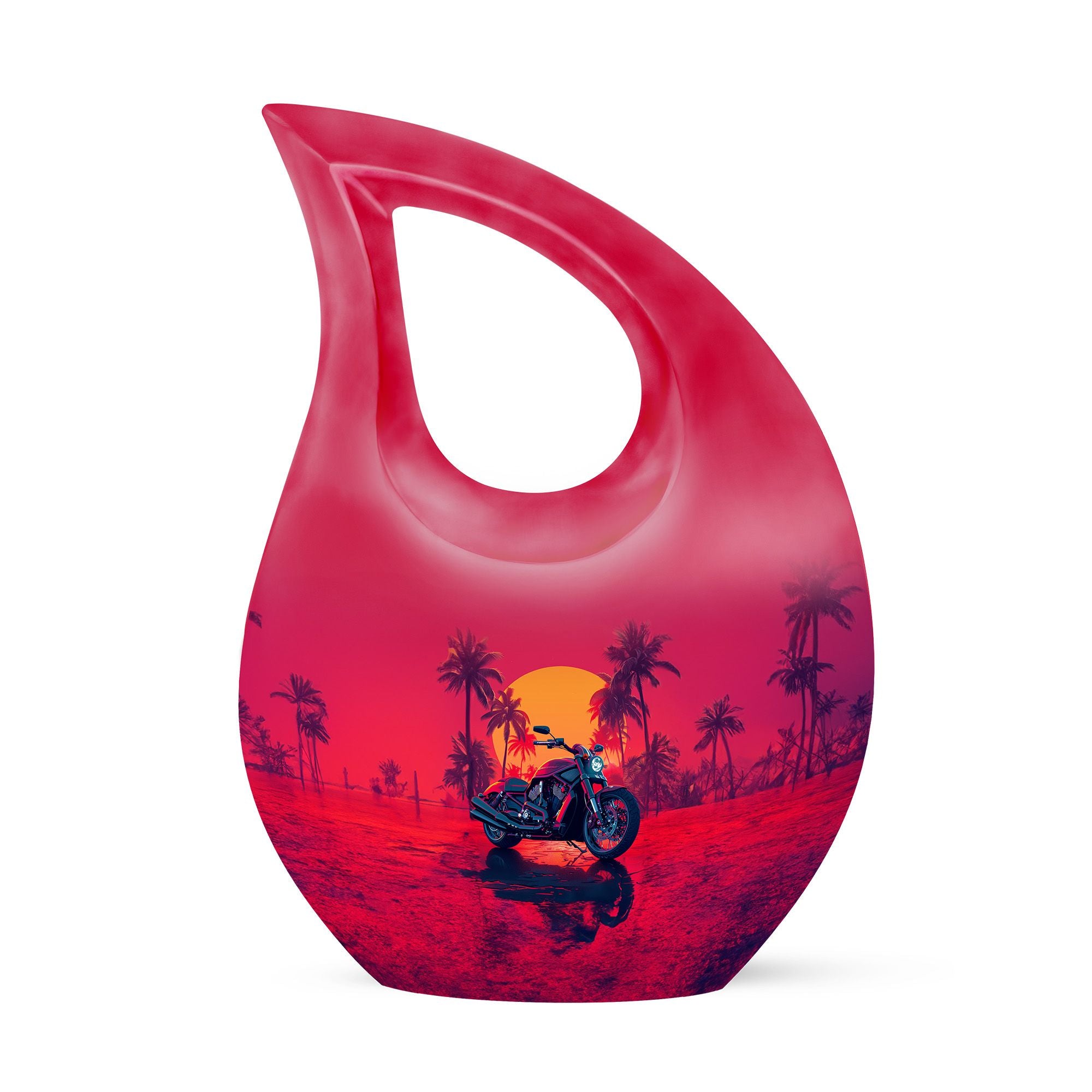 The Motorcycle Cremation Funeral Urn in Pink Sunset is a meaningful way to celebrate a loved one’s journey with dignity and grace. This design symbolizes adventure, freedom, and everlasting memories, making it ideal for families seeking a small urn for ashes for women, urn for ashes for women small, or cremation urns for men.