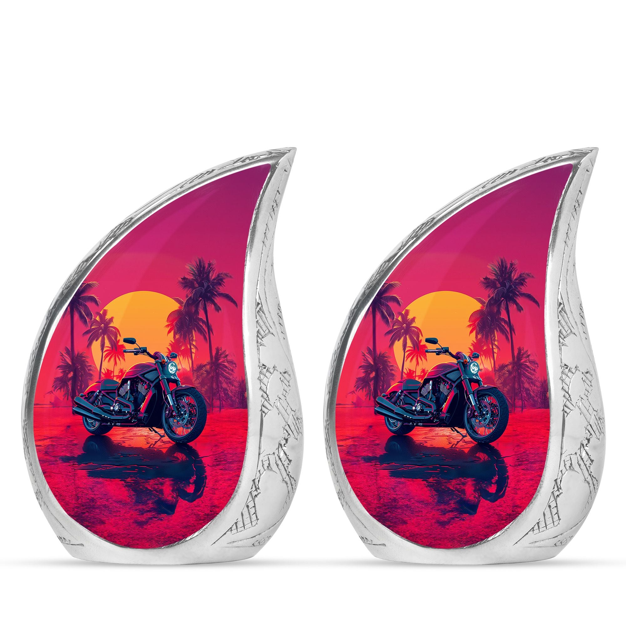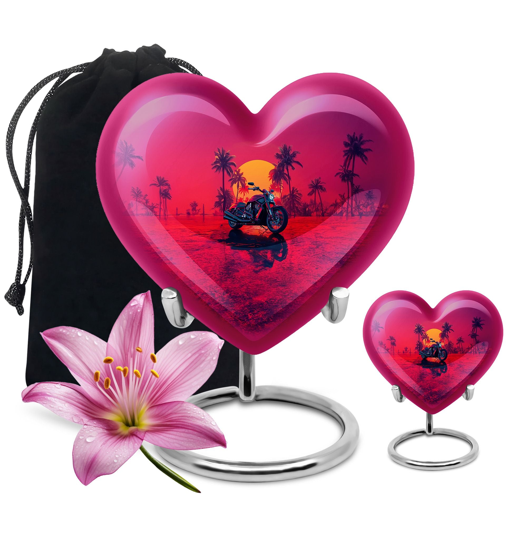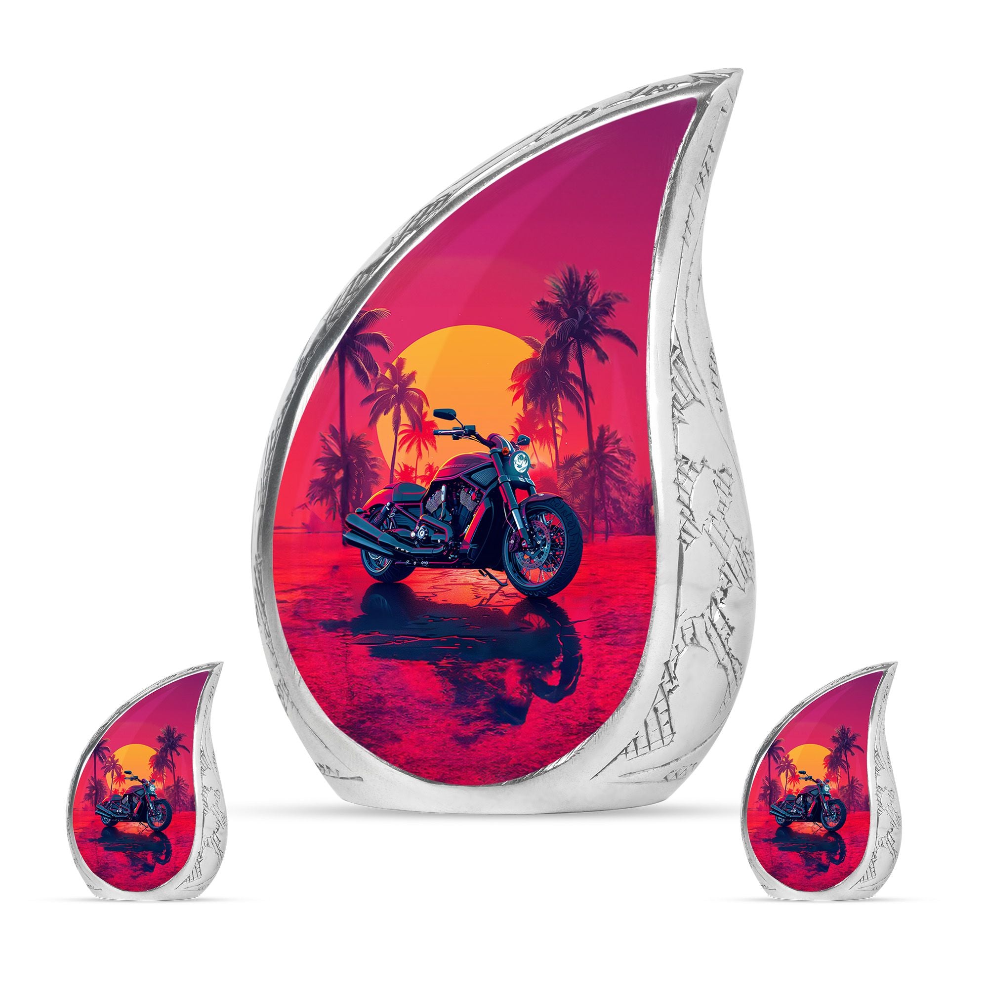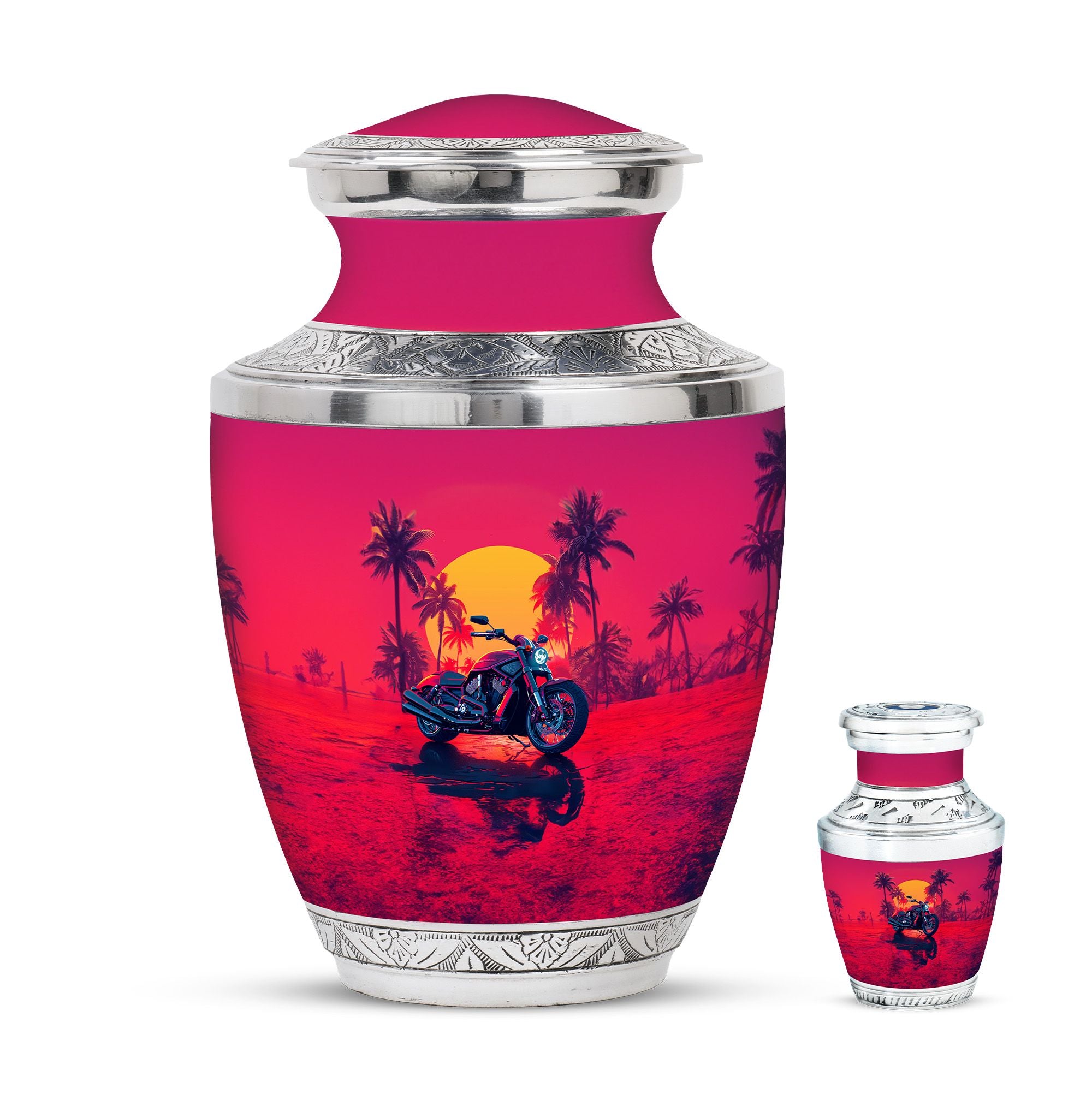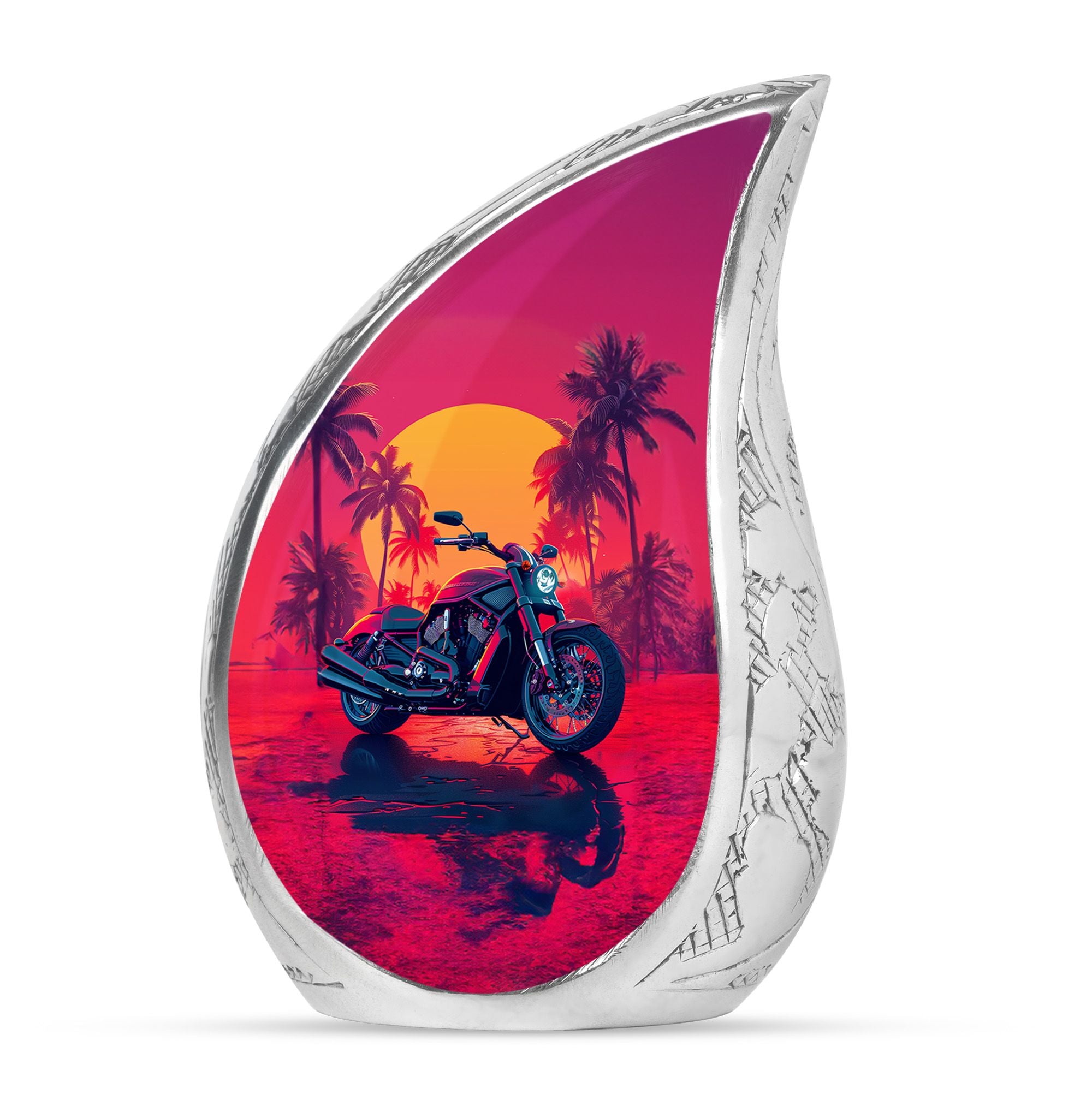 The Motorcycle Cremation Funeral Urn in Pink Sunset is a meaningful way to celebrate a loved one’s journey with dignity and grace. This design symbolizes adventure, freedom, and everlasting memories, making it ideal for families seeking a small urn for ashes for women, urn for ashes for women small, or cremation urns for men.