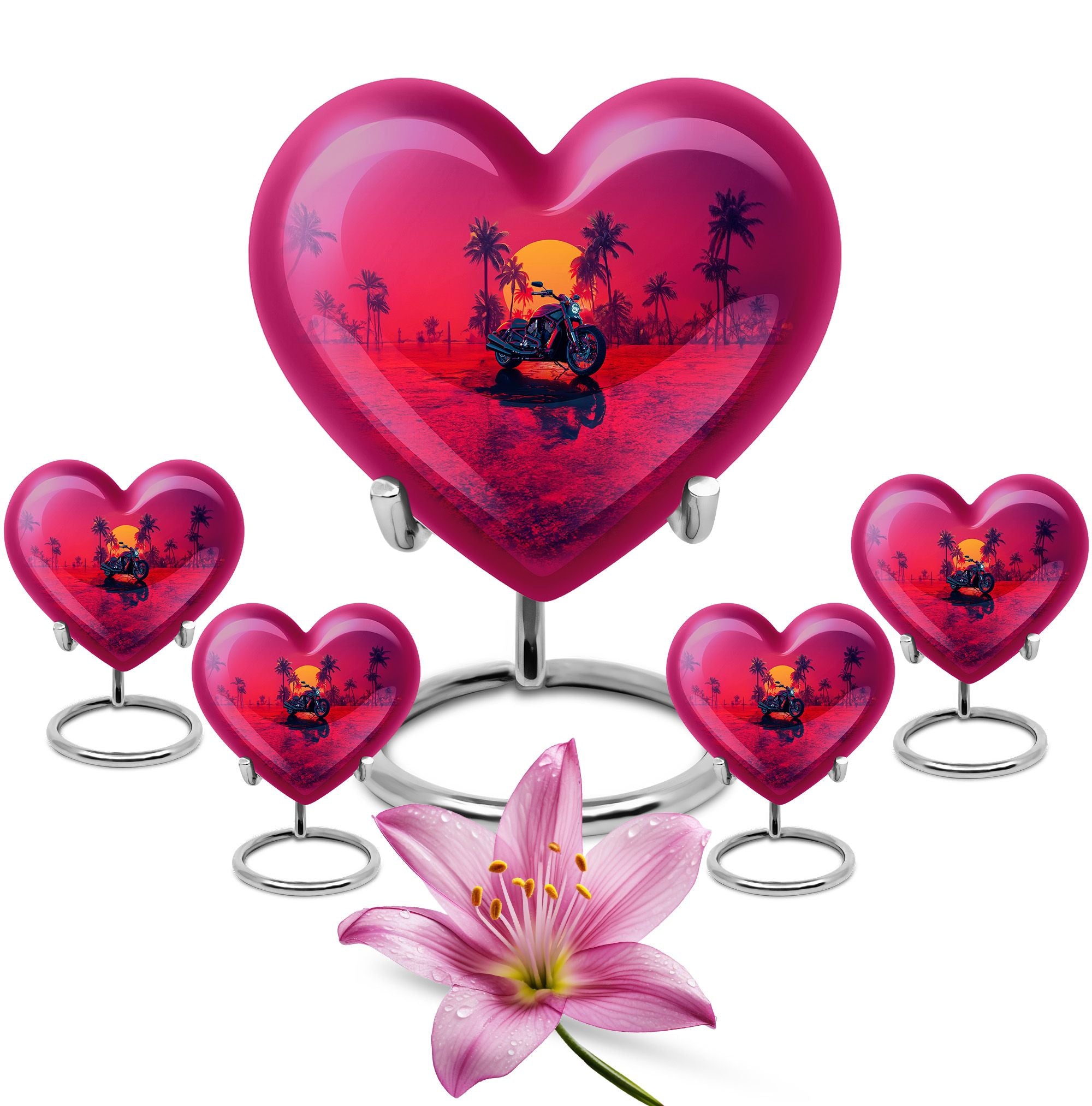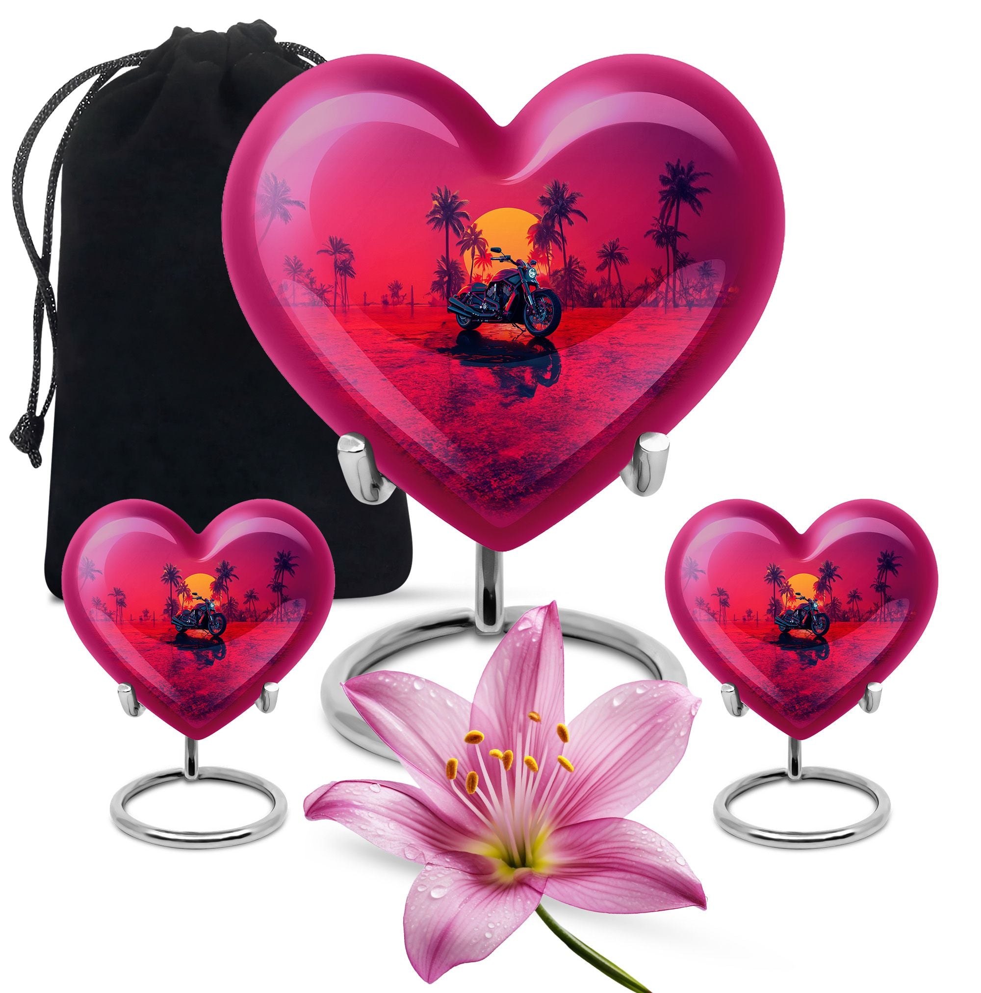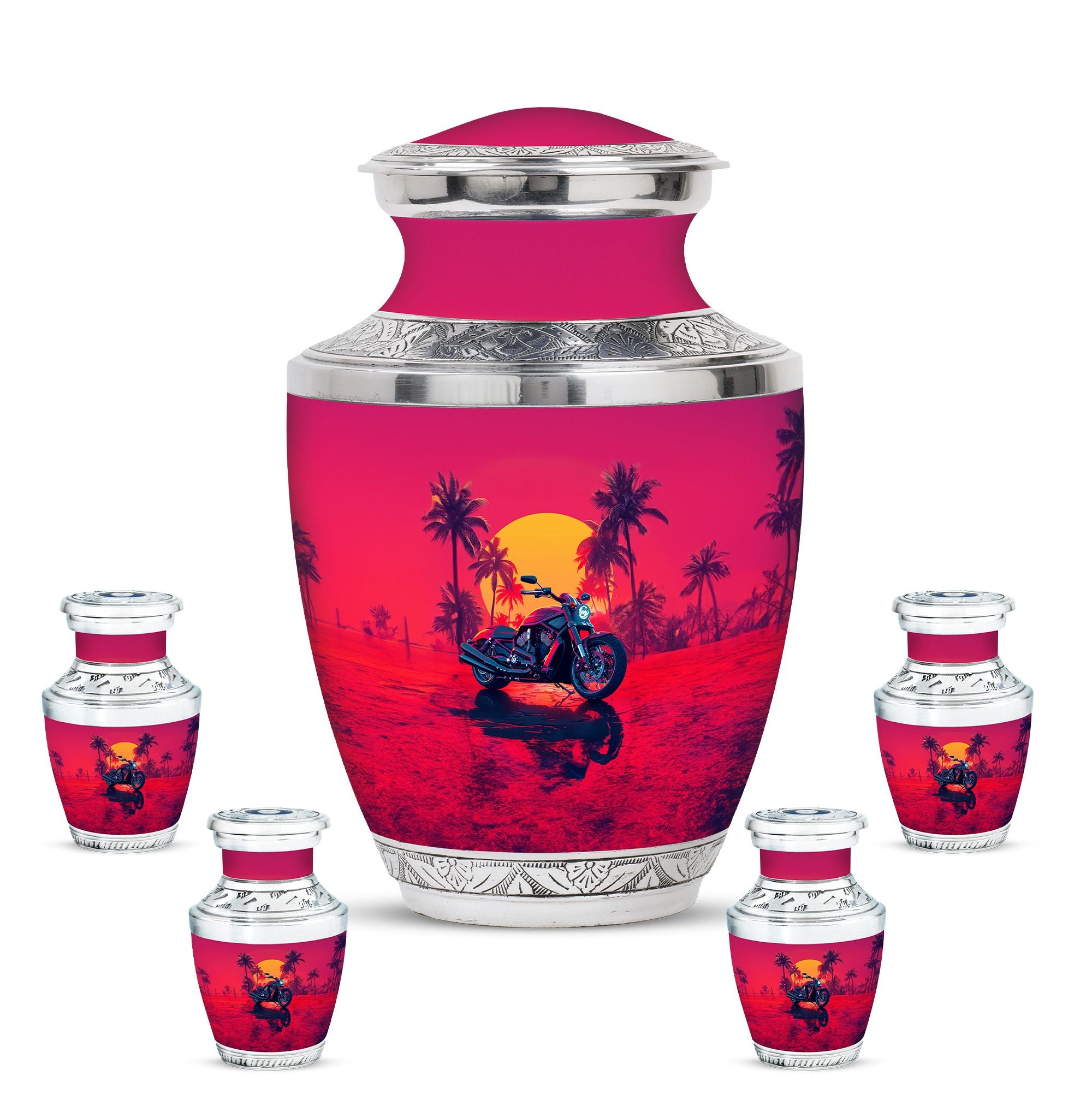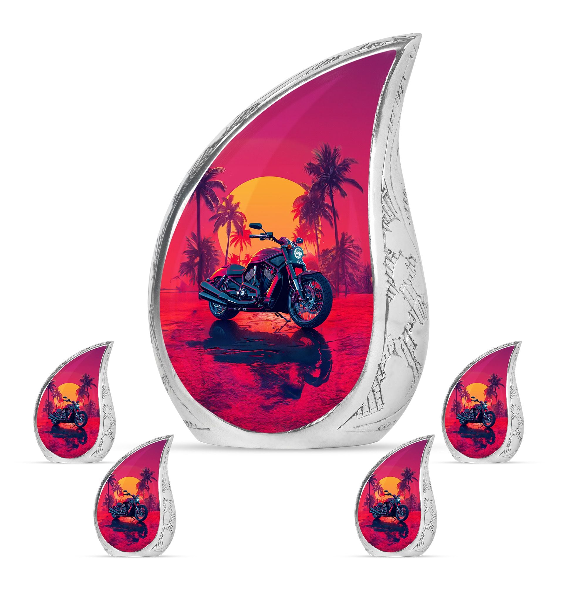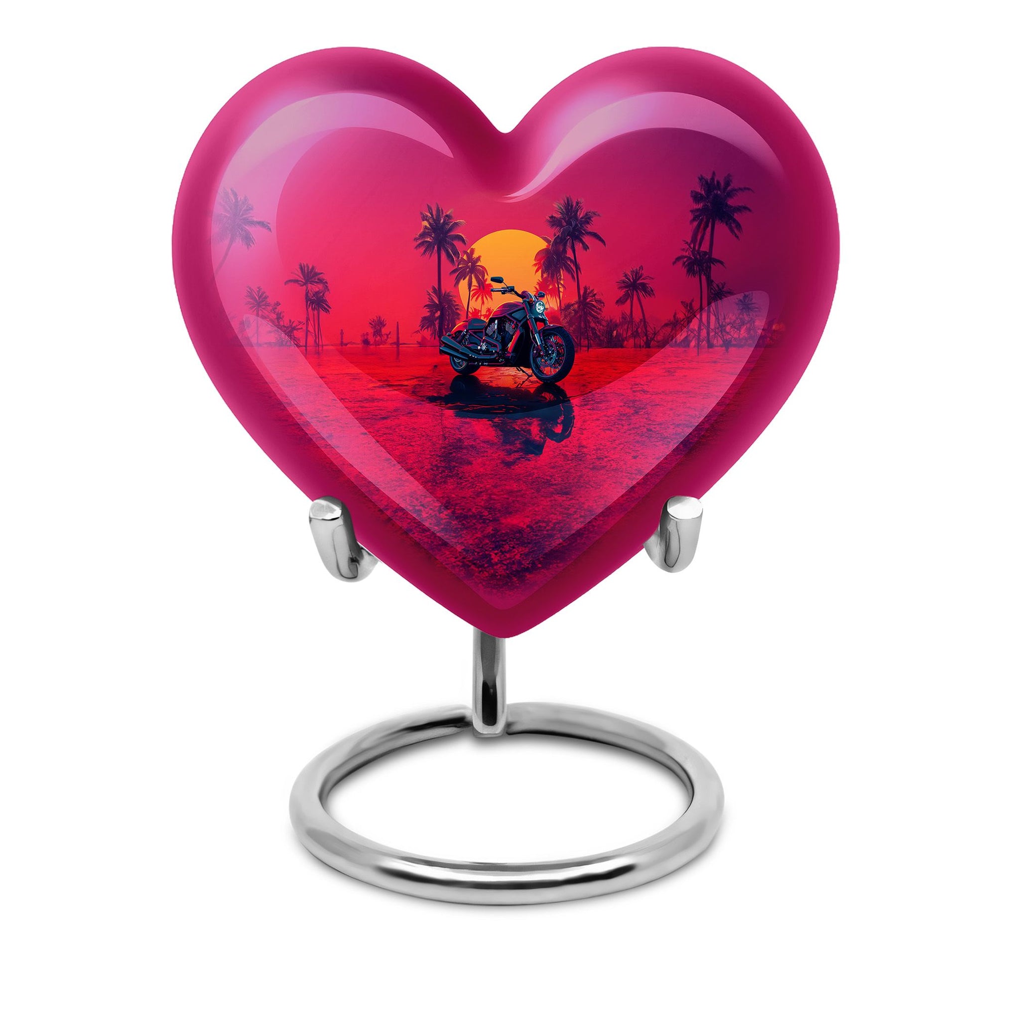 The Motorcycle Cremation Funeral Urn in Pink Sunset is a meaningful way to celebrate a loved one’s journey with dignity and grace. This design symbolizes adventure, freedom, and everlasting memories, making it ideal for families seeking a small urn for ashes for women, urn for ashes for women small, or cremation urns for men.