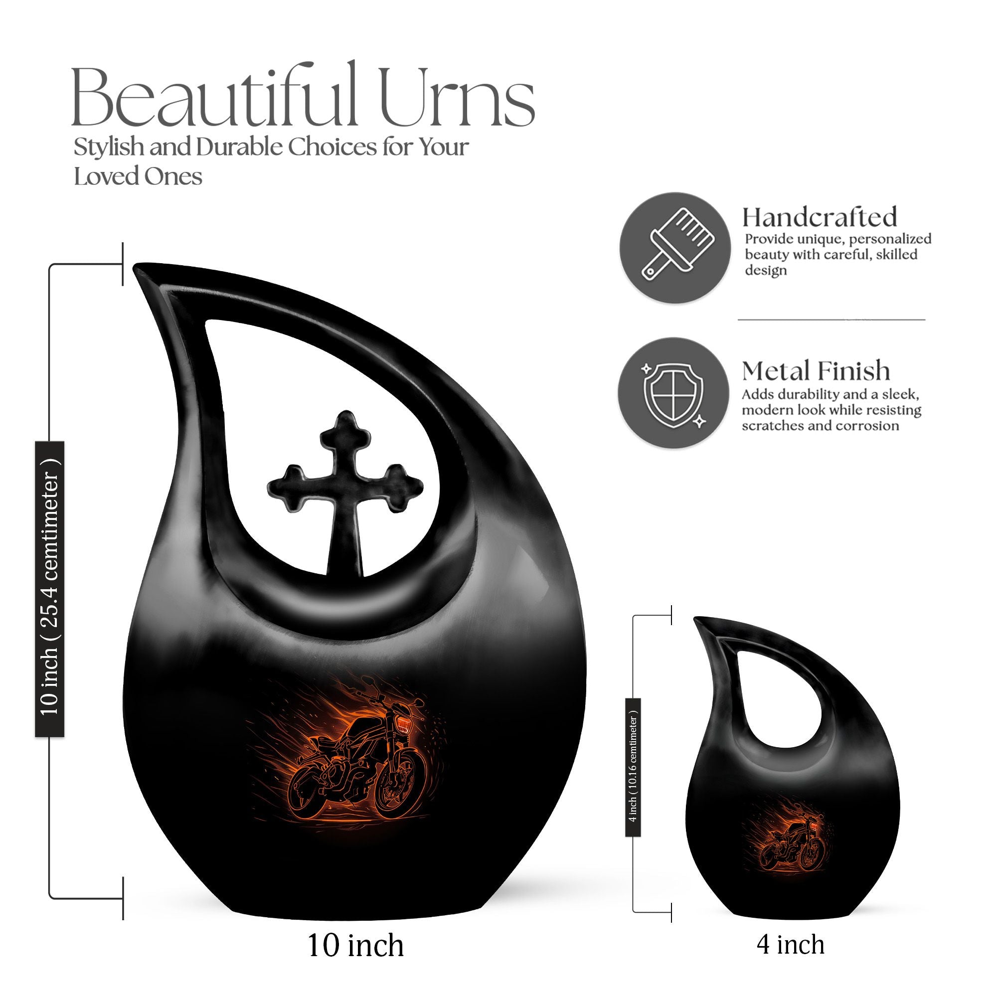 Crafted from durable aluminium and finished in a sleek black design with detailed motorcycle artwork, this urn provides both beauty and lasting protection. Its 10-inch height and generous 200 cubic inch capacity make it an ideal choice for those searching for adult urns for human ashes large, large adult urns for human ashes, or a bold and meaningful large human urn. The polished surface and secure screw-top lid ensure safety for families needing urns for human ashes adult large, large urns human ashes, or a dignified large adult urn. Its thoughtful design also makes it a perfect tribute for those honoring a large urn mom or an urn mom ashes large with grace and strength.