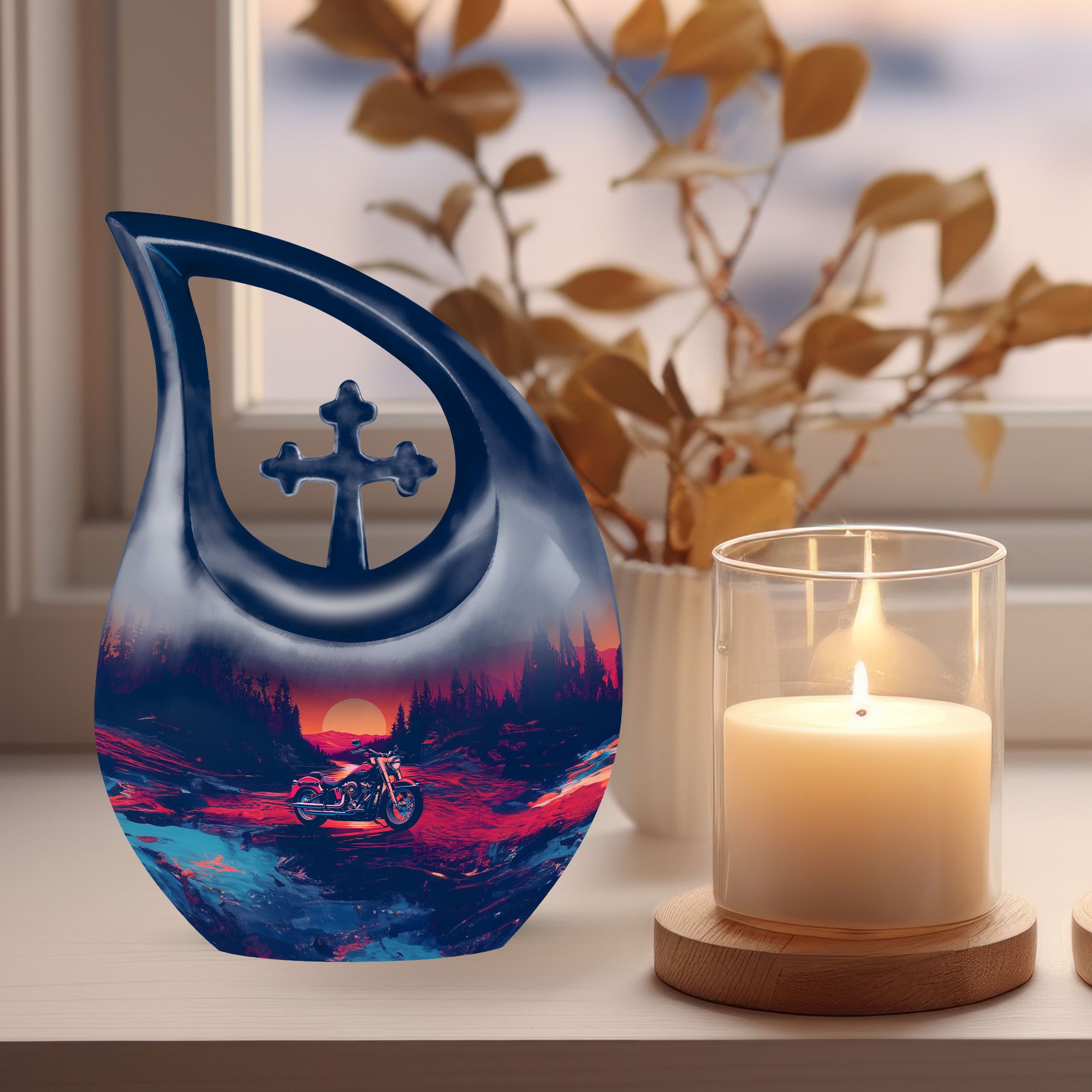 Honoring a loved one’s memory is a deeply personal choice, and this Sunset Motorcycle Funeral Urn offers a meaningful and heartfelt tribute. Created for families seeking cremation urns for adult ashes women, it combines strength, beauty, and symbolism for a peaceful remembrance.