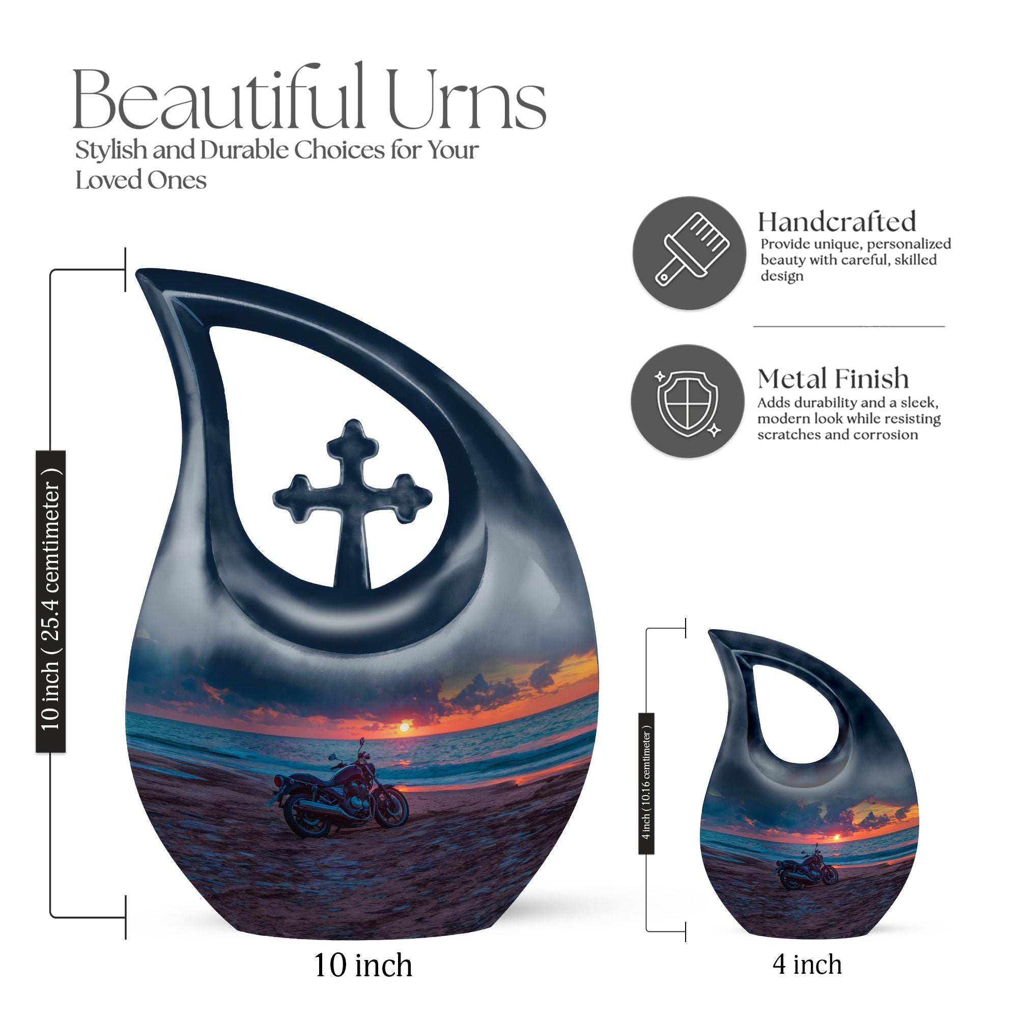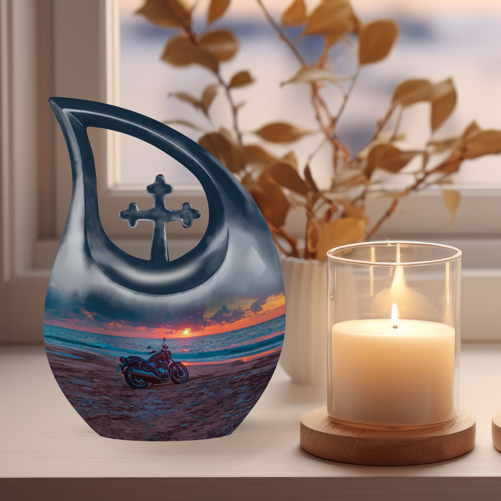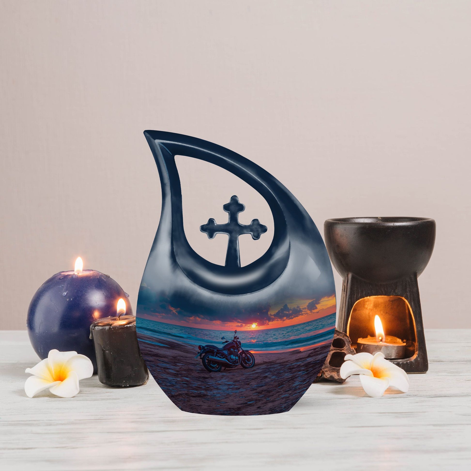 The Motorcycle on Beach Sunset Memorial Urn captures the beauty of life’s final ride — a symbol of freedom, courage, and serenity. Designed for those who lived with passion and purpose, this elegant cremation urn for human ashes adult serves as a lasting tribute to a beloved rider, friend, or family member. Ideal for families seeking cremation urns for human ashes adult small or full-sized memorials, it reflects dignity and everlasting love.