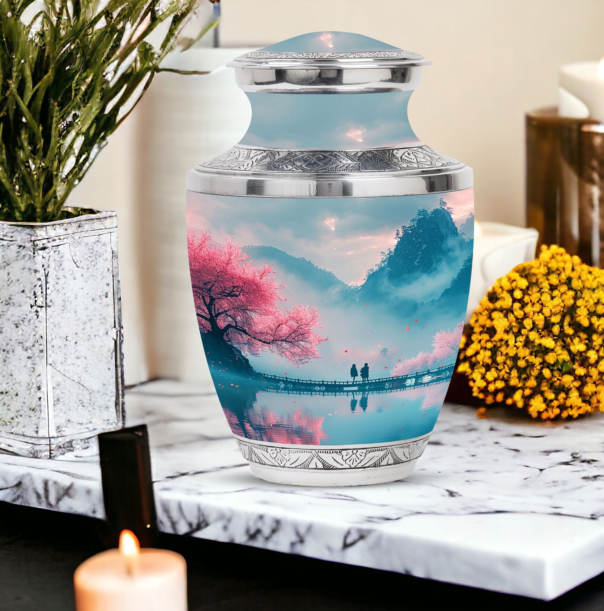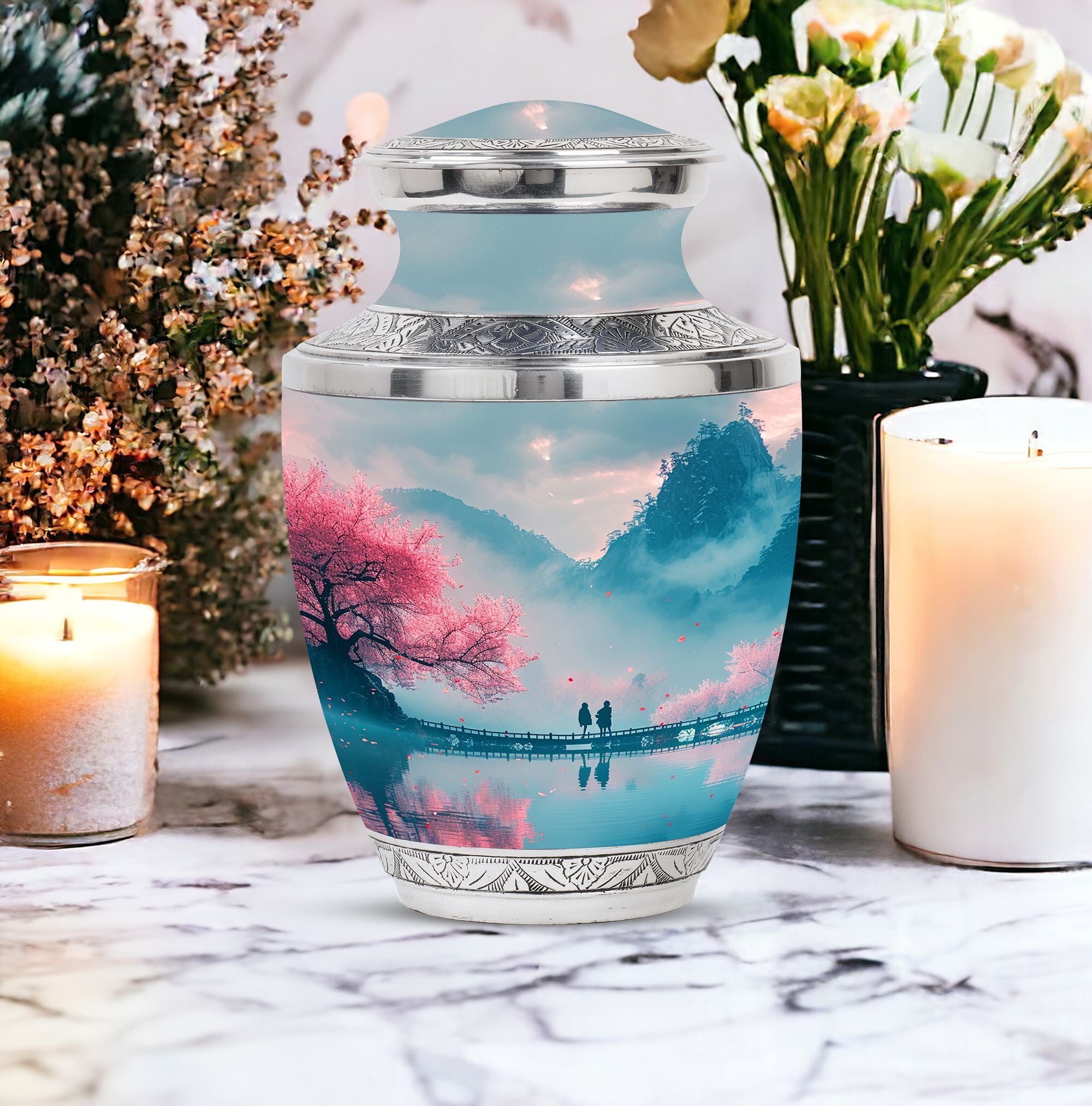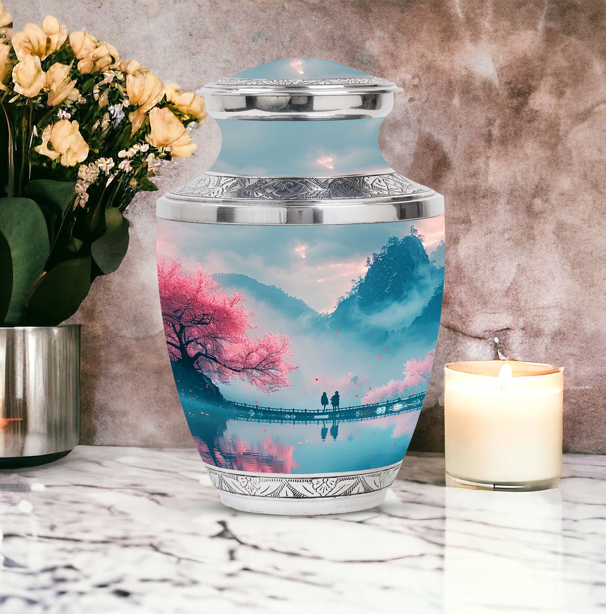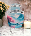 Discover beauty, serenity, and reverence in our Mountain Blue Urn- a transcendent choice for gracing the ashes of your dearly missed loved ones. This cremation urn showcases an exquisite mountain-inspired design, meticulously handcrafted for those who had an unyielding spirit and resplendent love for nature. With its universal medium size, it allows a meaningful and respectful storage of human ashes, while the sublime blue shade adds a serene touch. This burial urn is a fitting homage to exceptional men who lived fulfilling lives. Also, for those seeking memorial ceremony supplies which would affectionately cradle the cremation ashes of a cherished mother, this urn stands as an immaculate choice. Included in our distinct collection, this cremation urn ensures your beloved's memory is forever honored, respected and celebrated.