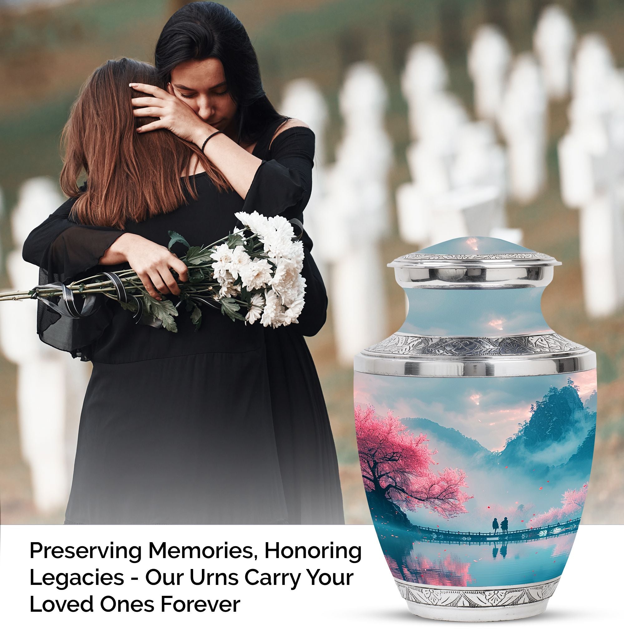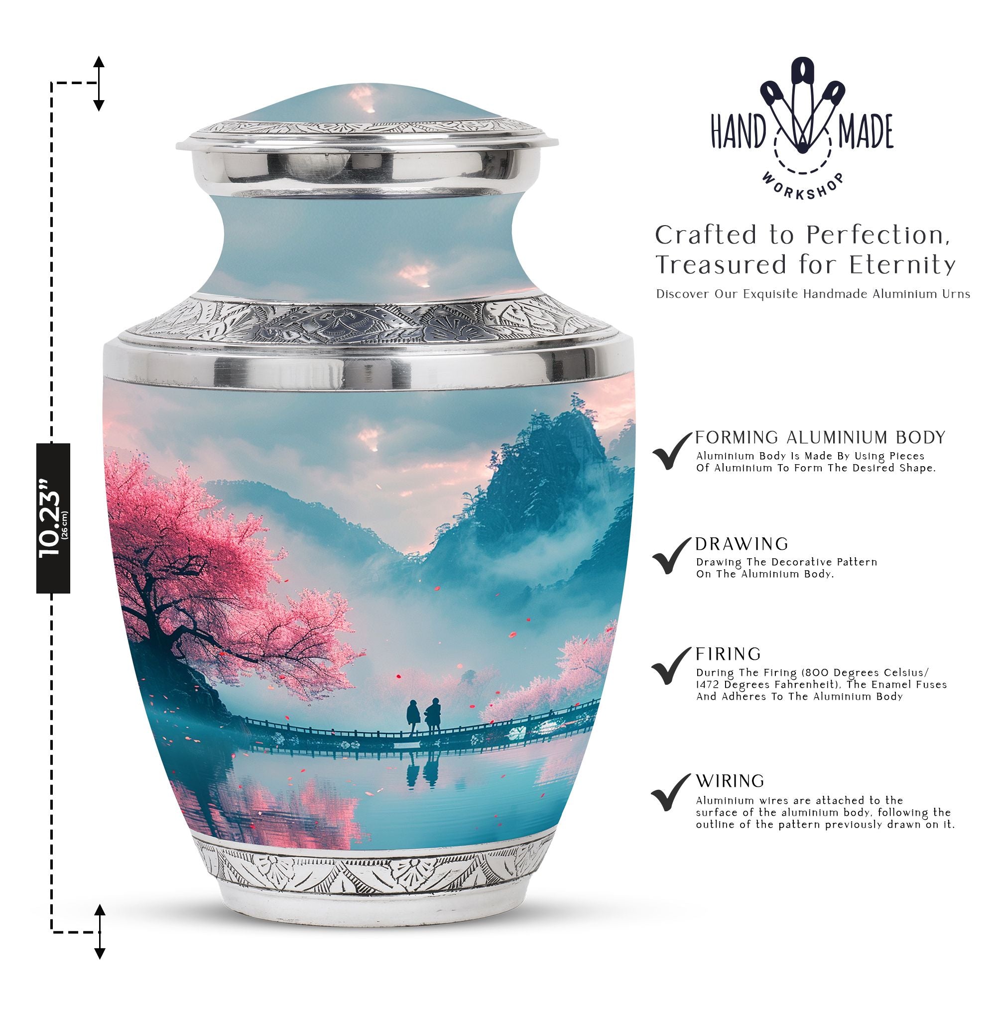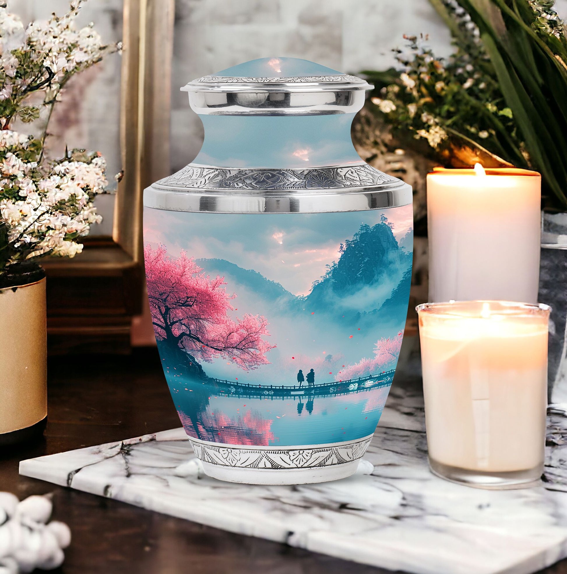 Discover beauty, serenity, and reverence in our Mountain Blue Urn- a transcendent choice for gracing the ashes of your dearly missed loved ones. This cremation urn showcases an exquisite mountain-inspired design, meticulously handcrafted for those who had an unyielding spirit and resplendent love for nature. With its universal medium size, it allows a meaningful and respectful storage of human ashes, while the sublime blue shade adds a serene touch. This burial urn is a fitting homage to exceptional men who lived fulfilling lives. Also, for those seeking memorial ceremony supplies which would affectionately cradle the cremation ashes of a cherished mother, this urn stands as an immaculate choice. Included in our distinct collection, this cremation urn ensures your beloved's memory is forever honored, respected and celebrated.