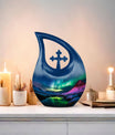 The Aurora Borealis Memorial Urn for Ashes reflects the natural wonder and mystery of the Northern Lights, symbolizing hope, eternity, and the brilliance of a life well-lived. Designed with vibrant aurora-inspired hues, this urn is ideal for those seeking large cremation urns for human ashes or a timeless large funeral urn that radiates peace and light.