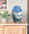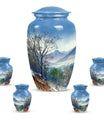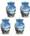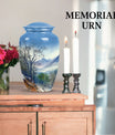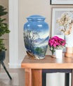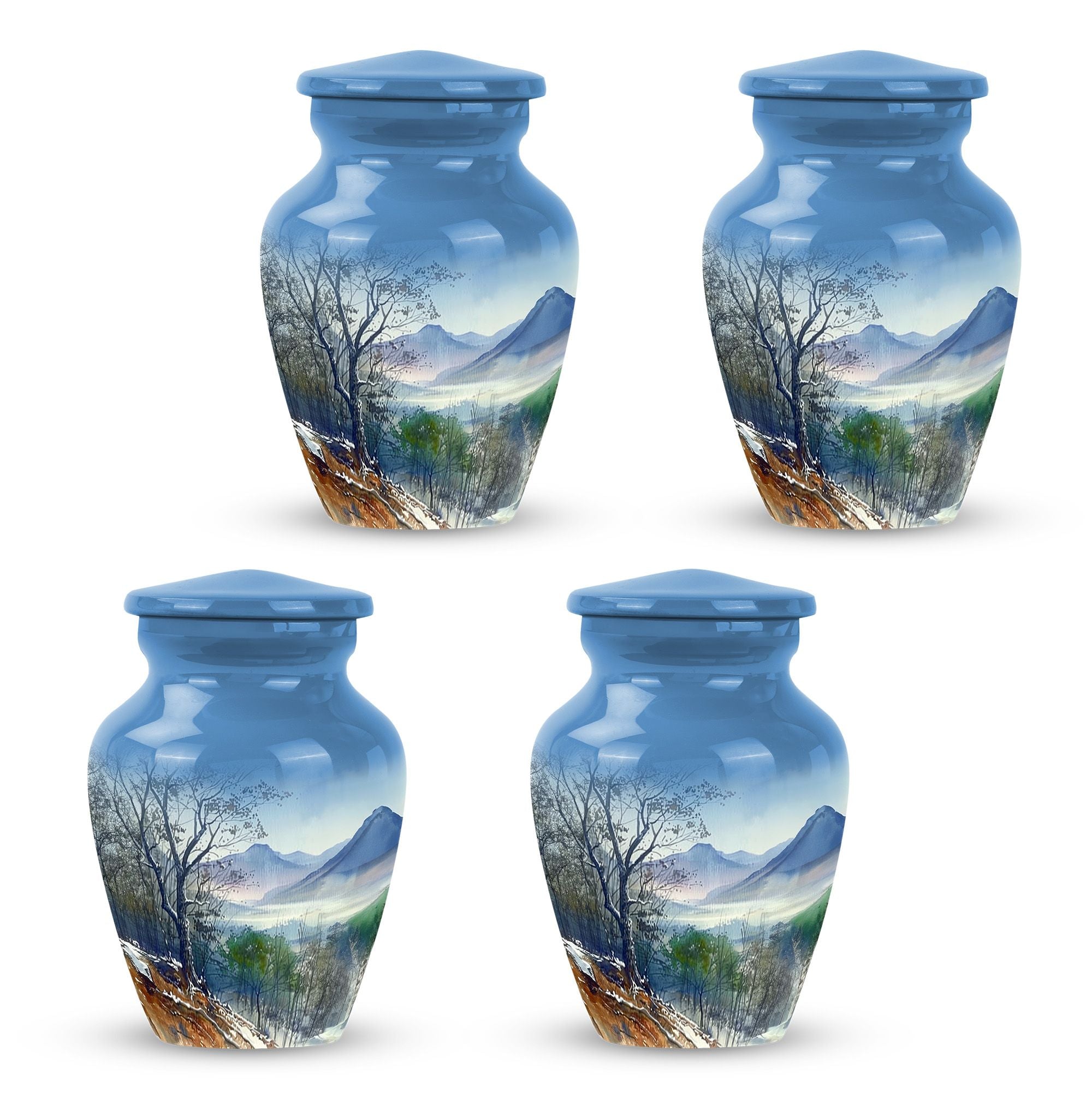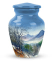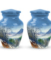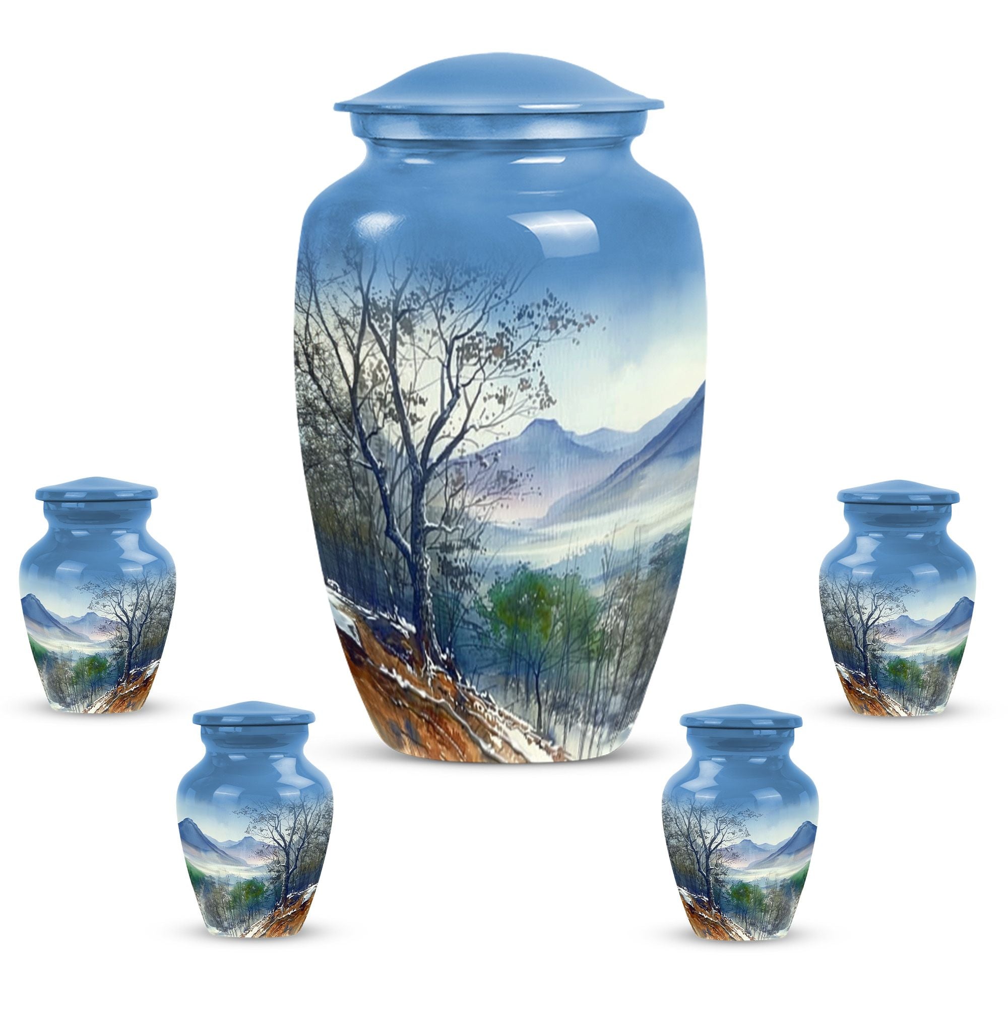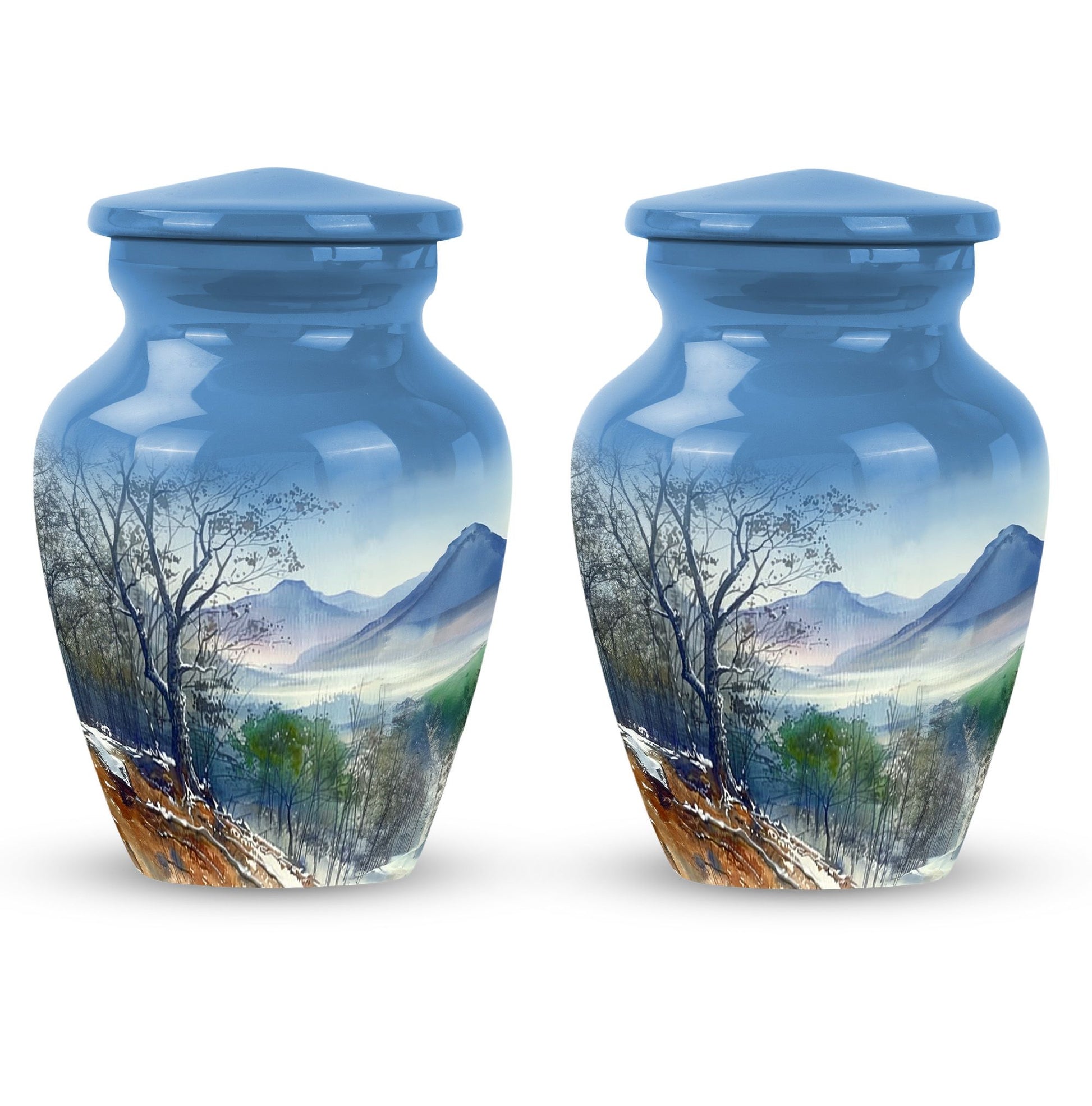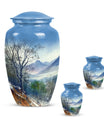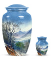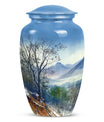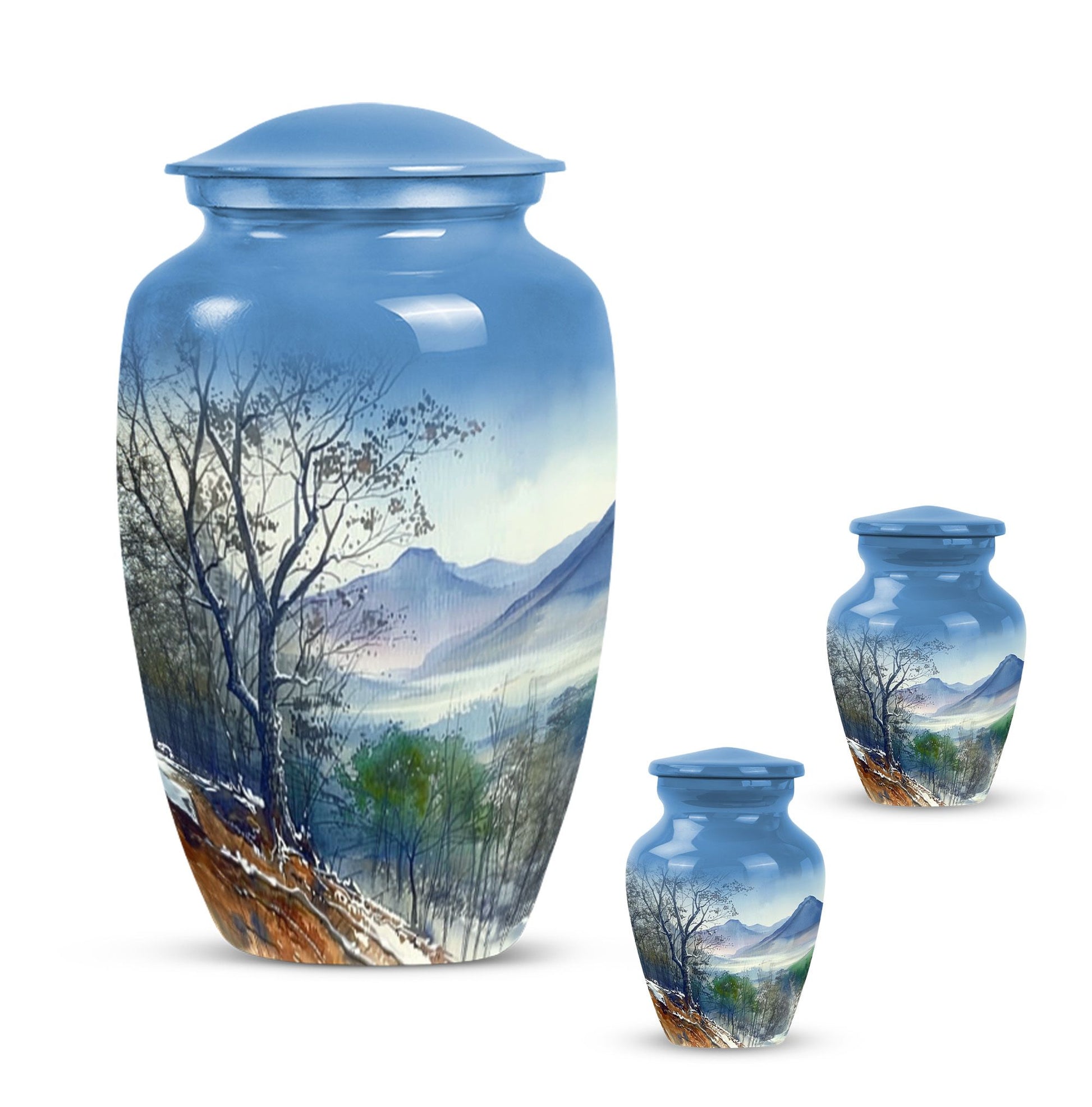 Our 'Mountain Urn' captures the majesty of nature, offering a unique way to honor your loved one's passage with an abstract, revering memory encapsulated in funeral ash urns. Standing 10 inches tall and capable of holding up to 200 cubic inches of ashes, this Large Urn is diligently crafted from high-quality Aluminium bestowing upon it a weight of just 3.3 pounds. This serves to reflect its enduring strength and the profound significance it serves. Personalized to embody their unique spirit, this memorial urn allows for engraving names making it a truly bespoke monument in their honor. The package also includes a tastefully designed velvet pouch for secure containment of the ashes. Ideal for those seeking unique urns or metal urns for adult human ashes, it seamlessly combines artistry with purpose. Reflecting solemn tribute, the Mountains Urn is a resplendent memorial urn for mom ashes or any loved one, inside your home.