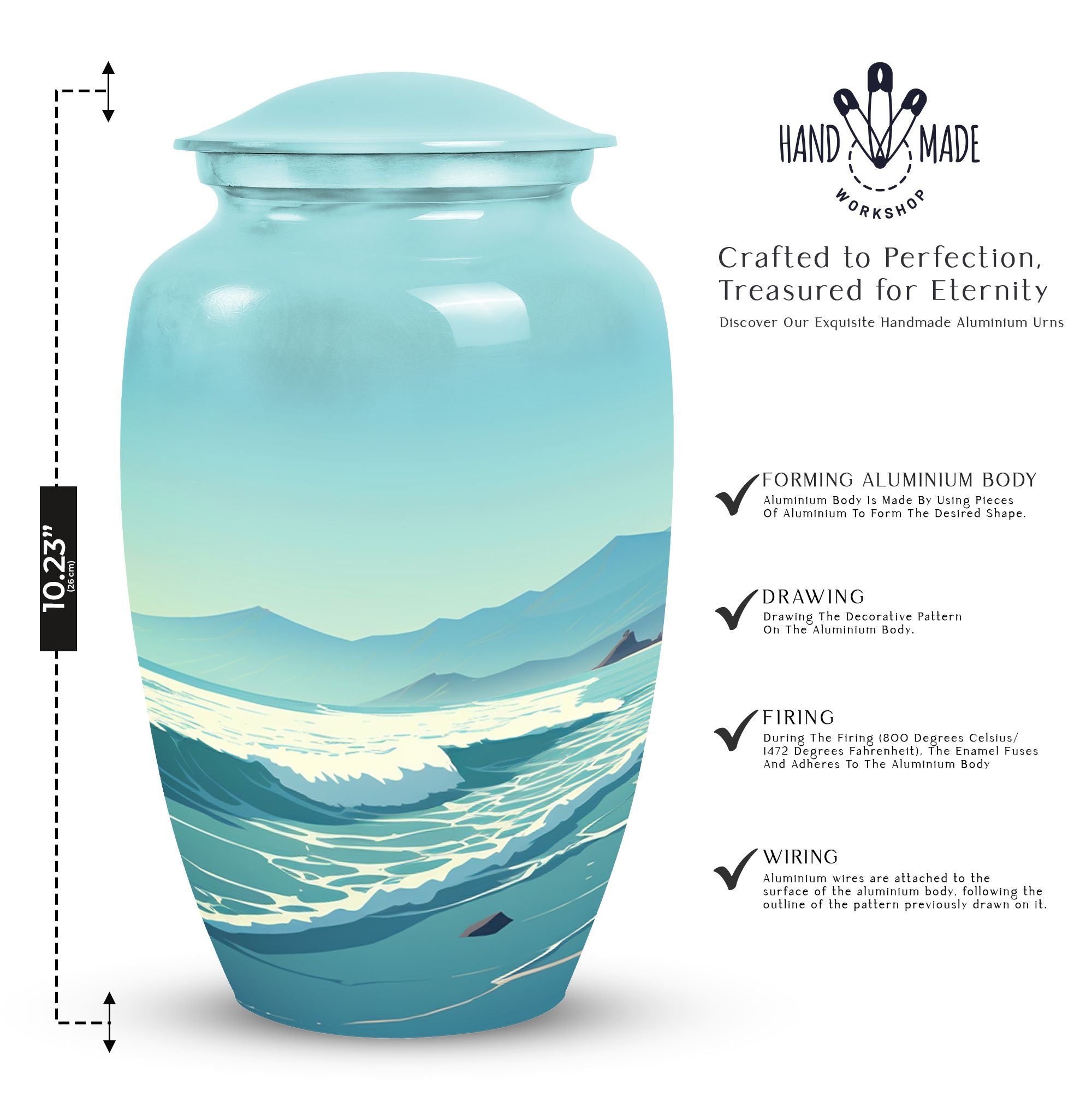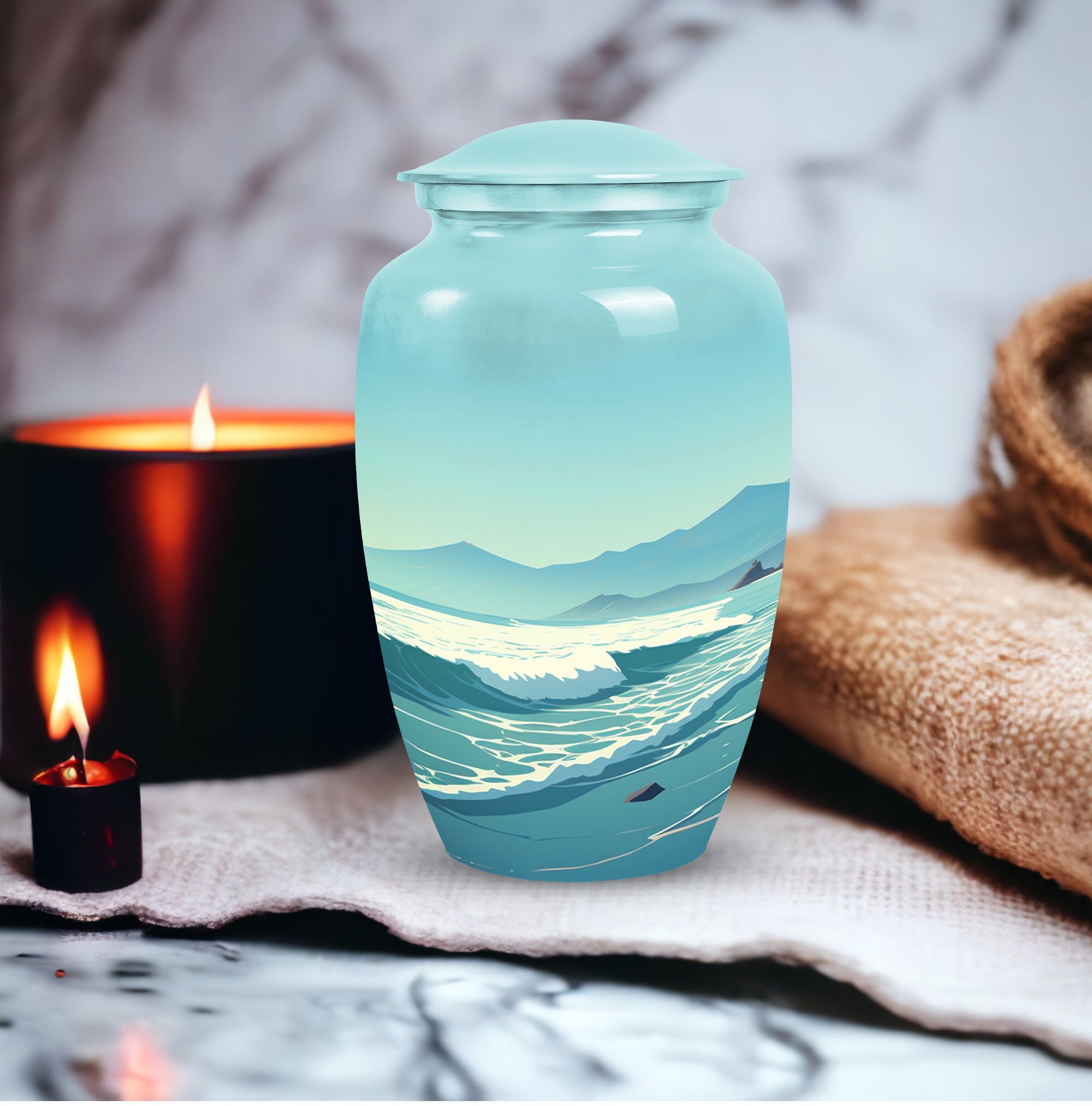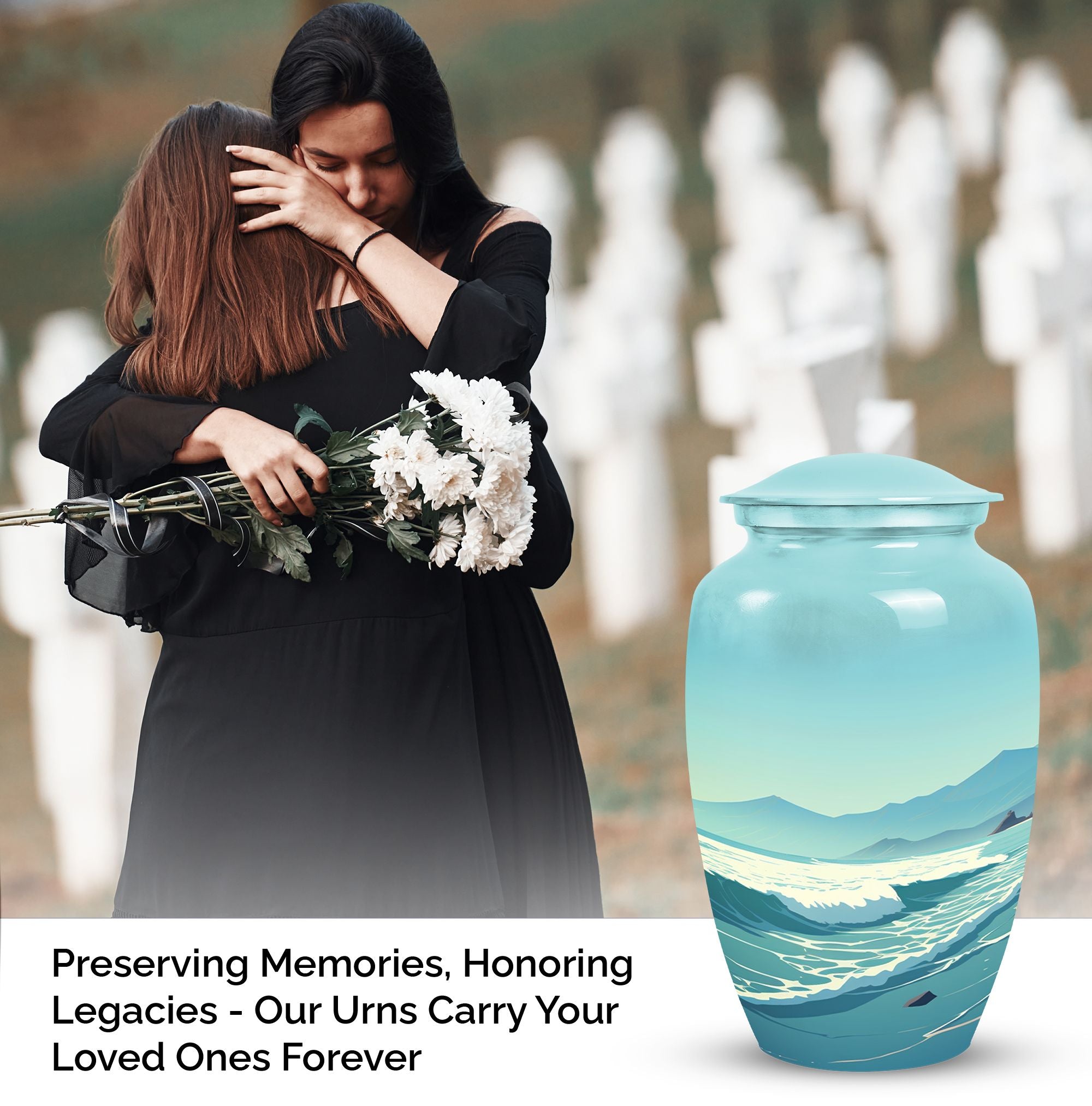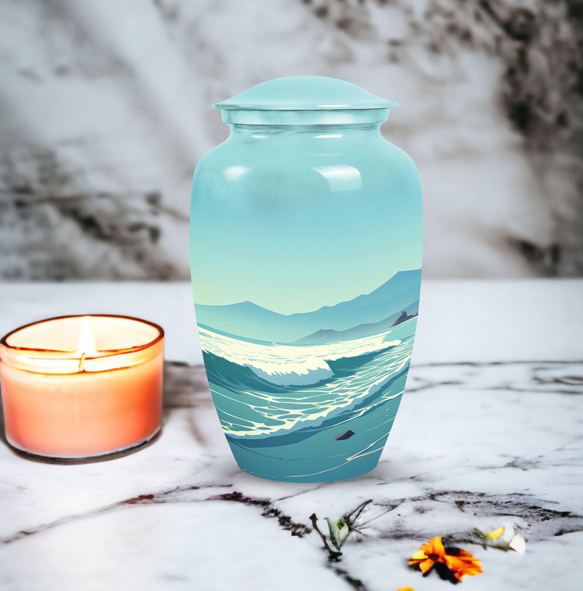 Explore our exclusive collection of Mountains Burial Urns, designed with intricate detail, offering a refined and dignified resting place for your loved one's ashes. These large urns are perfect for adult human ashes and tout an impressive capacity. The design exudes a reassuring strength, mirroring a mountain’s allure, making it a comforting choice for men and a tastefully elegant choice for women. Our cremation urns embody a blend of aesthetic beauty and serene simplicity, transforming the symbol of a final resting place into a heartfelt work of art. They are perfect as companion urns, effortlessly embracing the essence of a cherished shared life. With these urns, you can honor the memory of a loved one, hold onto the warmth of their being, and commemorate their life in the most honorific manner. Bypassing common clichés, our urns are a distinct representation of dignity, tranquility, and undying love.