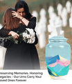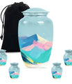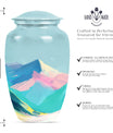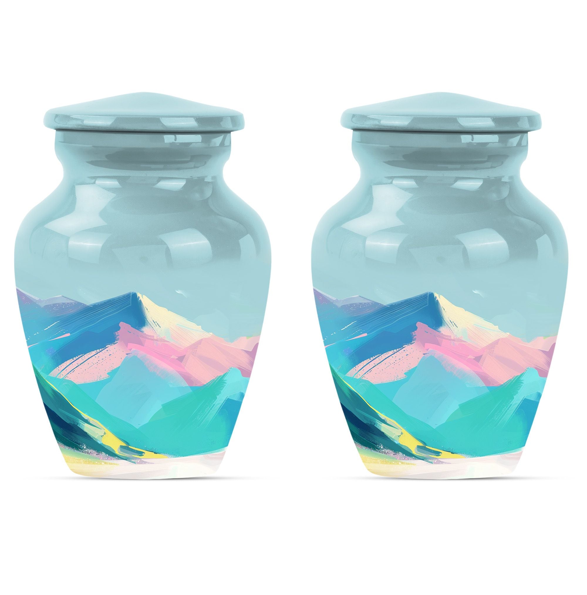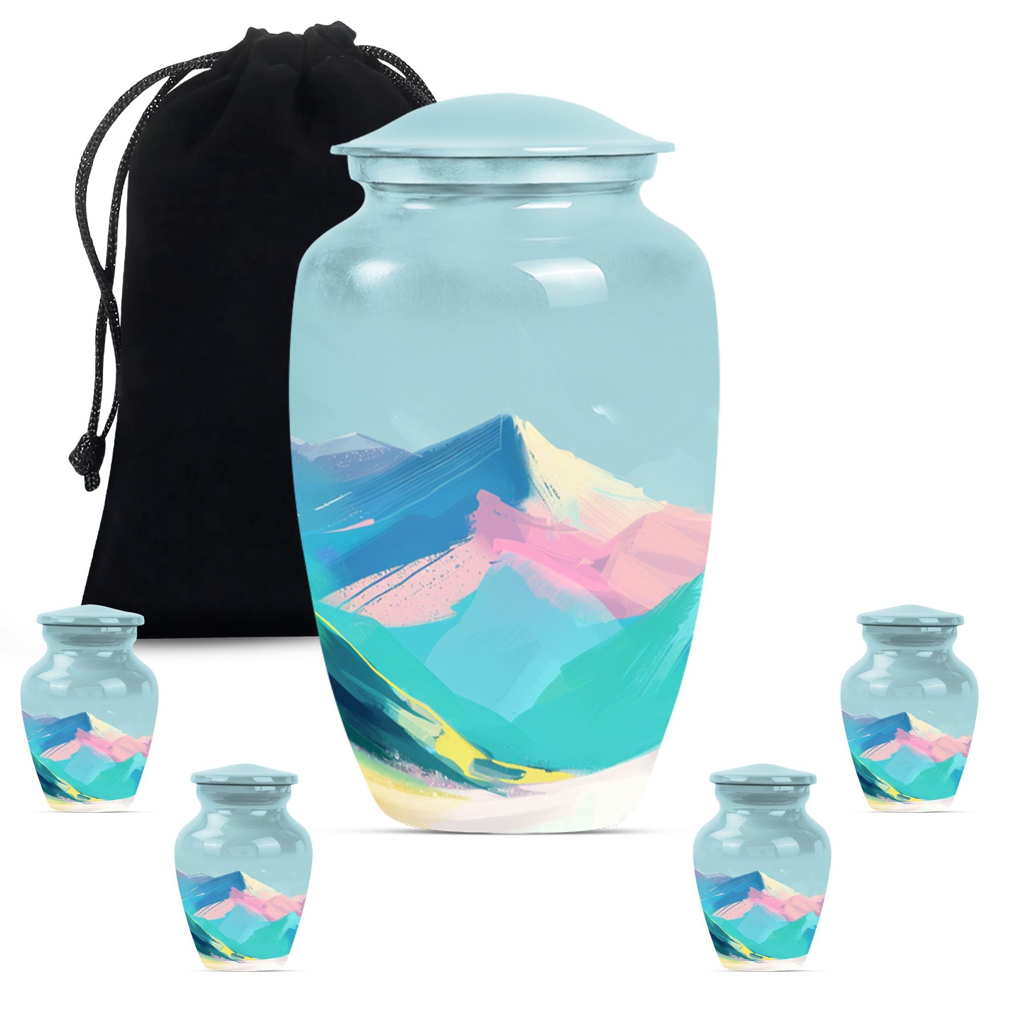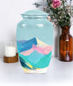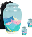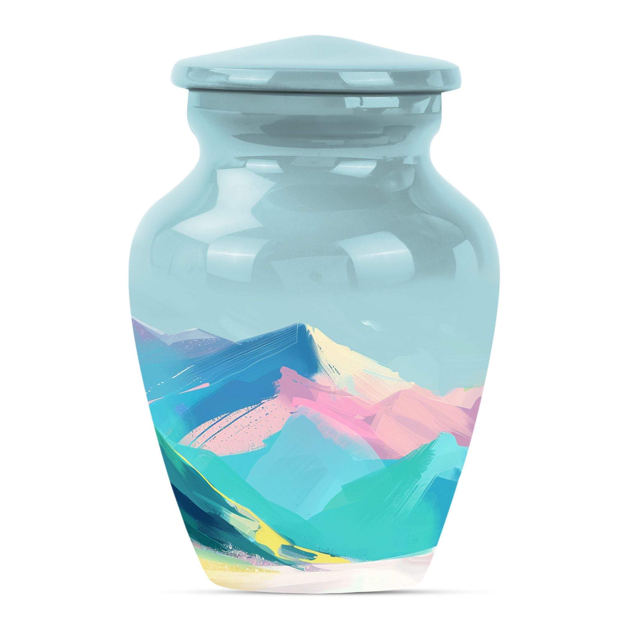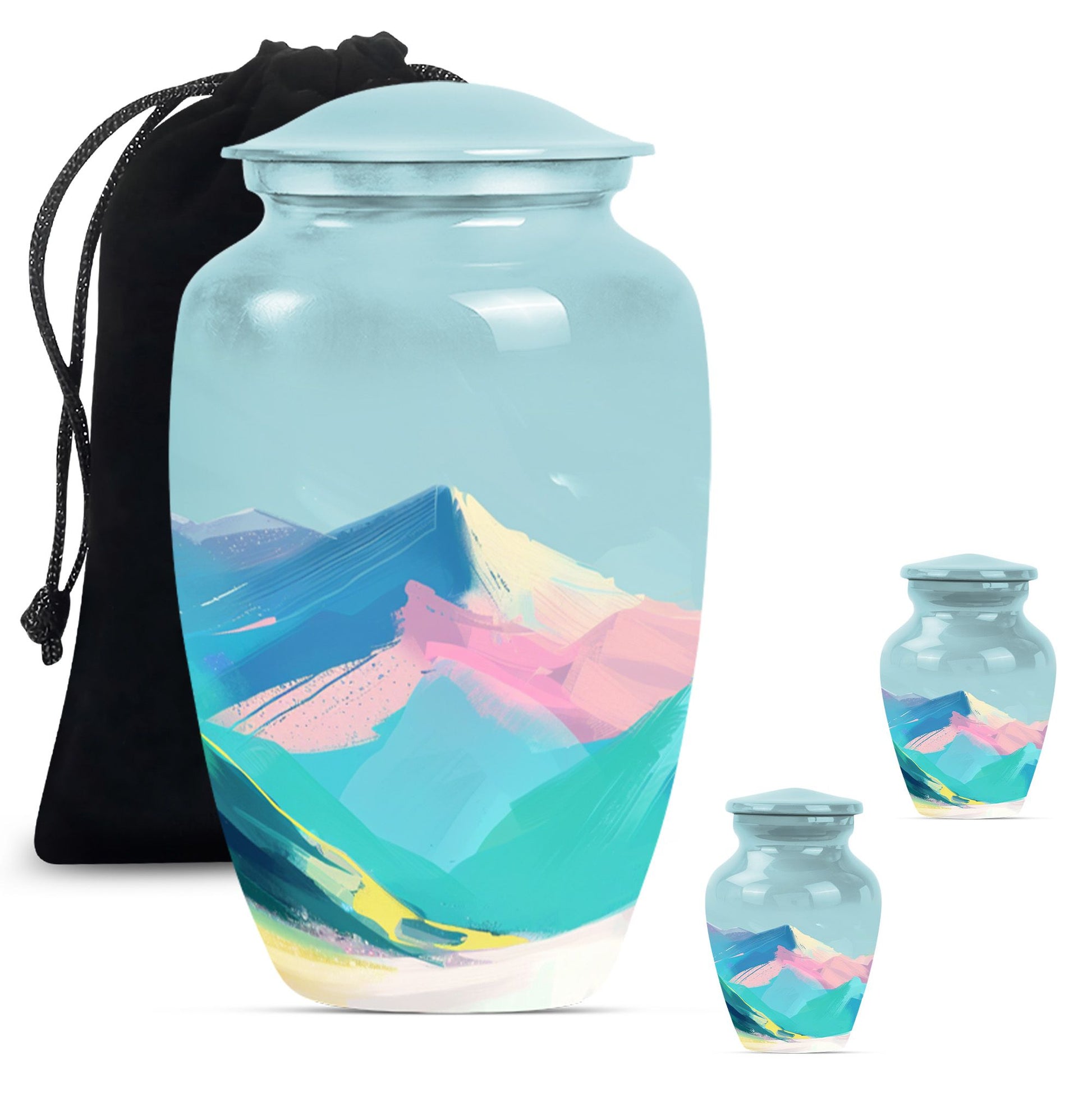 Cherish the memories of your loved ones with our unique MOUNTAINS Urn, a standout amongst burial urns specifically designed for cremation ashes. Our large urn, at a prominent 10 inch size, is both substantive and elegant, facilitating personal reverence and dignity. Manufactured from superior quality aluminium, the urn is robust, weighing in at 3.3 pounds, with dimensions of 10 inches in height. Our Purple Meadow Theme is not only visually captivating but also reflects tranquility, designed to offer solace at times of remembrance. Additionally, our urn can accommodate up to 200 cubic inches, ensuring ample space. The urn comes with a velvet pouch, providing a secure containment for the ashes and enhancing the overall respectful presentation. We offer the added virtue of personalization, allowing you to engrave names and keep the memories of your beloved alive. When searching for cremation urns for burial or urns for adult human ashes, remember our MOUNTAINS Urn, a perfect blend of sturdiness, subtle elegance, and personal touch.