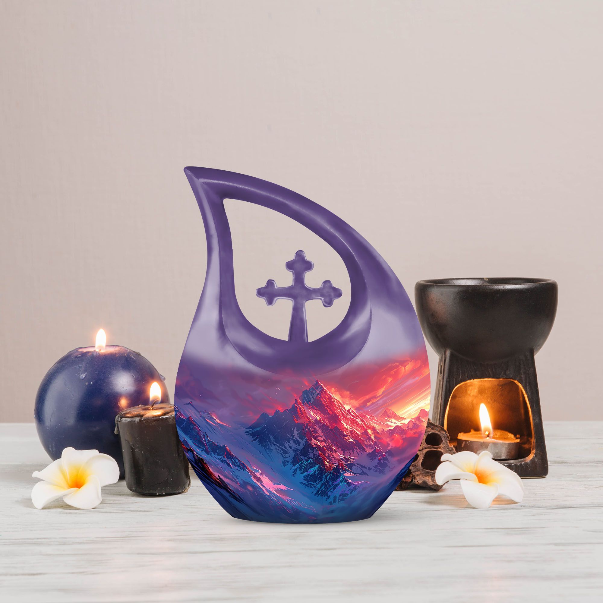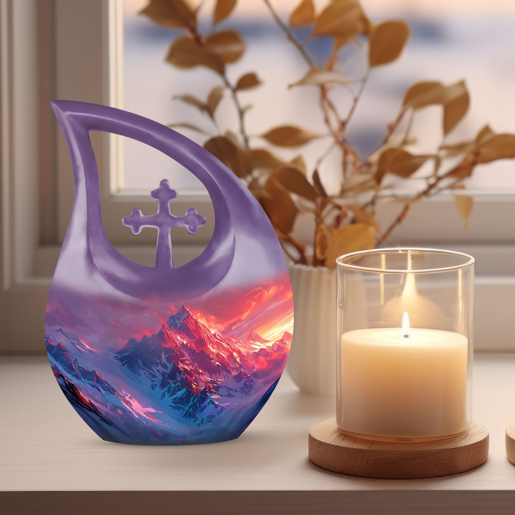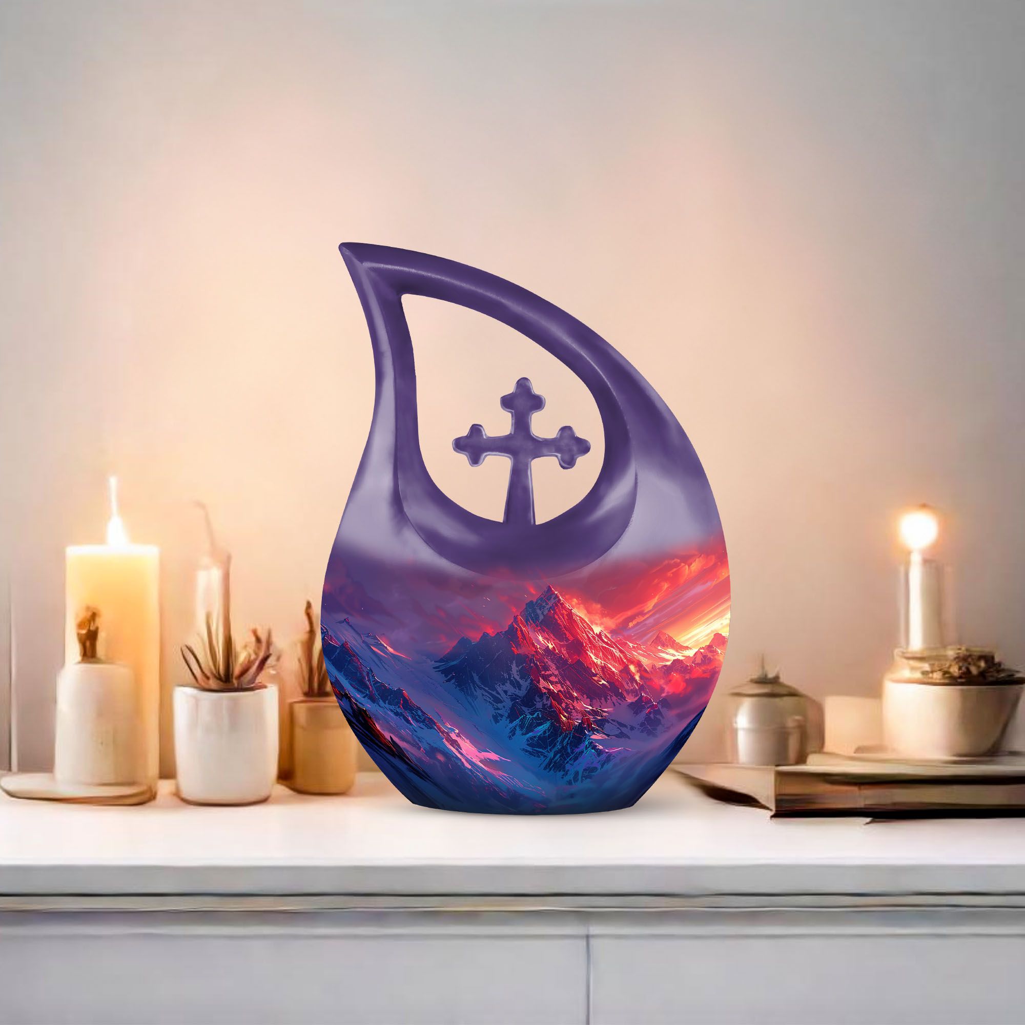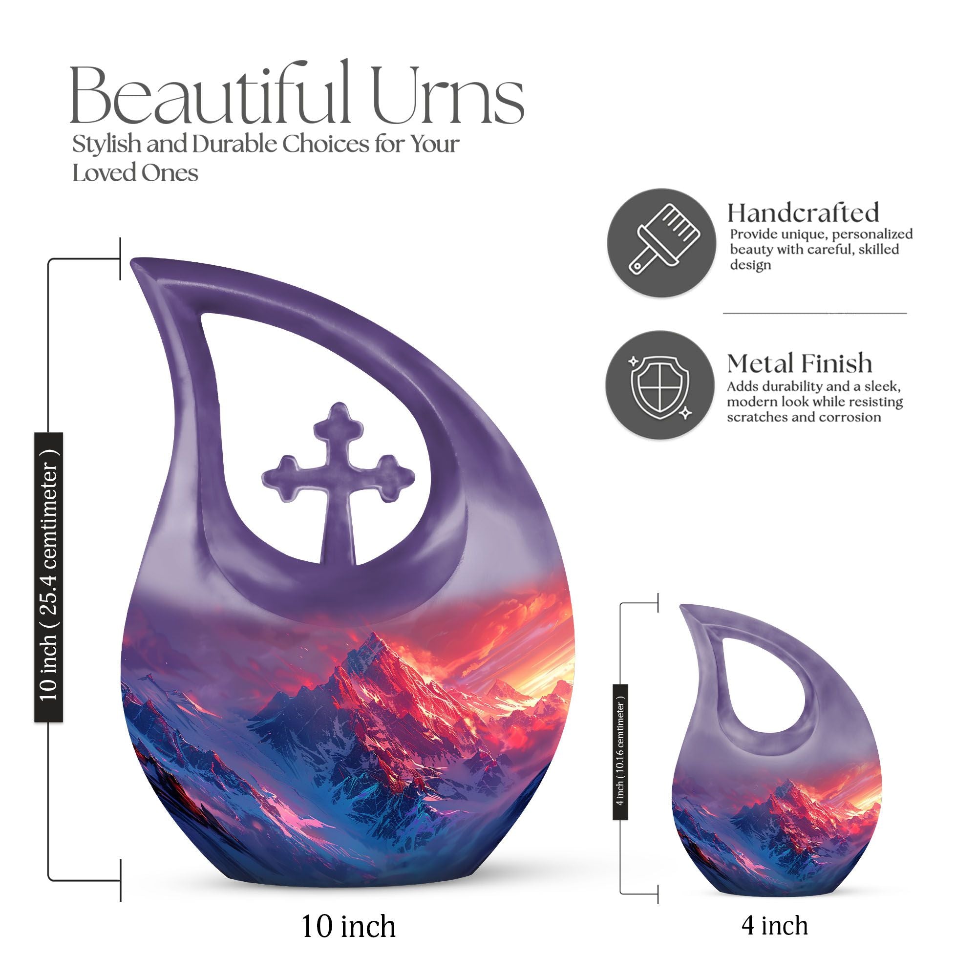 This versatile piece can serve as an adult female urn, urn human ash adult male, or urns ashes adult female mom tribute. For families seeking shared remembrance, smaller urns adult male small or urns ashes male keepsake versions are also available. The mountain motif beautifully represents endurance and the soul’s ascension beyond life’s horizon.