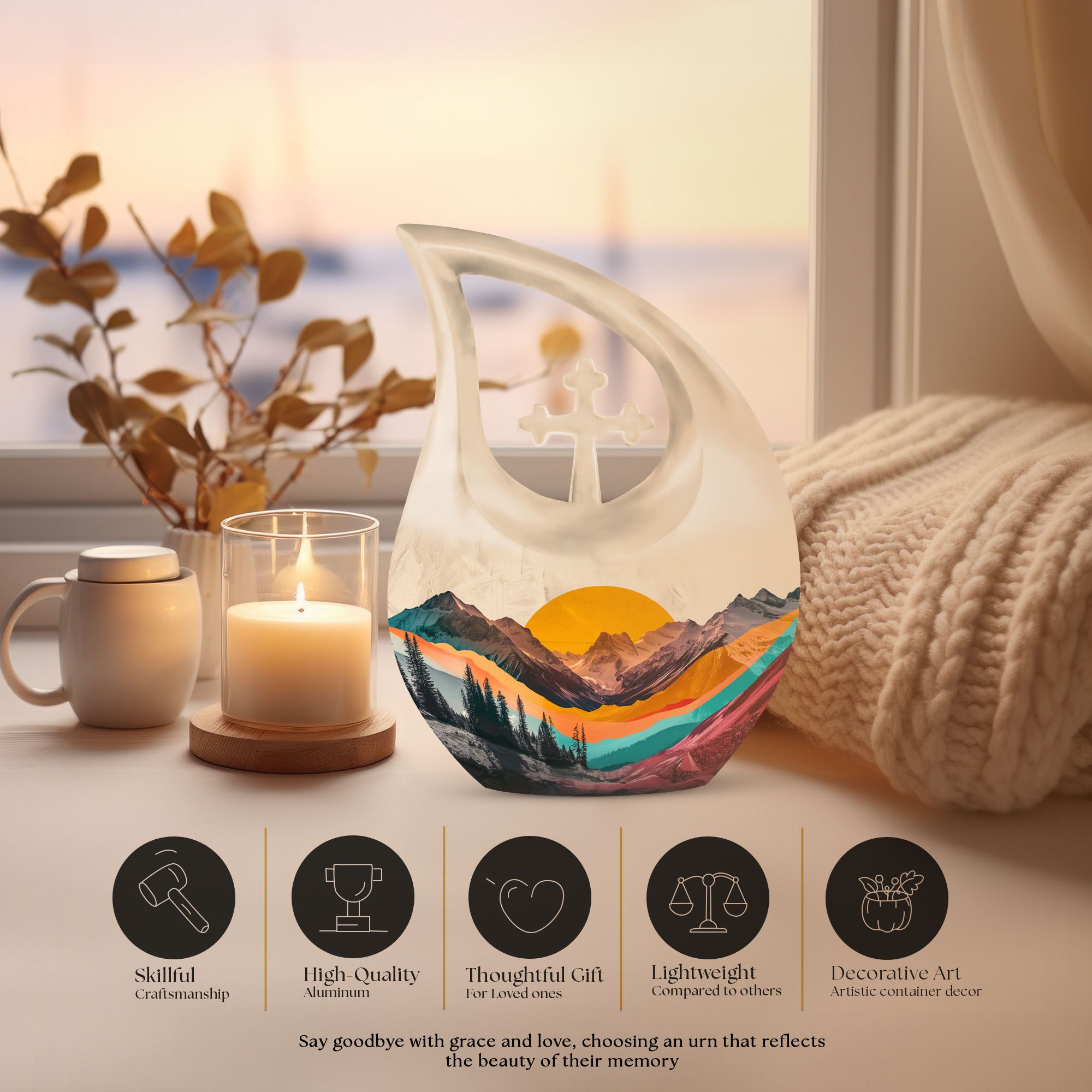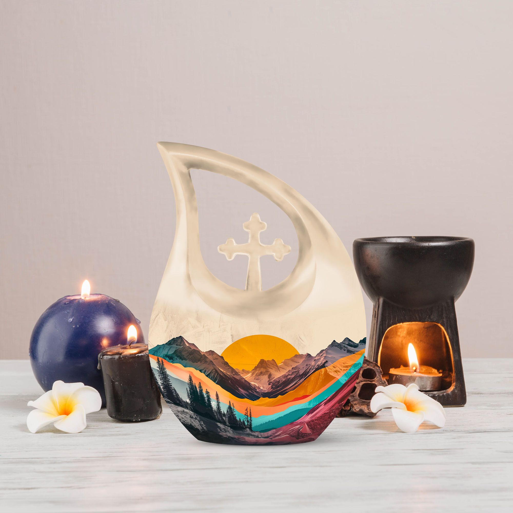 A perfect blend of artistry and sentiment, this cremation urns for adults design captures the spirit of peace that endures through the mountains — a lasting tribute for the man whose soul belongs to nature.