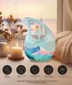 This large decorative urn for human ashes is not just a vessel but a symbol of peace and eternity — a reflection of life’s natural beauty and the love that endures beyond the horizon.