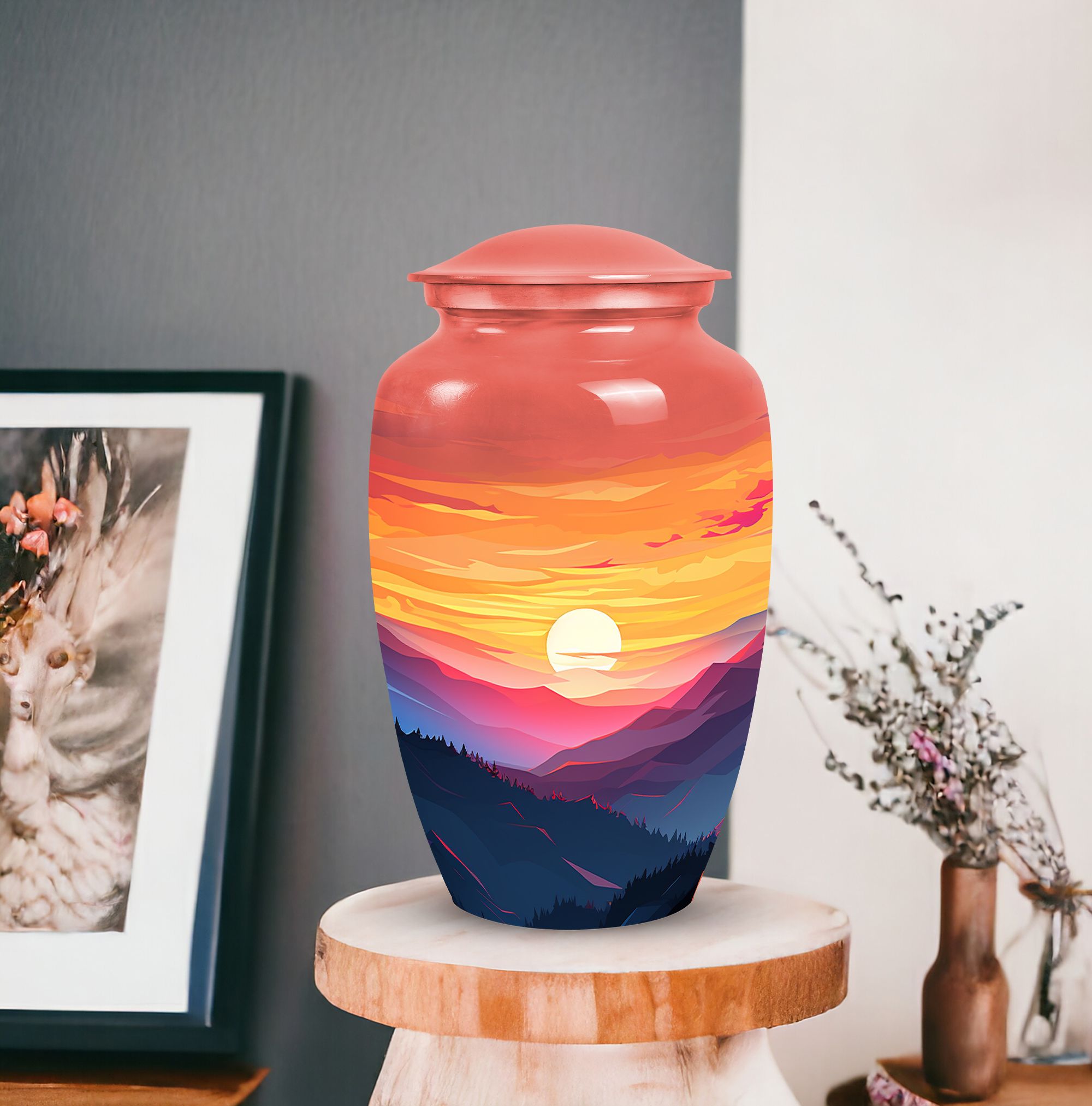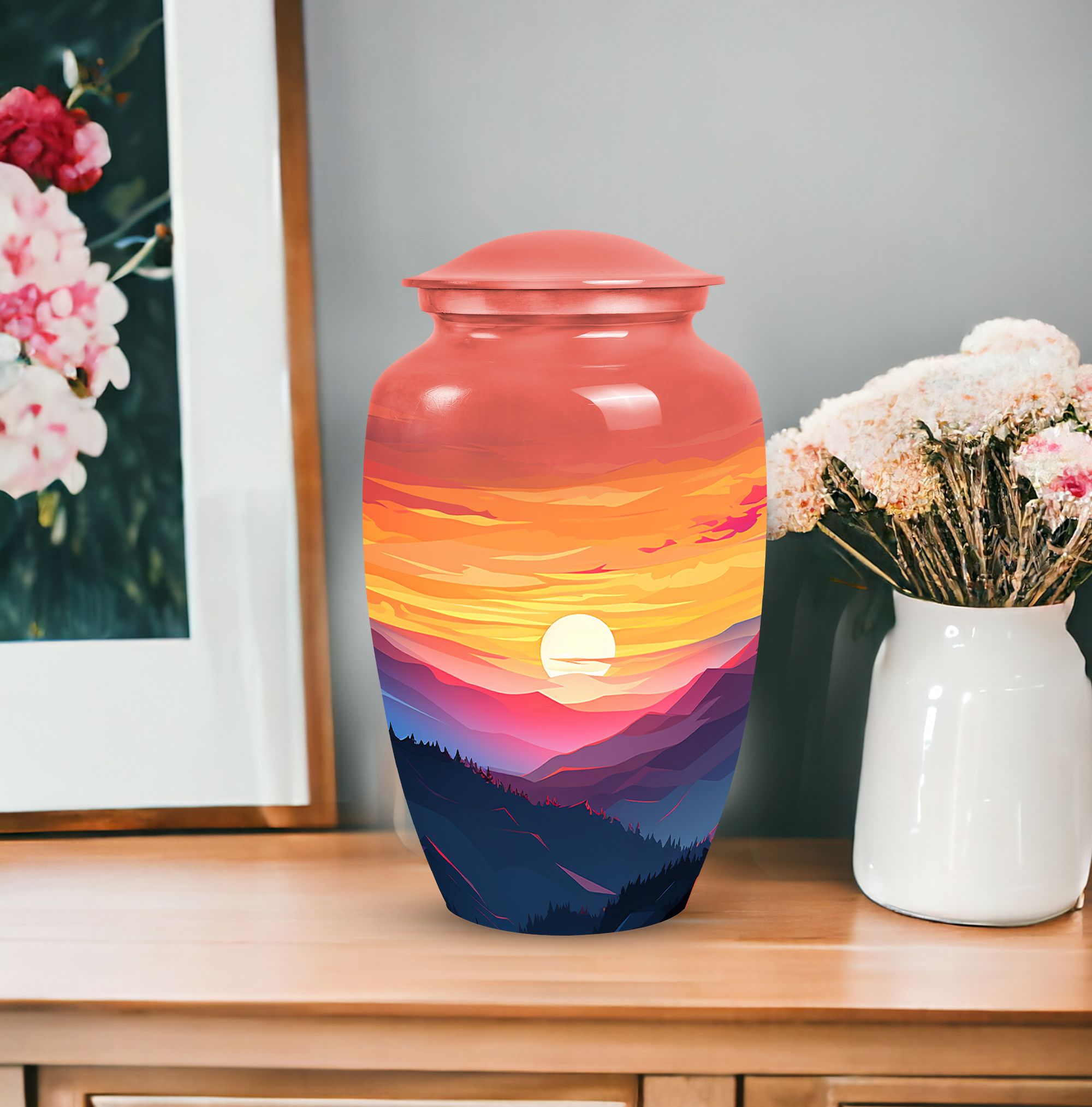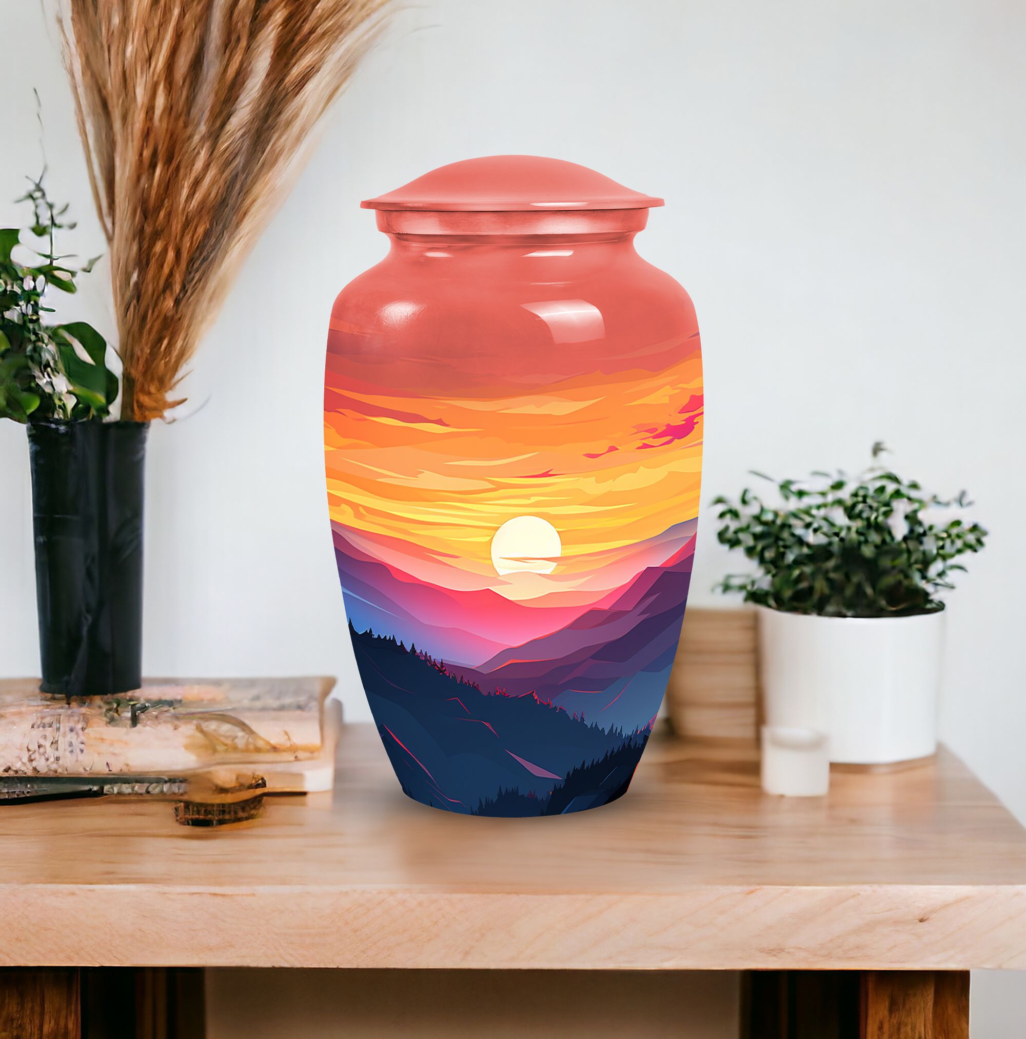 Experience the compassion and comfort you deserve during your time of need with our 'Mountains Urns For Ashes'. Capturing the majesty of a serene mountain range, this cremation urn serves as a respectful and affectionate memorial for your beloved. Distinguished from other funeral urns for human ashes adult, our box provides a peaceful final resting place with its intricate design. Constructed to stand the test of time, these large urns for human ashes take on an impressive form that suits the adult male. Each piece is created to inspire reflection and honor, giving it a unique position among memorial large urns for ashes. Feel close to your dearly departed every time you glance at the grandeur of the mountains. With this cremation urn, you keep their memory alive and right within the landscapes of your heart.