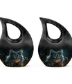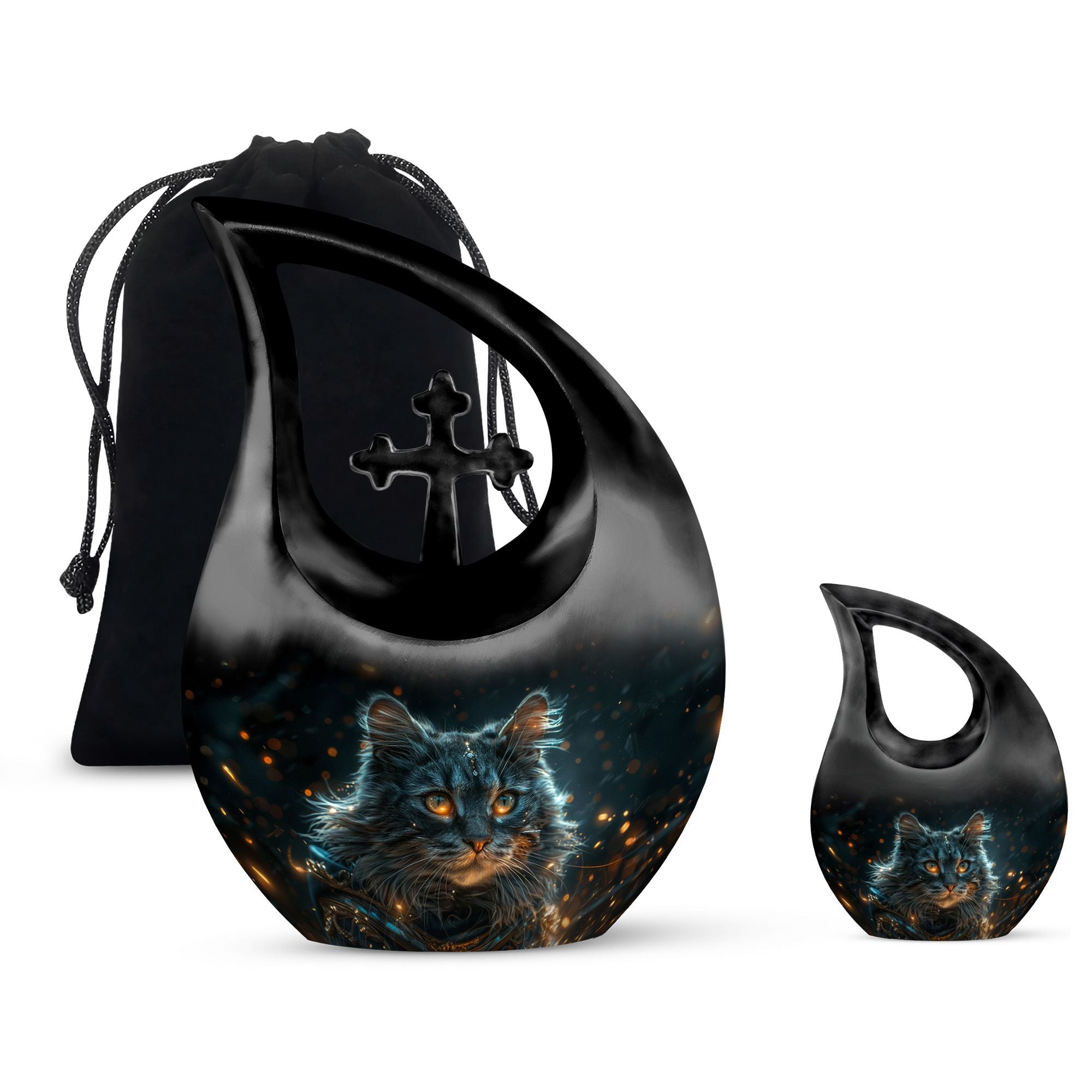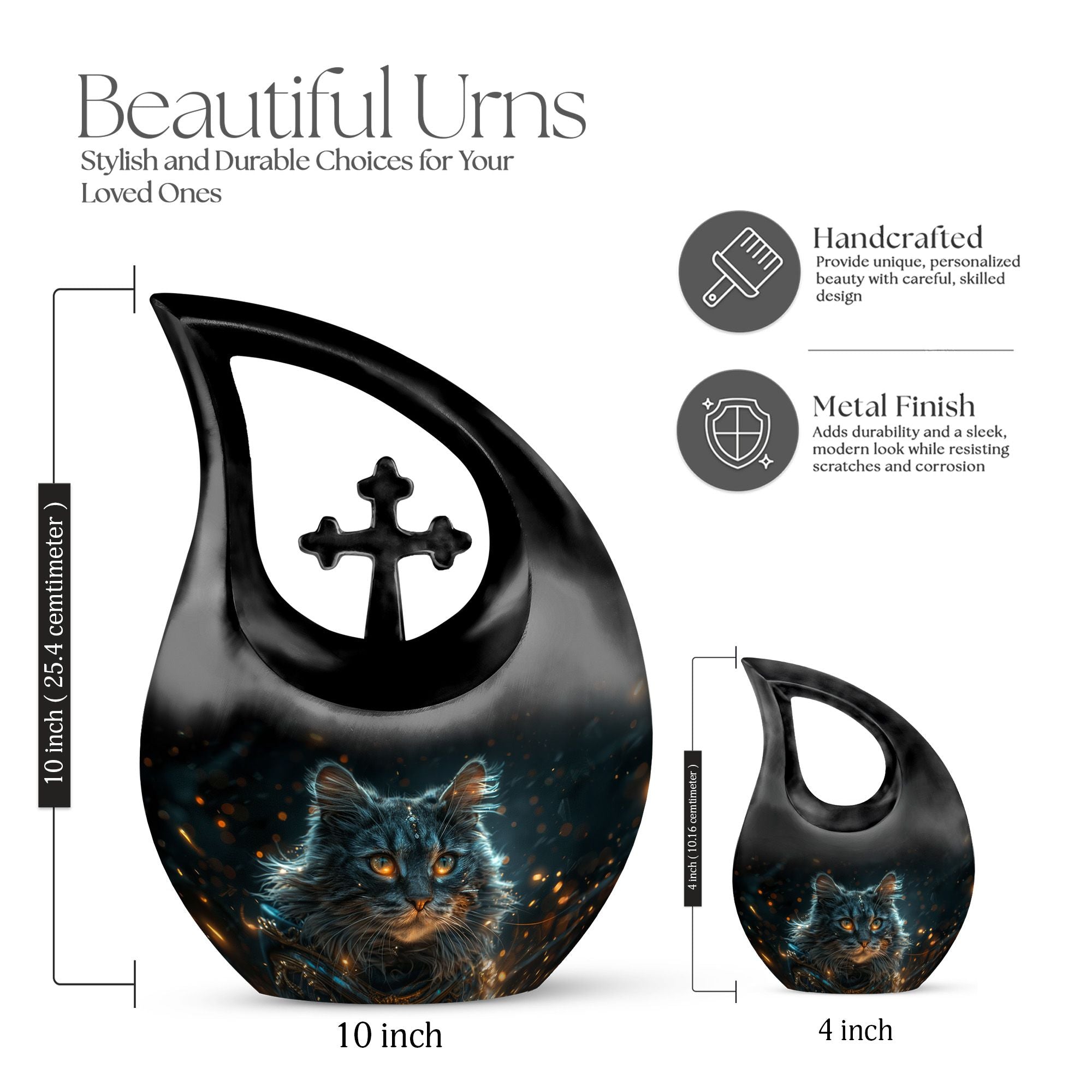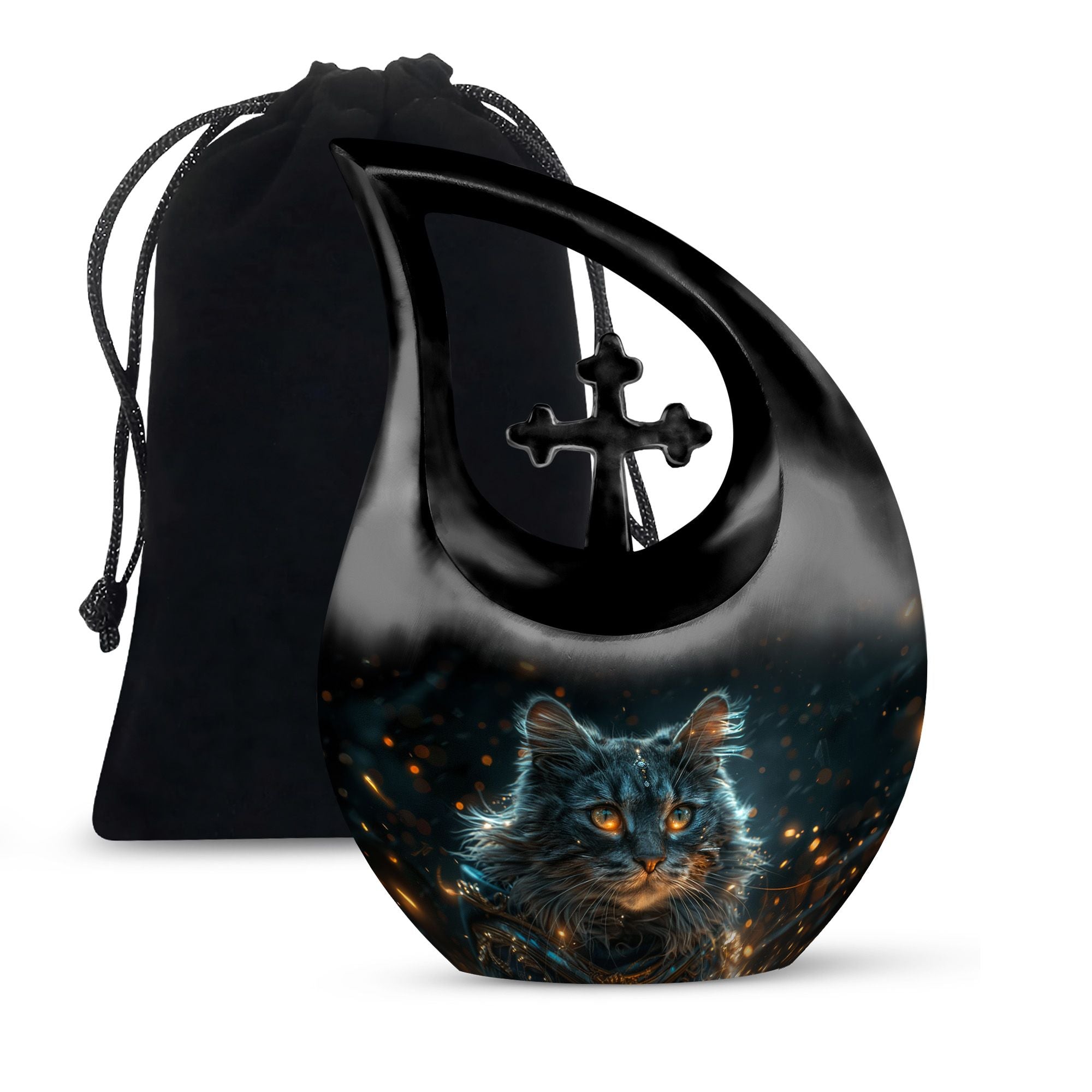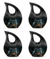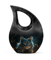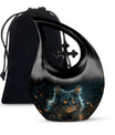 Convey love to your dearly departed with our Mystic Gaze Urn, a masterpiece from our small urns for ashes range. At 10 inches in height and a capacity of 200 cubic inches, this urn is made of prime-quality aluminium, promising prolonged durability. Its weight is a substantial 3.3 pounds, adding to the product's robust structure. The urn showcases a sleek 'Cross Drop' design, reflecting a deep connection with the spiritual realm. Your purchase package will include a velvet pouch for a homely containment of the remnants. The urn offers a unique customization option, allowing you to personalize it with engraved names. Catering to various needs, it is apt for various scenarios like Burial Urns For Human Ashes, Ashes Holders For Cremation, or as a modern urn. Let the Mystic Gaze Urn become an enduring tribute to your loved one's beautiful life journey.