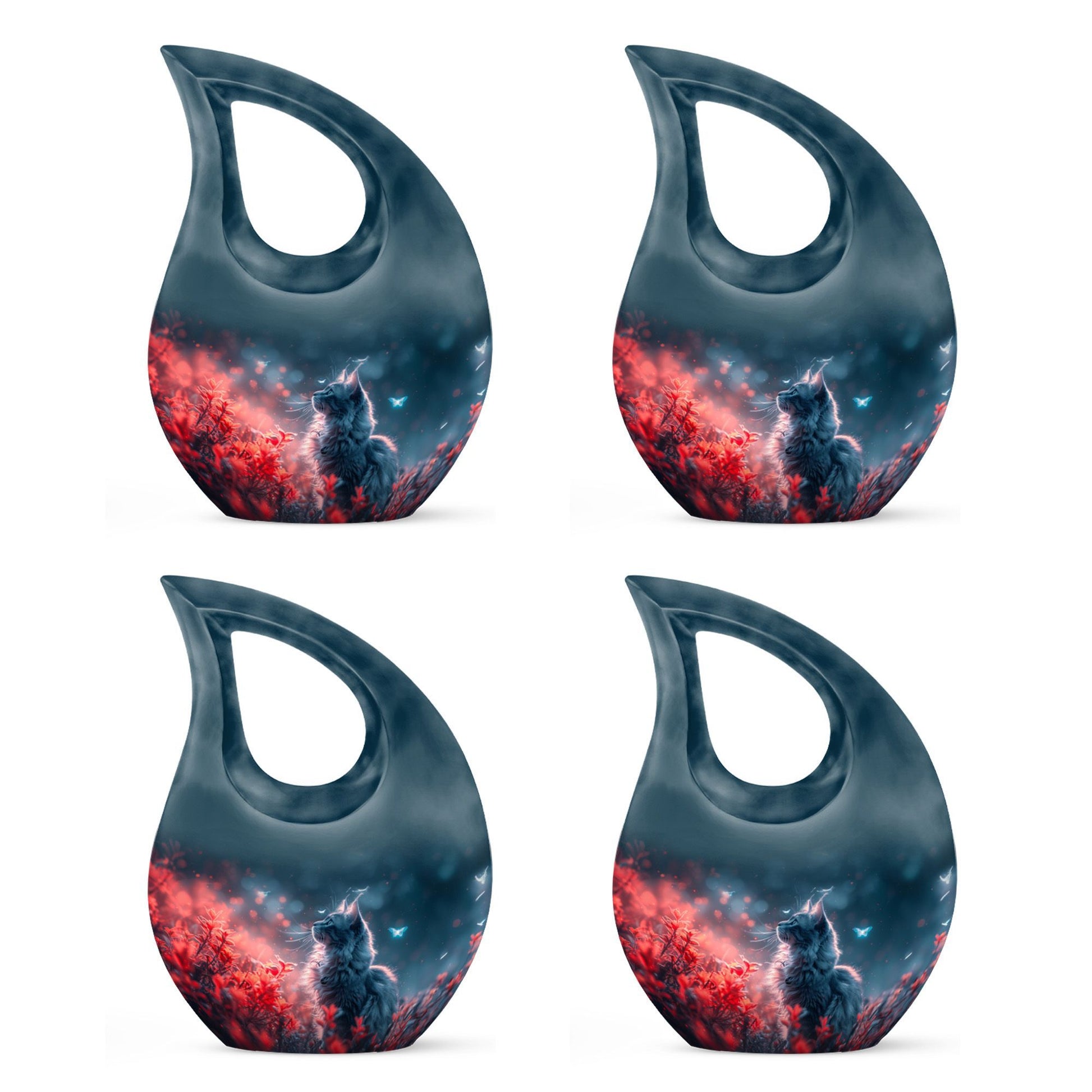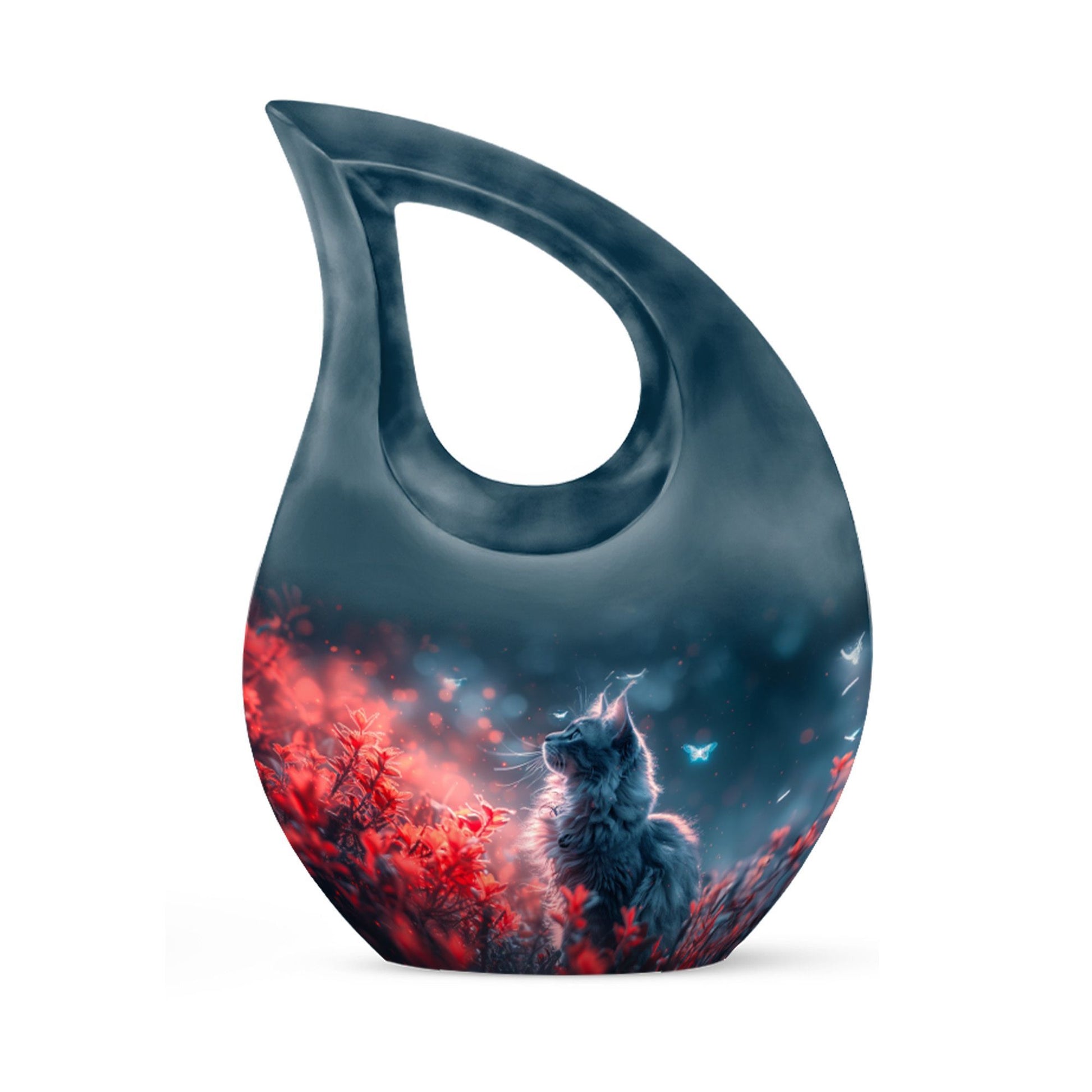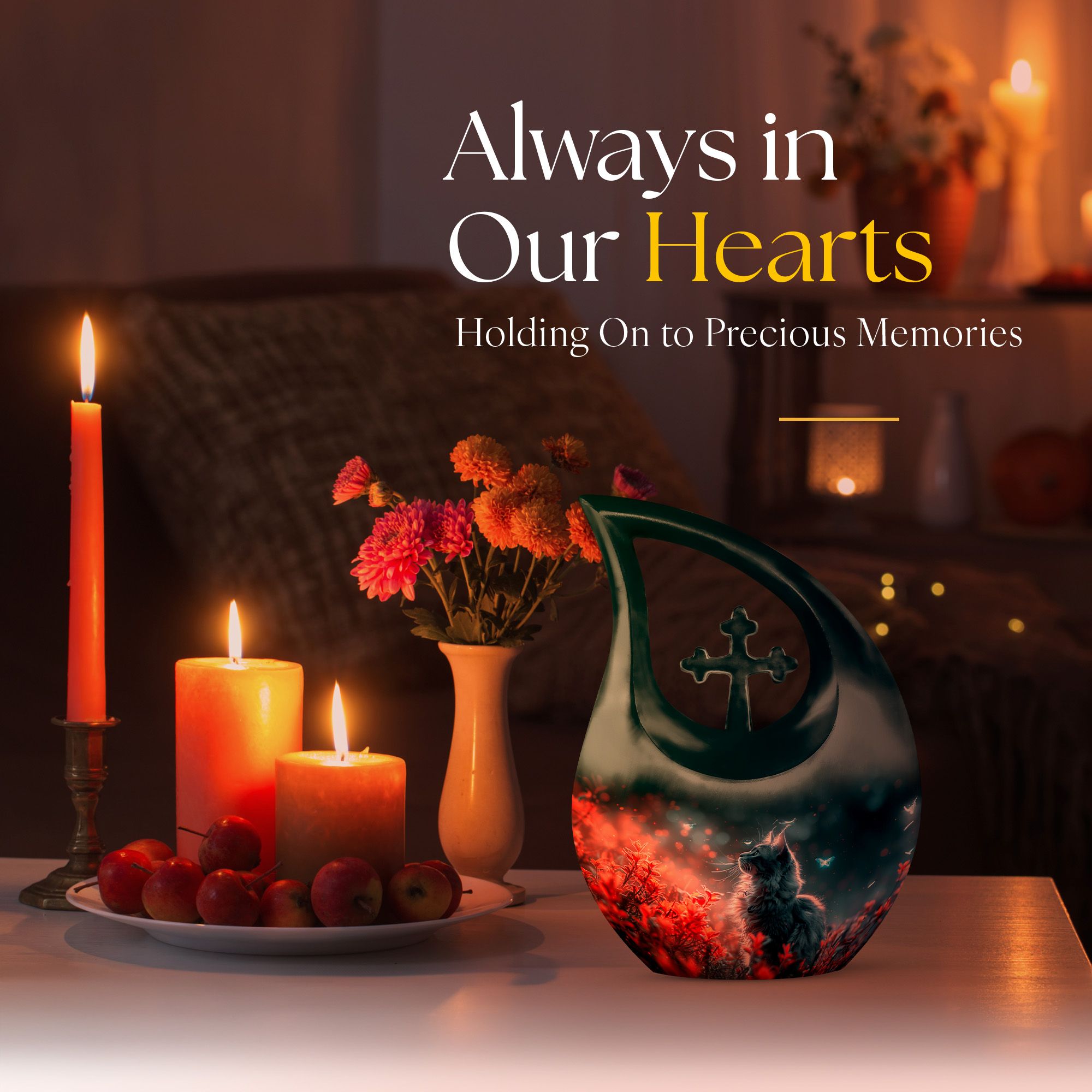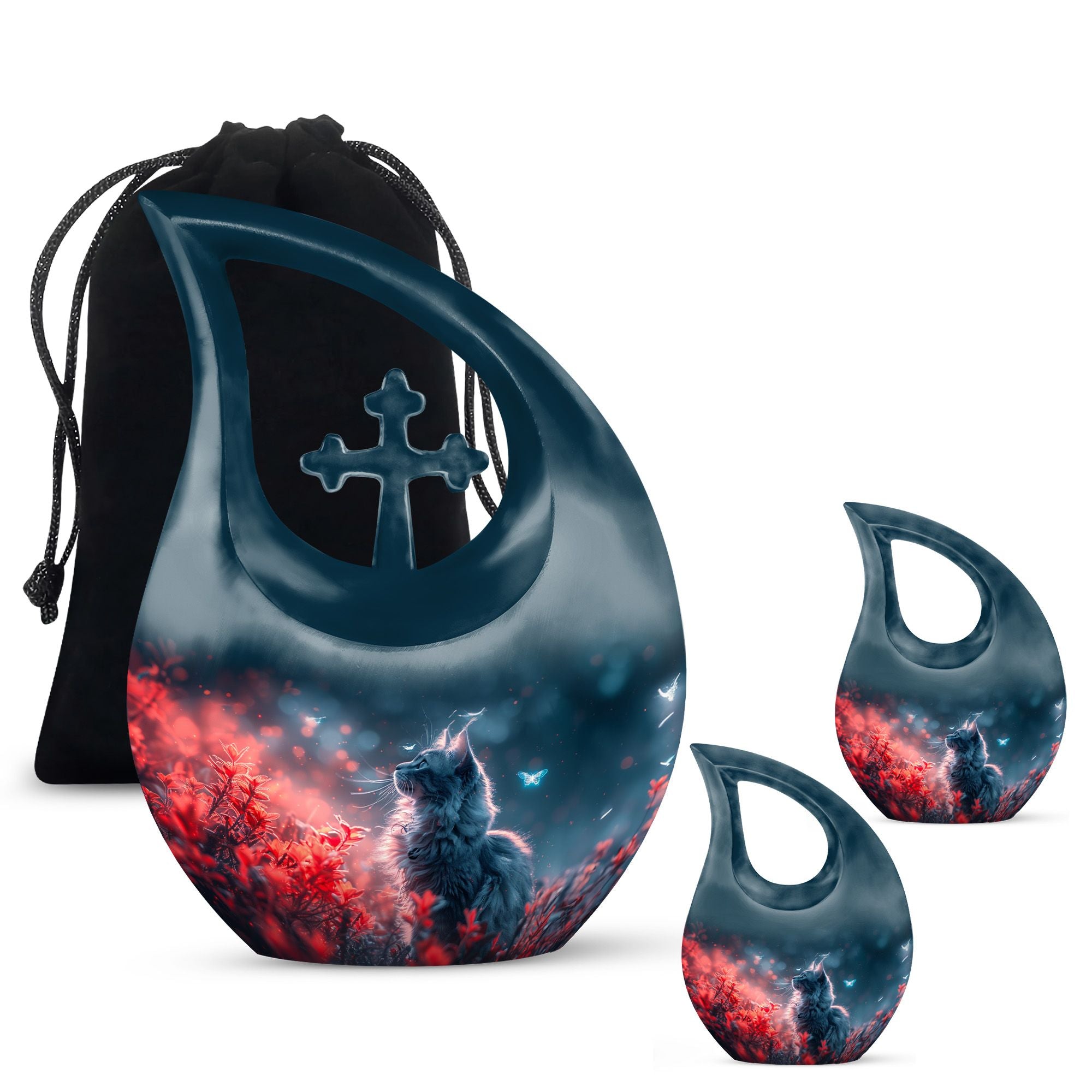 Imbued with enduring sentiment, the 'Mystical Whiskers Urn' presents a compassionate choice for the safe containment of the cherished ashes of a loved one. Enhanced by the exquisitely crafted 'Cross Drop' pattern, the urn appreciates the transient beauty of life. Standing at an impressive size of 10 inches in height, this large monument is a worthy tribute, offering a capacity of lofty 200 cubic inches. It bears a refined weight of 3.3 pounds, constructed from the sturdy build of Aluminium, upholding its promise of long-lasting companionship. The 'Together Again Companion Urn' invokes the power of unity and togetherness in commemoration. Personalizing this urn by engraving names stands as a mark of your intimate connection to the departed soul. Providing a soft velvet pouch for the ashes, the subtle care encapsulated makes this urn a standout among other memorial urns. Add a remarkable touch to your remembrance with this blend of elegance and devotion. Ideal for those seeking urns for men's ashes, bio urn for humans, tall urns, and the best urns.