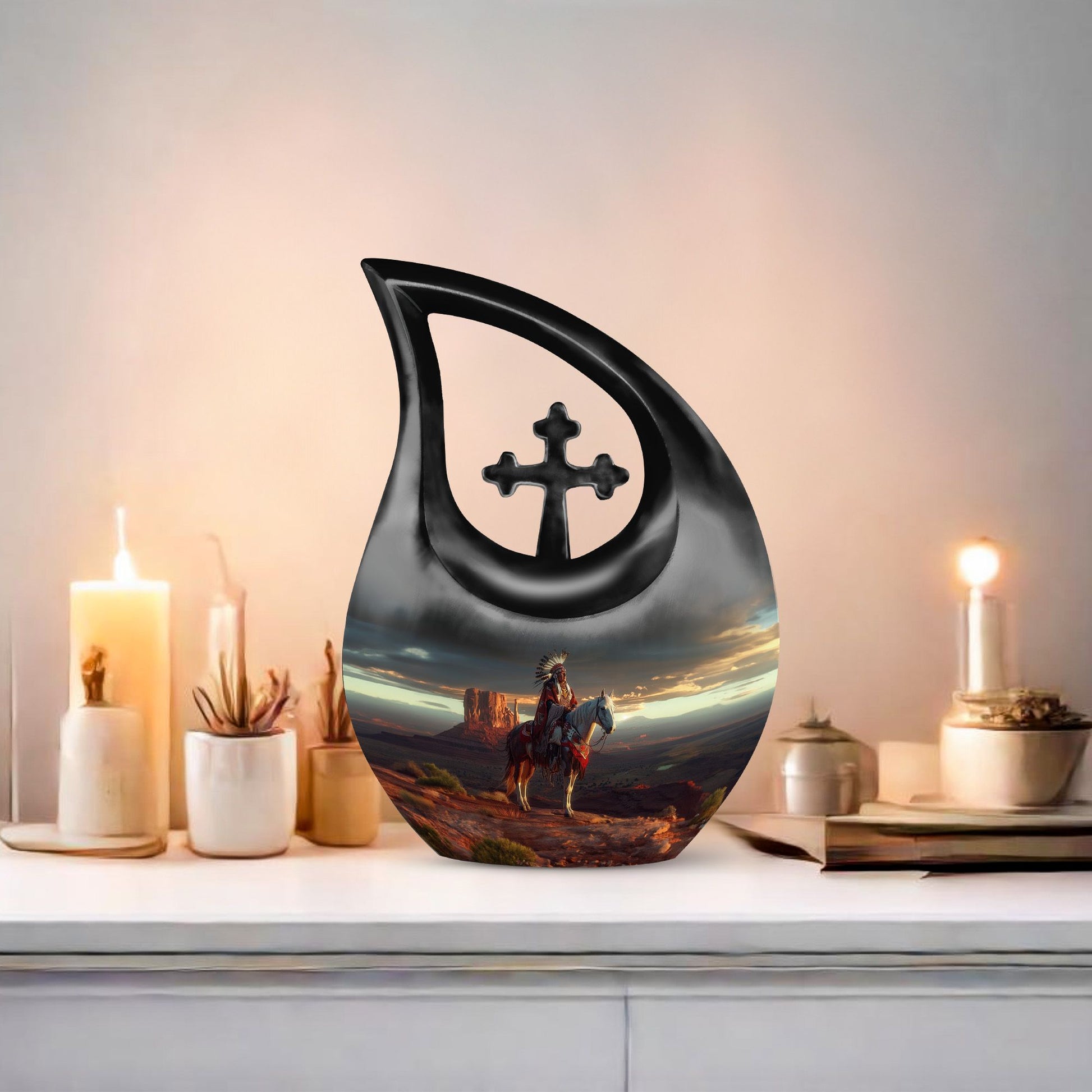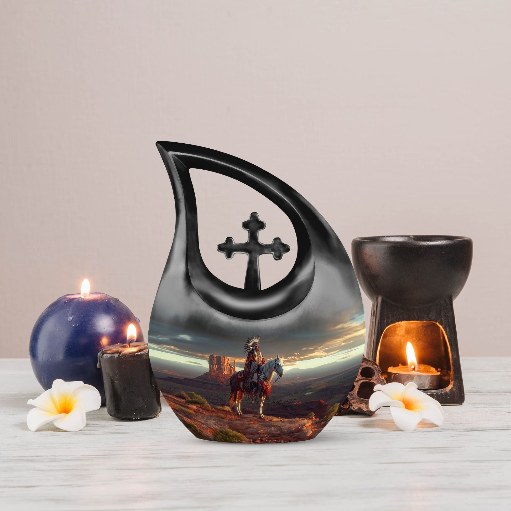 This Native American Burial Urn is a heartfelt way to honor the life and legacy of someone you love. Thoughtfully crafted for families seeking funeral cremation urns for ashes, funeral adult urn options, or small funeral urns, it provides a meaningful and comforting tribute. Its design allows it to serve beautifully for both men and women, making it a versatile and respectful memorial choice.