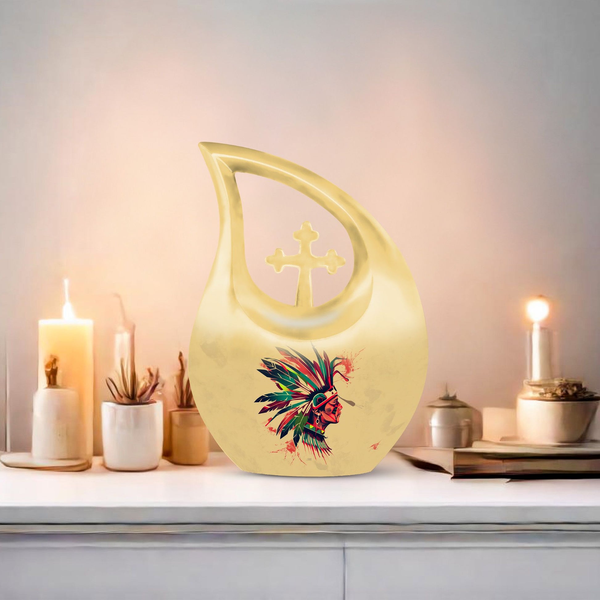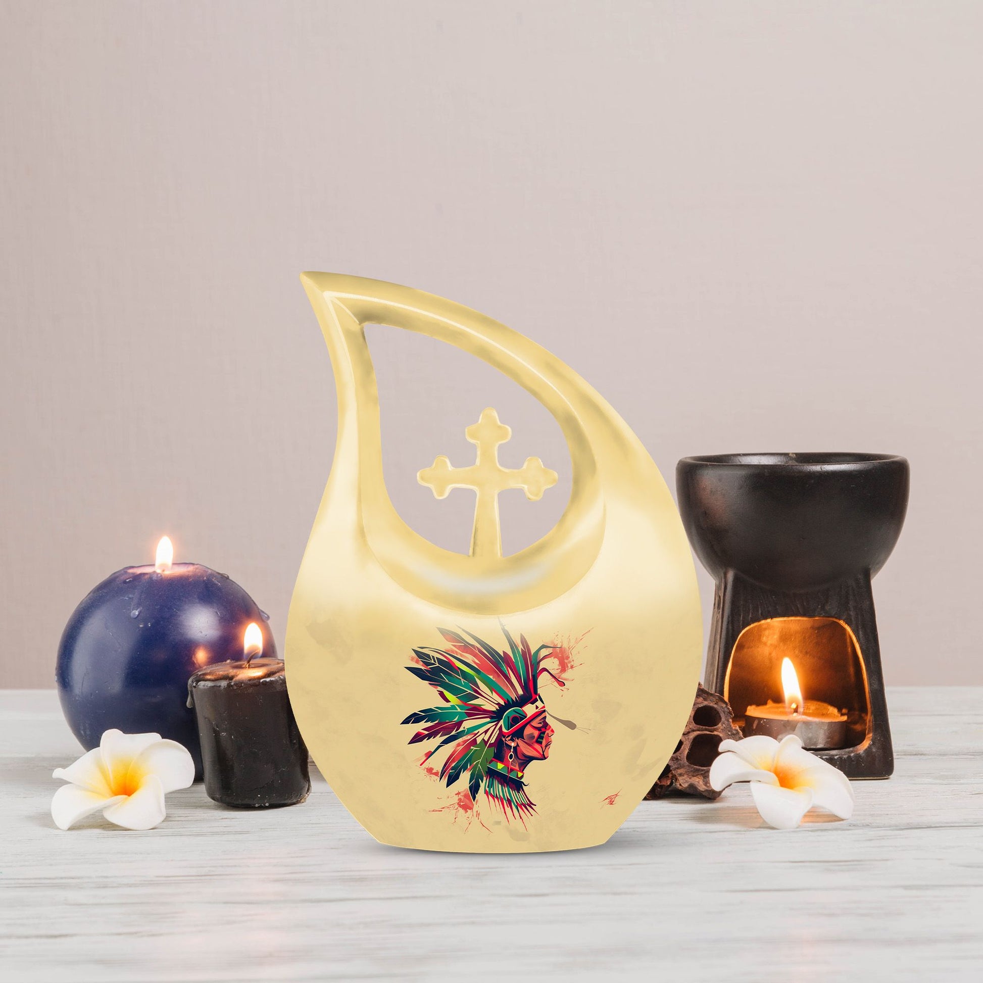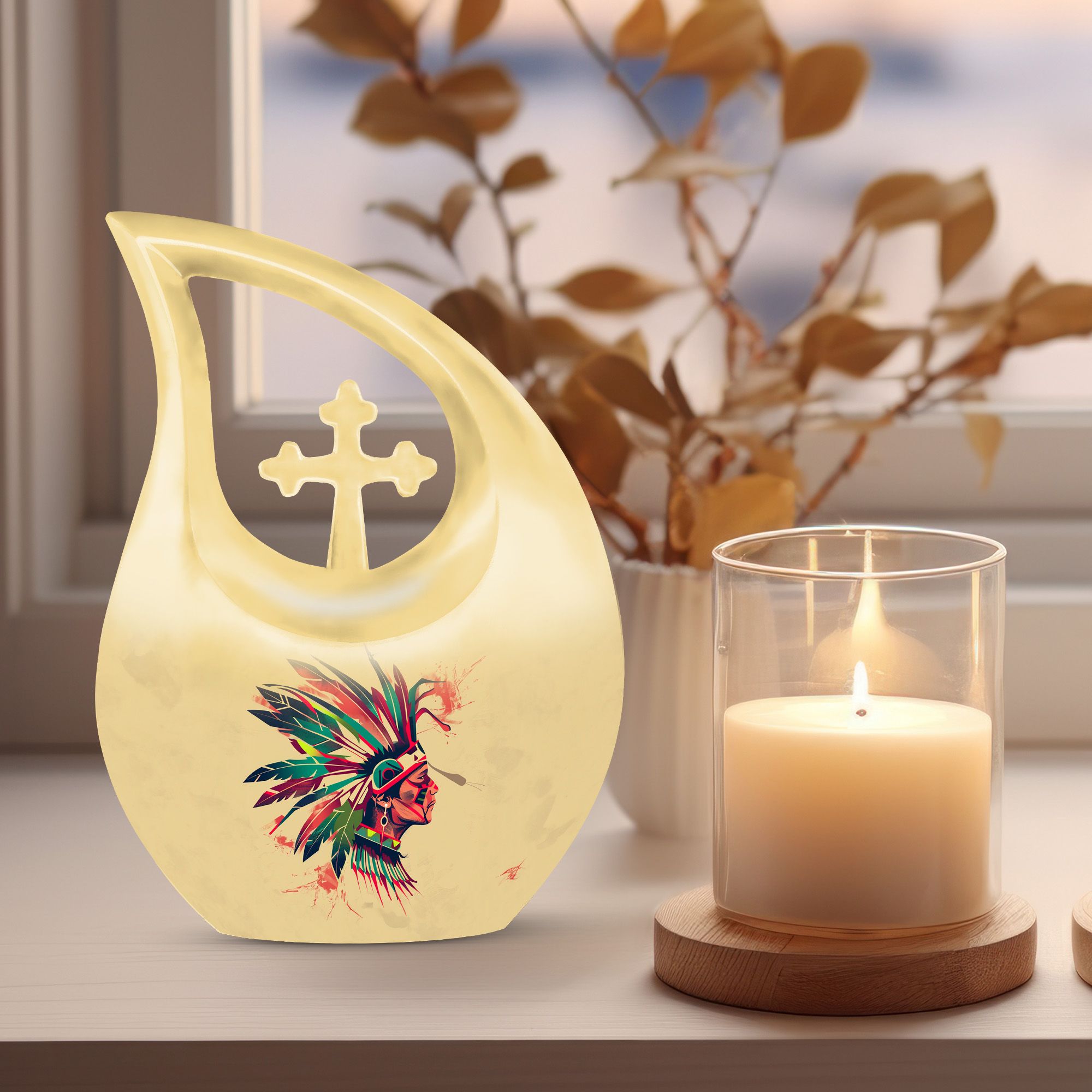 This Native American Cremation Urn offers a powerful and symbolic tribute, designed to honor the spirit and legacy of your loved one. Thoughtfully crafted for families seeking urns for human ashes male, adult female urn options, or urns adult male, it provides a respectful and comforting memorial choice. Its presence brings peace while supporting those selecting funeral urns for human ashes.