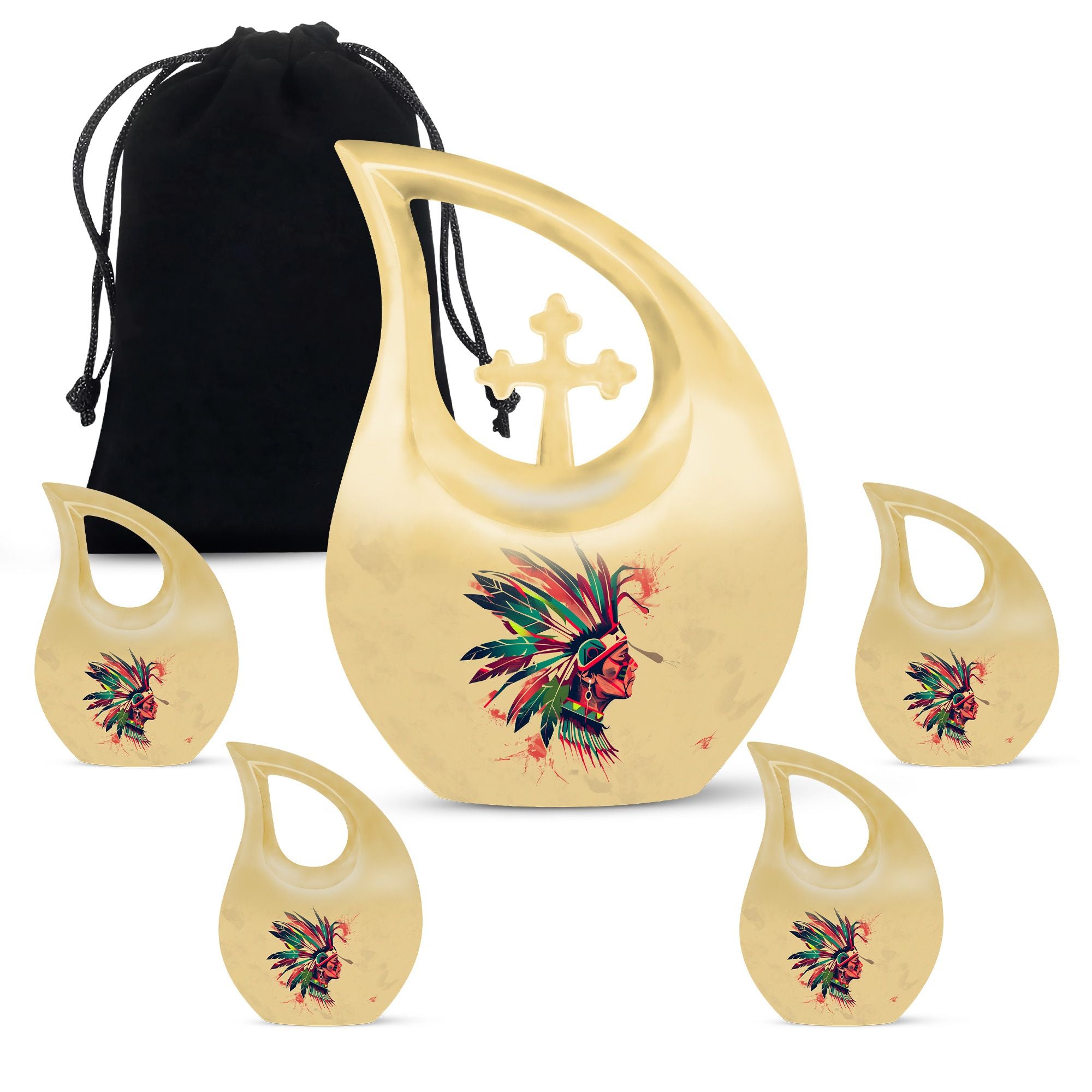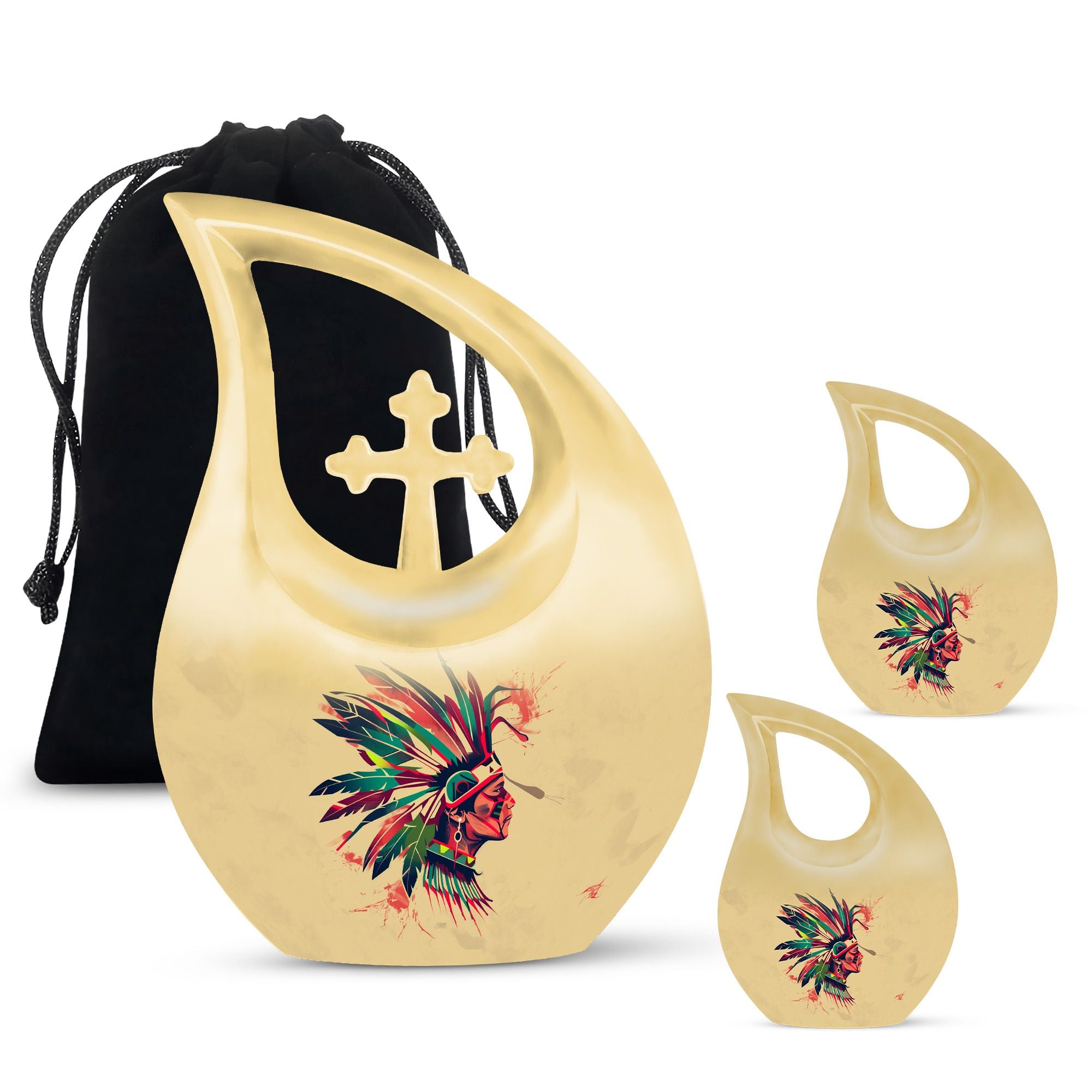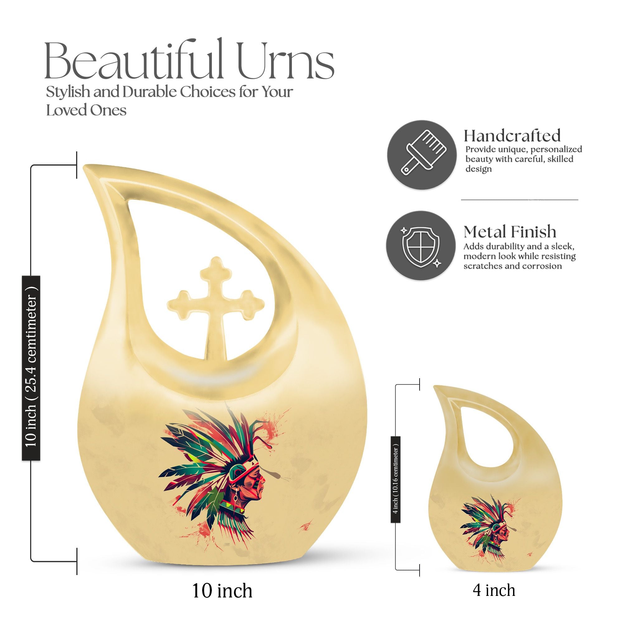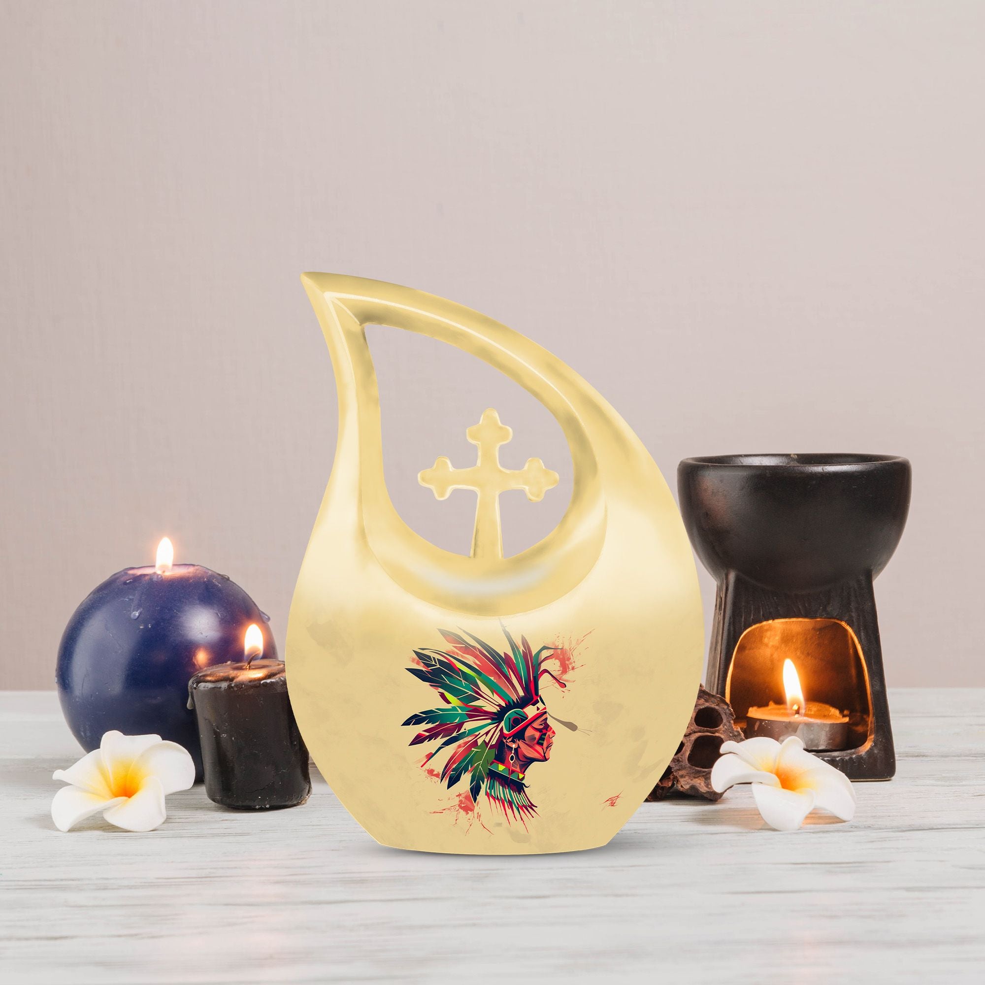 This Native American Cremation Urn offers a powerful and symbolic tribute, designed to honor the spirit and legacy of your loved one. Thoughtfully crafted for families seeking urns for human ashes male, adult female urn options, or urns adult male, it provides a respectful and comforting memorial choice. Its presence brings peace while supporting those selecting funeral urns for human ashes.