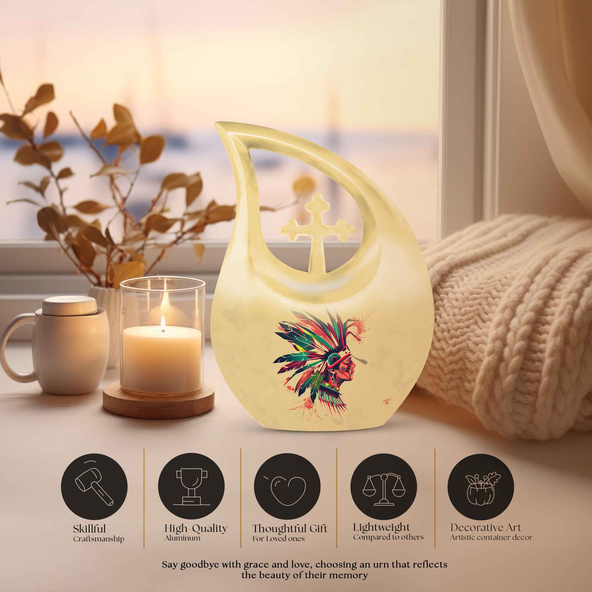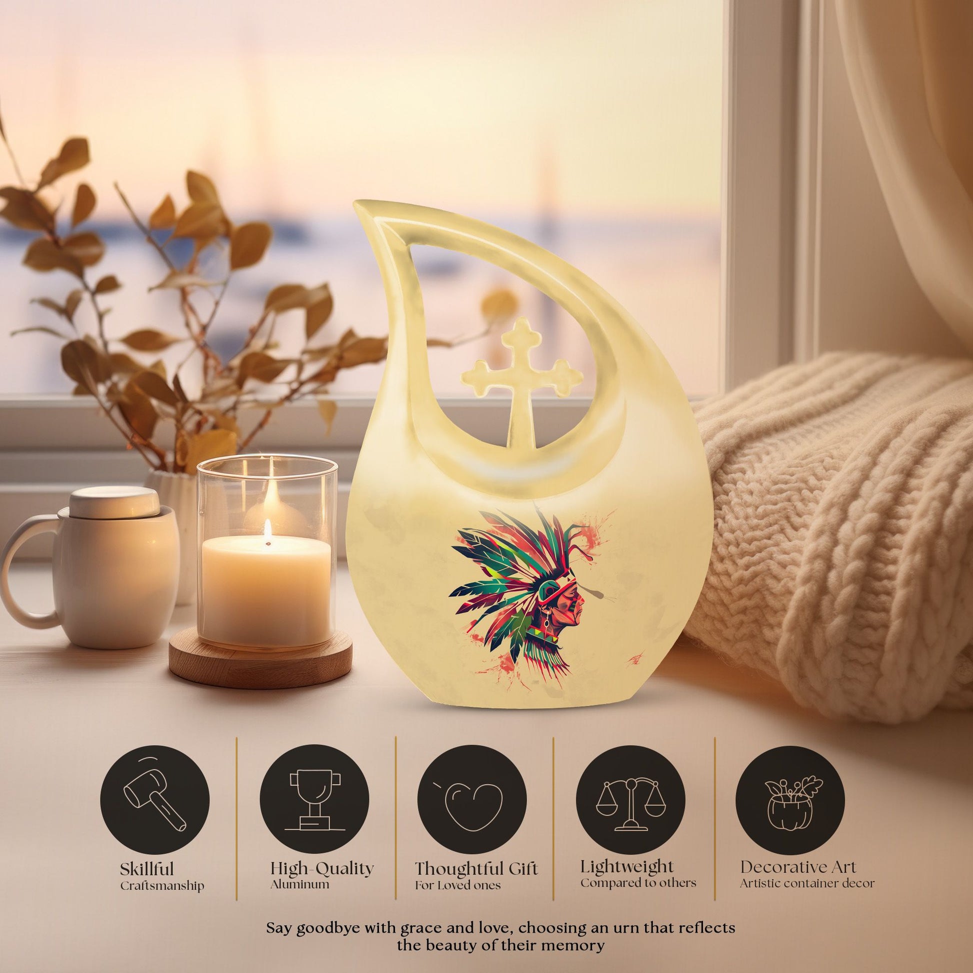 With a detailed Native American–inspired design, this aluminium urn blends cultural artistry with durability. Whether you need urns adult male small, urns ashes male, or urns adult male dad, the strong construction and secure screw-top lid ensure safekeeping. It also serves beautifully for funeral urns for adult ashes women and funeral urns for adult ashes, offering versatility for any memorial setting.