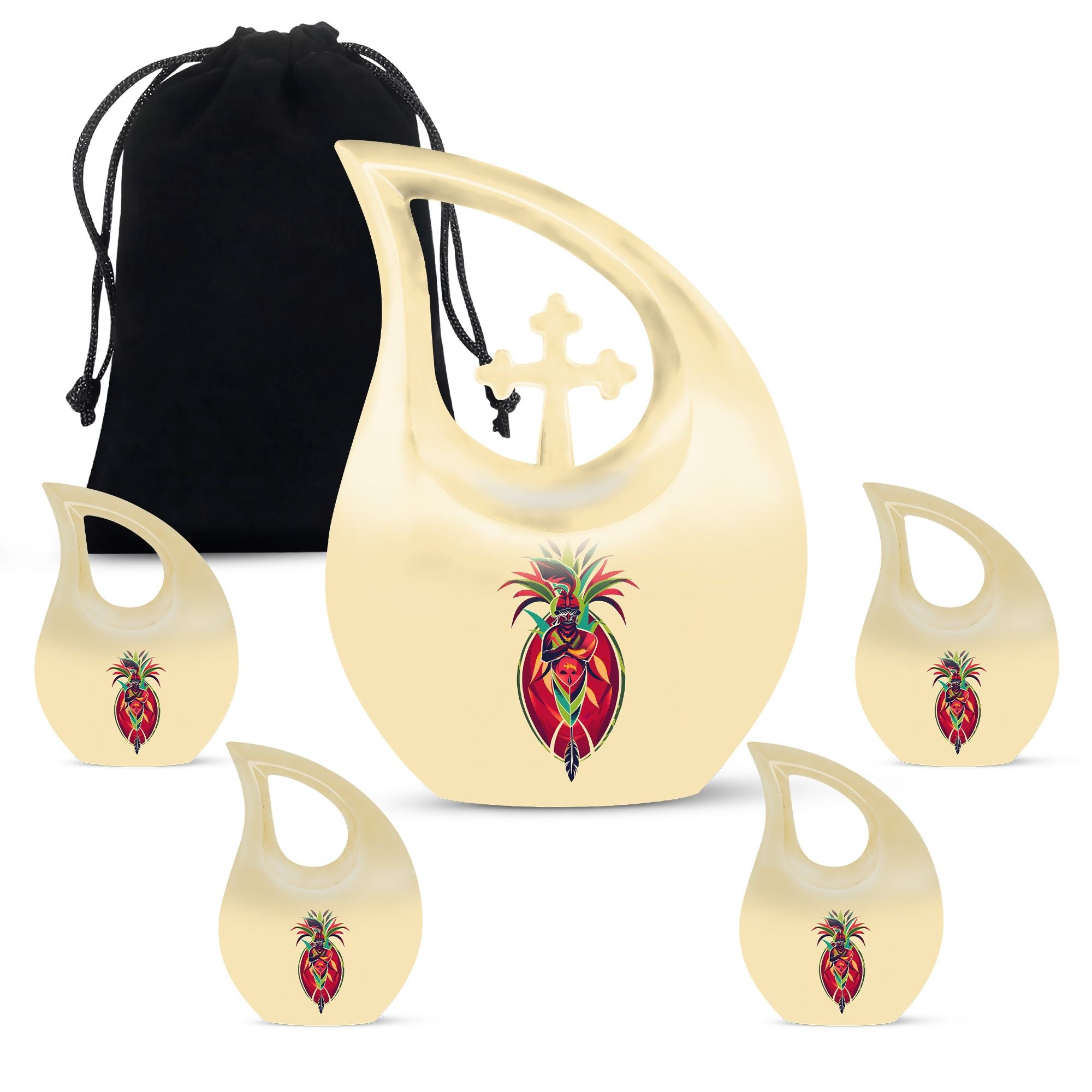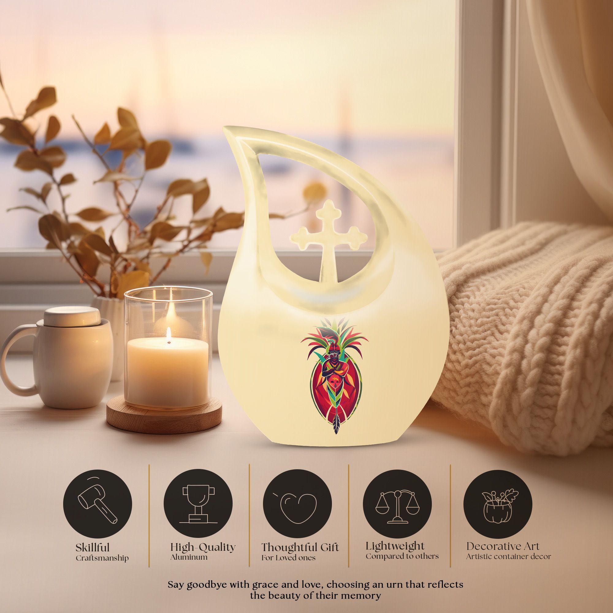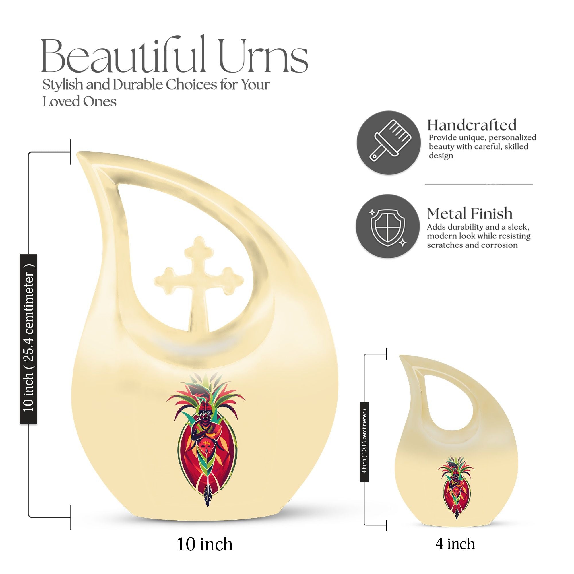 Expertly made from durable aluminium, this urn blends tribal artistry with long-lasting protection. Its secure screw-top lid keeps ashes safe, making it perfect for families seeking a cremation urn small, urns for cremation ashes small, or cremation ashes keepsakes that can be displayed or shared among family members. This design also supports a variety of memorial traditions including cremation urns for ashes for men, urns for cremation, and cremation keepsakes urns. Despite its compact size, it reflects the same dignity found in full-size cremation urns for adult ashes.