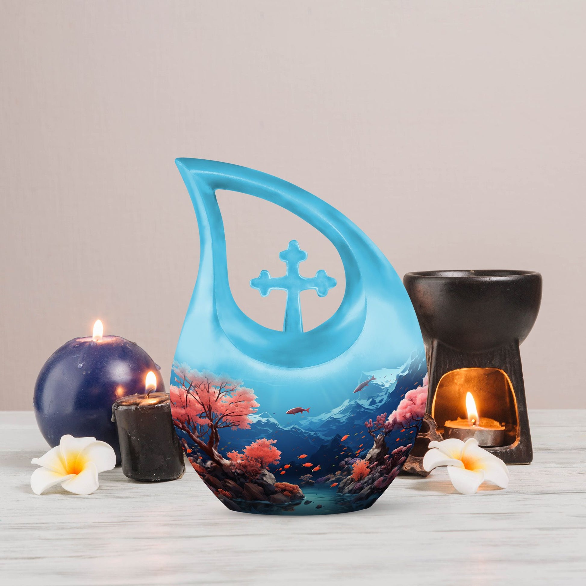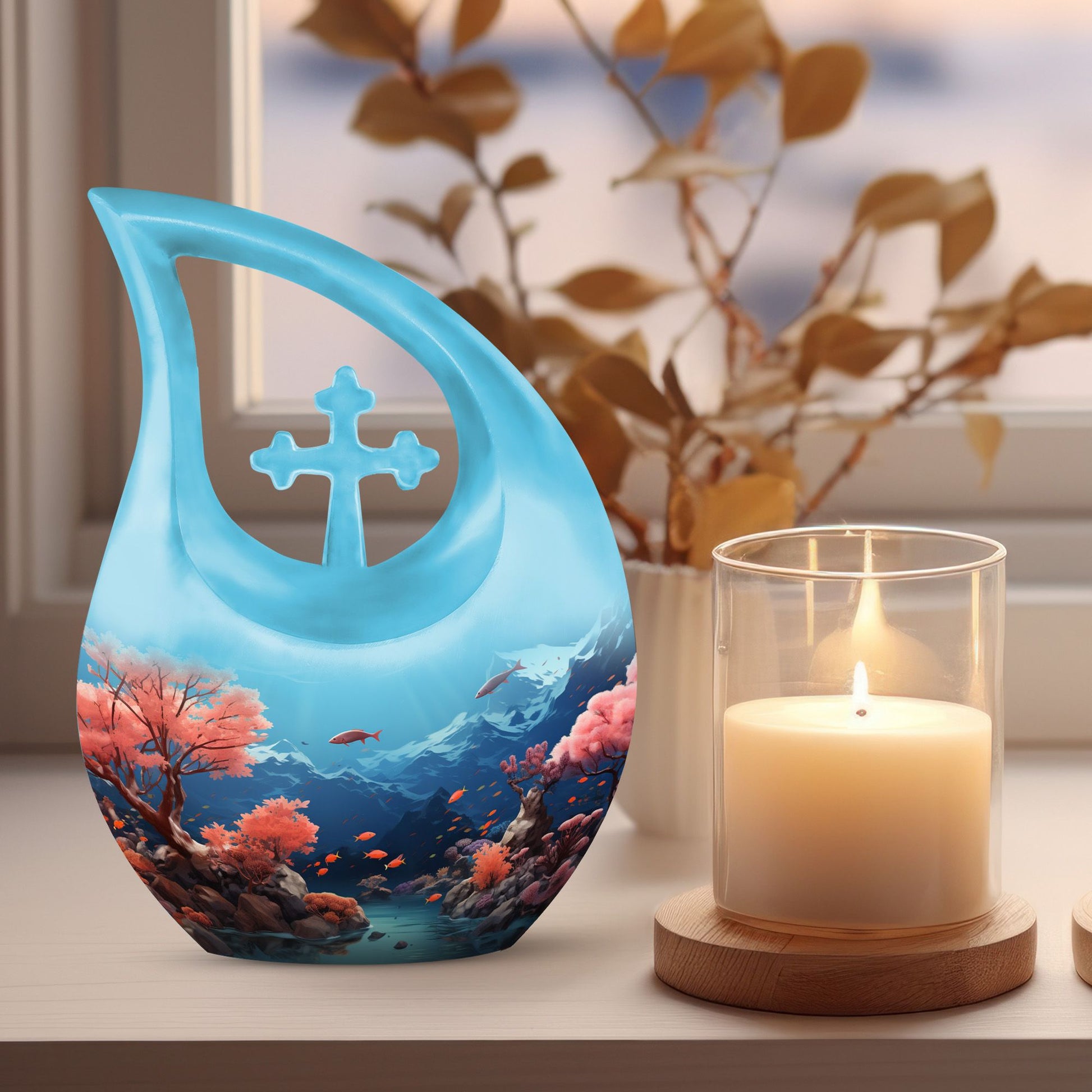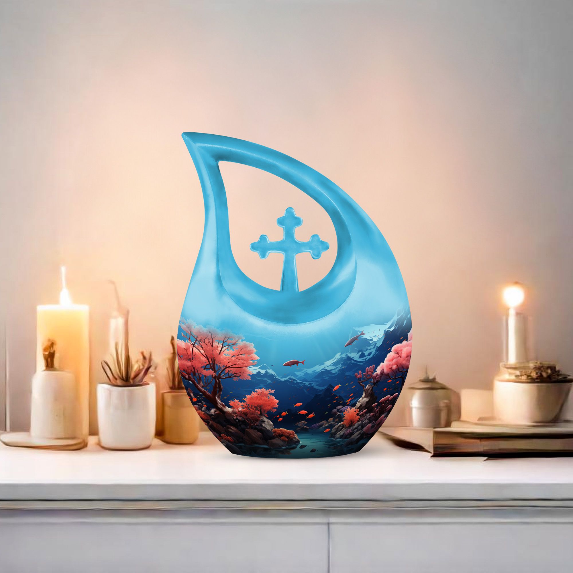 The Artistic Ocean Memorial Urn for Funeral offers a serene and meaningful way to honor a cherished life, especially for those who felt a deep connection to the sea. Designed for families seeking a cremation urn adult ash option or human cremation urns adult selections, this underwater-themed tribute symbolizes peace, depth, and eternal remembrance.
