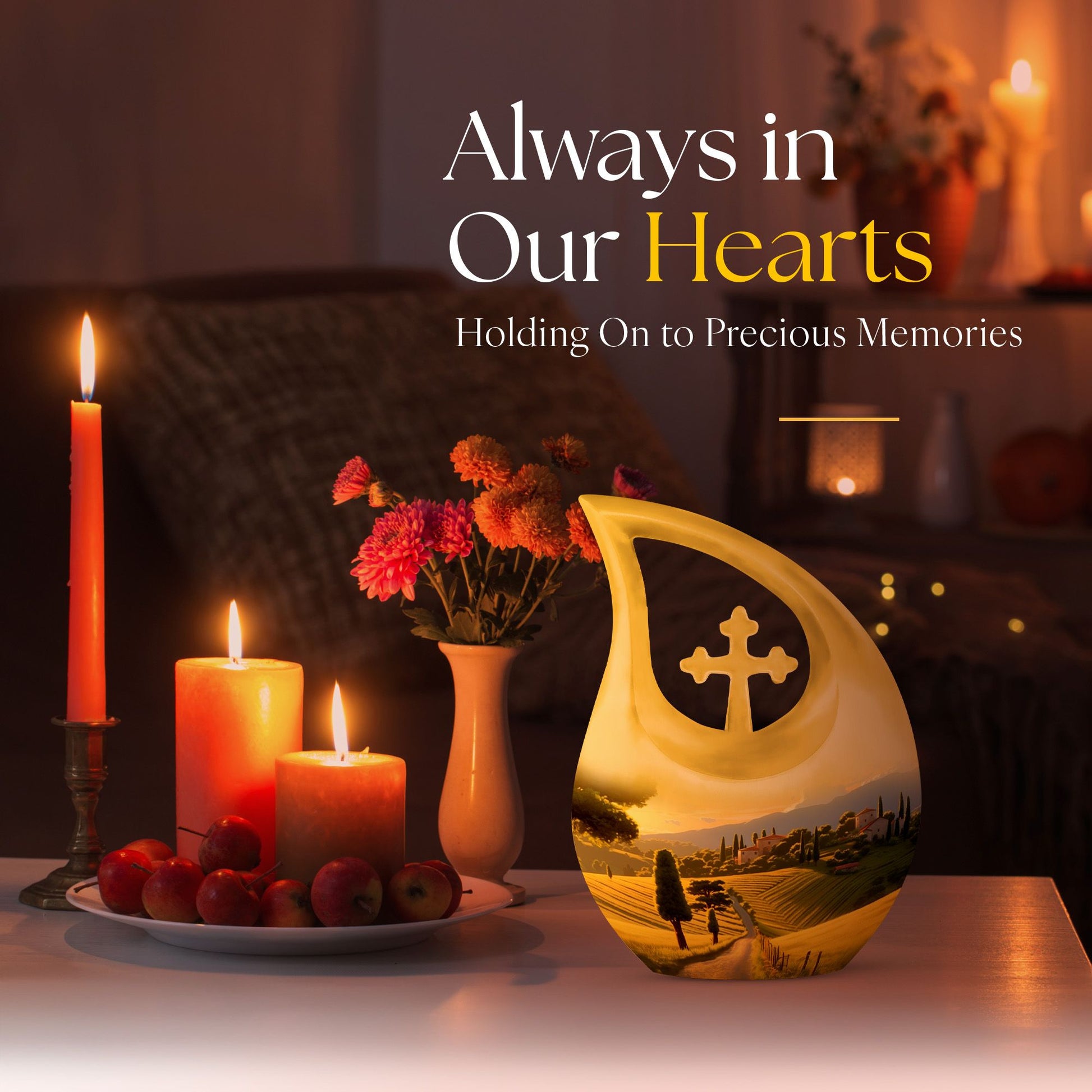 The Beautiful View Memorial Urn for Ashes offers a peaceful and heartfelt way to honor a cherished life. Designed for families seeking urns for burial in ground or cremation burial urns, this memorial piece reflects serenity, remembrance, and the comfort of nature’s beauty. Its universal design makes it suitable for adults, both male and female, offering dignity and emotional warmth.
