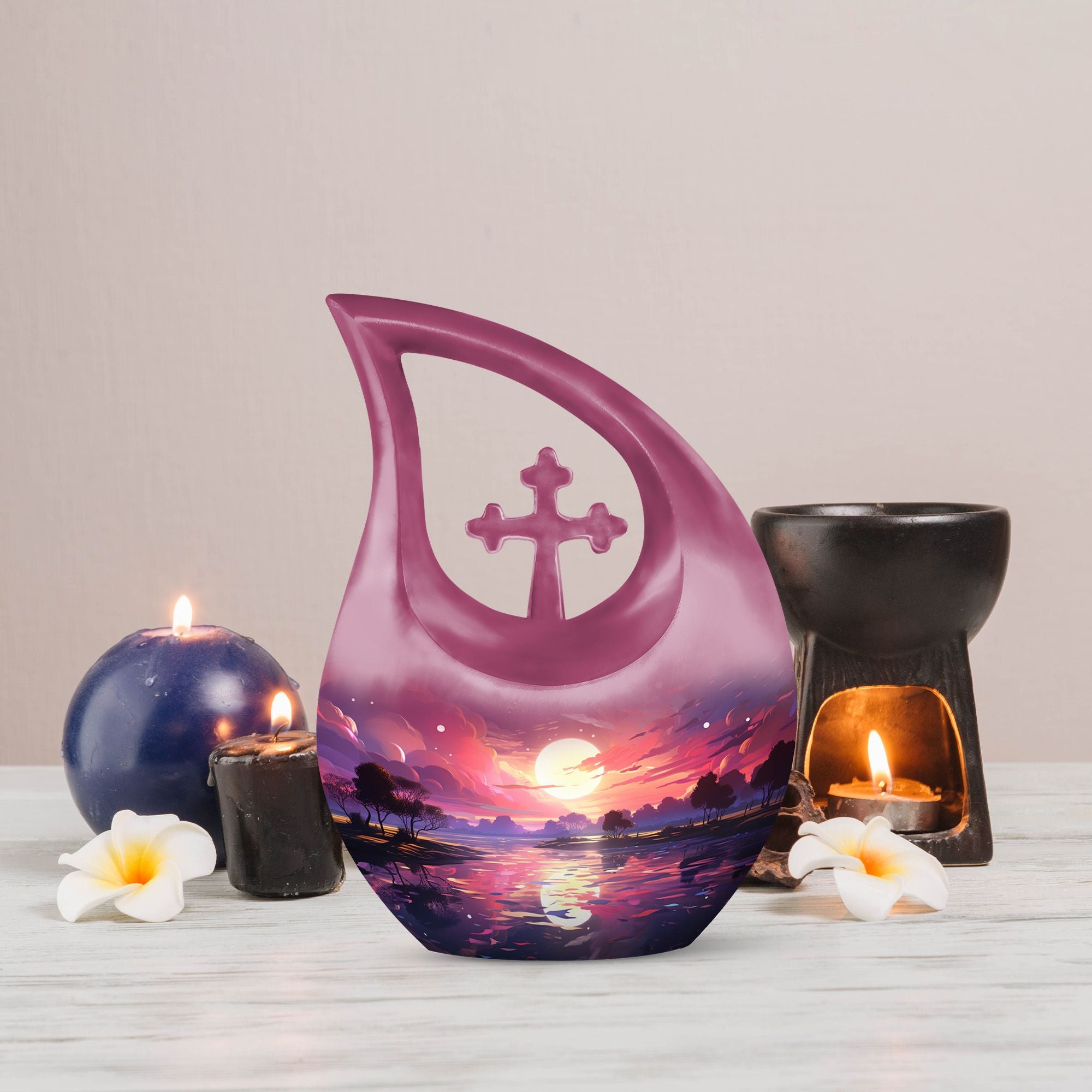 The Pink Ocean Themed Cremation Urn for Ashes offers a peaceful and heartfelt way to honor a cherished life. Designed for families seeking cremations urns for adults or a cremation urn adult human tribute, this ocean-inspired memorial symbolizes calm, comfort, and eternal love.