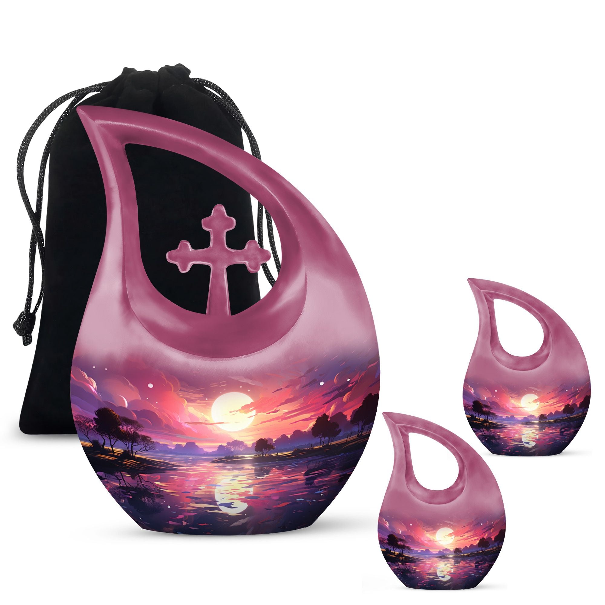 Crafted from durable aluminum, this urn features soft ocean waves in gentle pink tones, creating a soothing and meaningful design. Its secure screw-top lid ensures long-term protection, making it a dependable cremation urn for human ashes adult or cremation urns human selection. Whether used for display, burial, or remembrance ceremonies, it blends beauty with dignity. Families may also pair it with a cremation urn for ashes small or cremation urns for adult ashes small when sharing ashes.