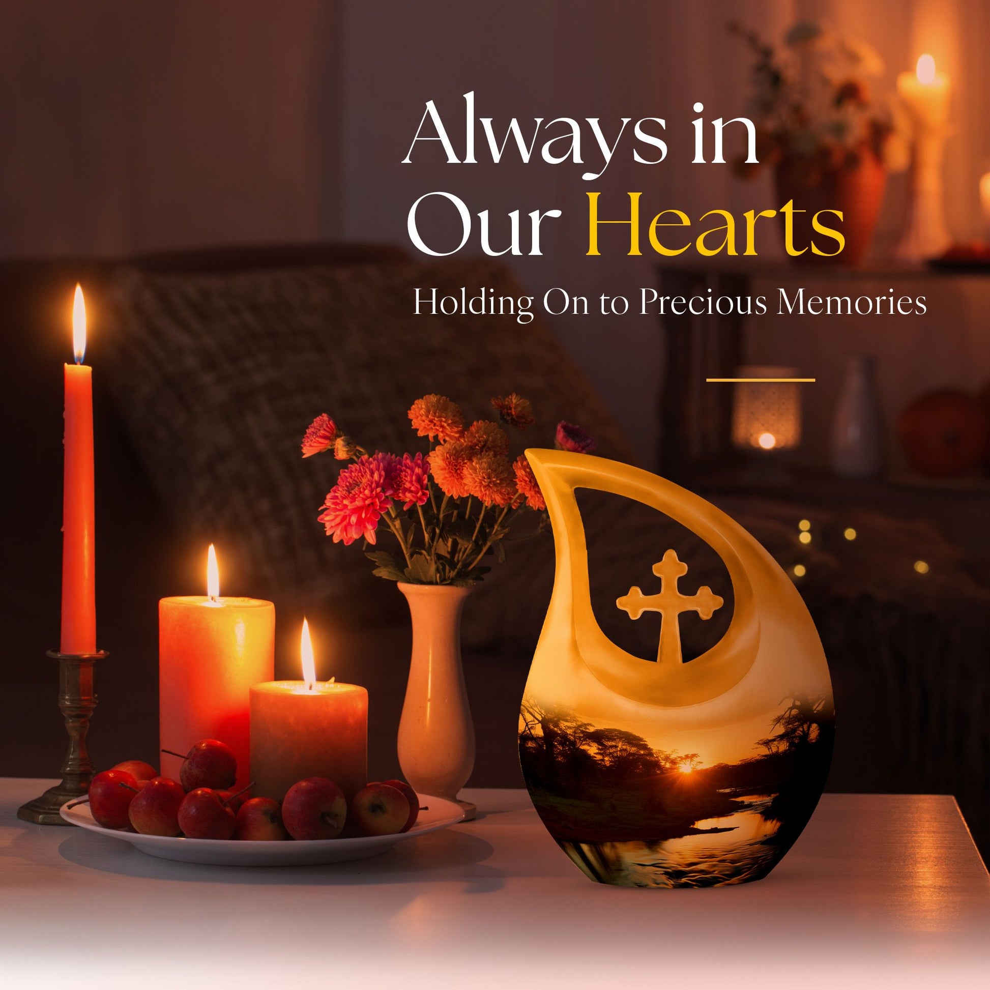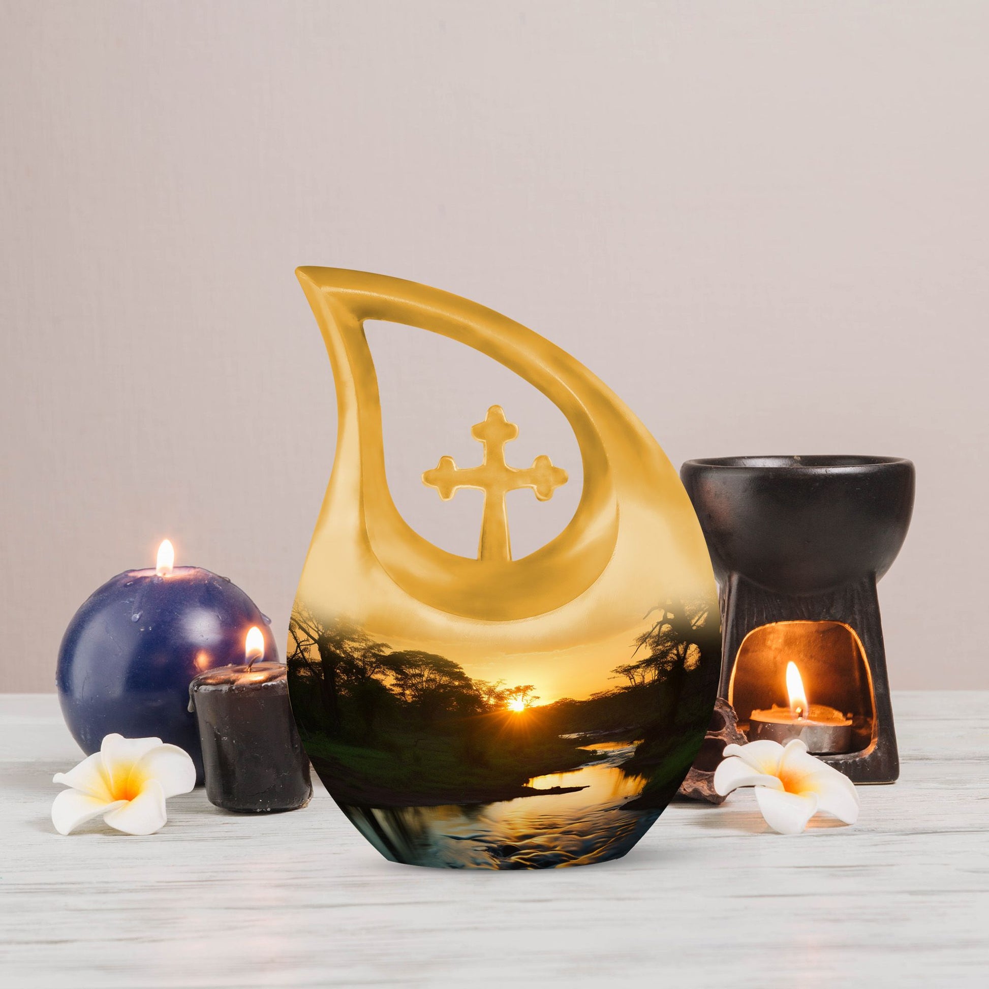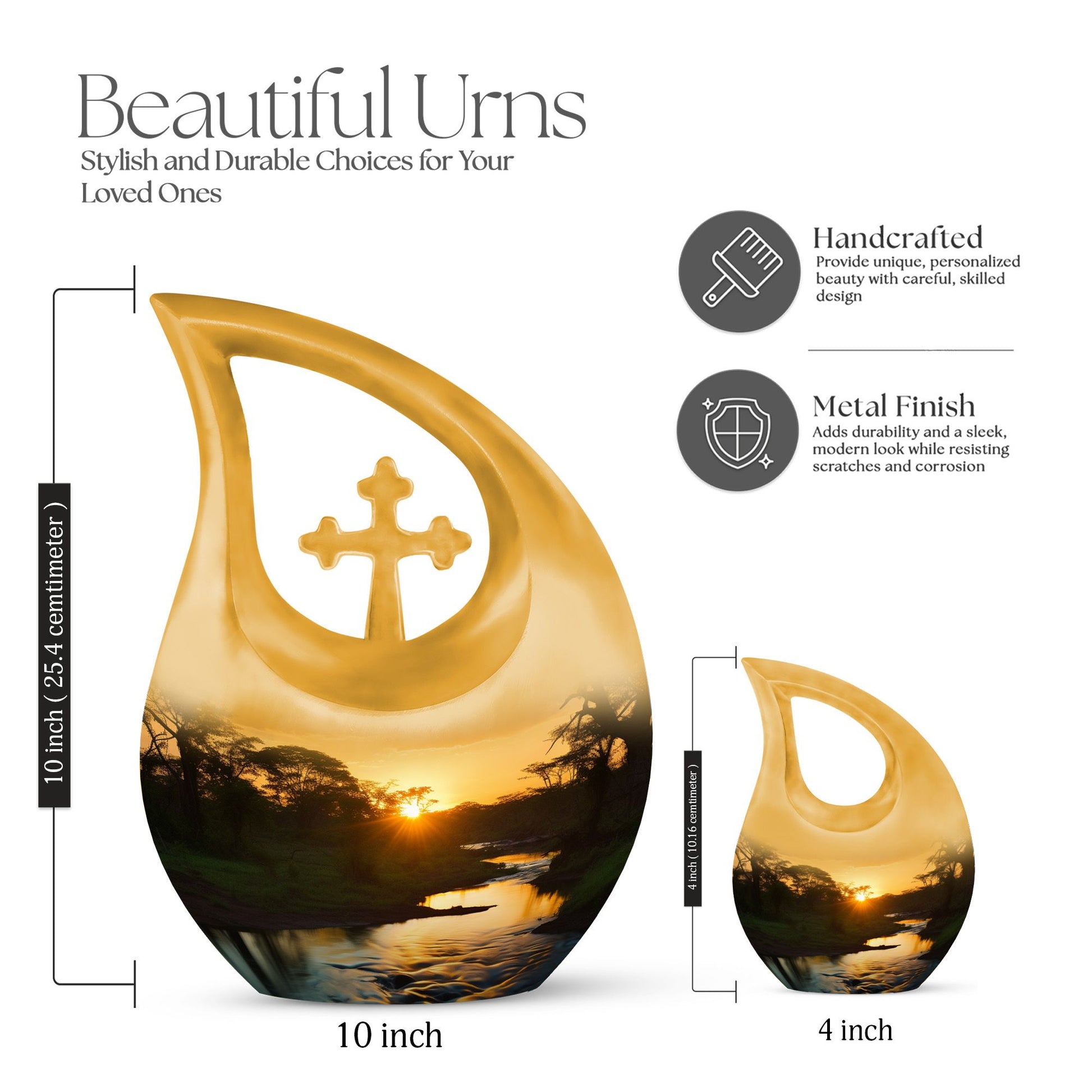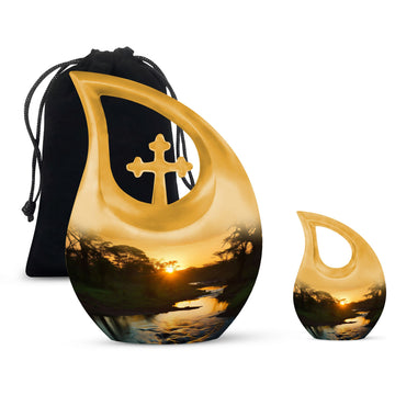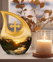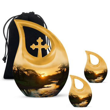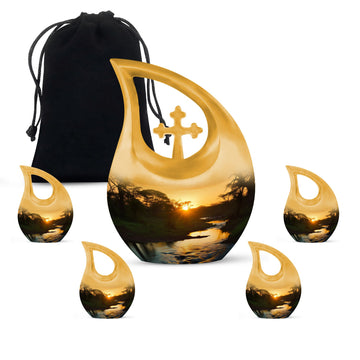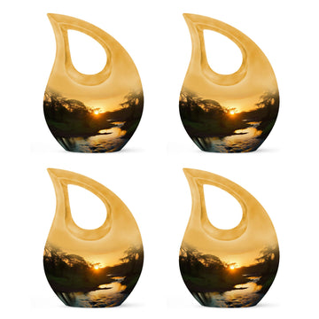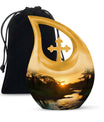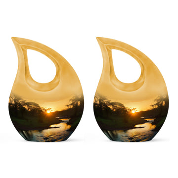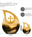 Families may also choose coordinating small cremation urns for human ashes adult or an urn cremation keepsake to share ashes among loved ones. Its soothing sunset theme offers comfort, making it a meaningful choice among cremation urns for human or traditional urns cremation.