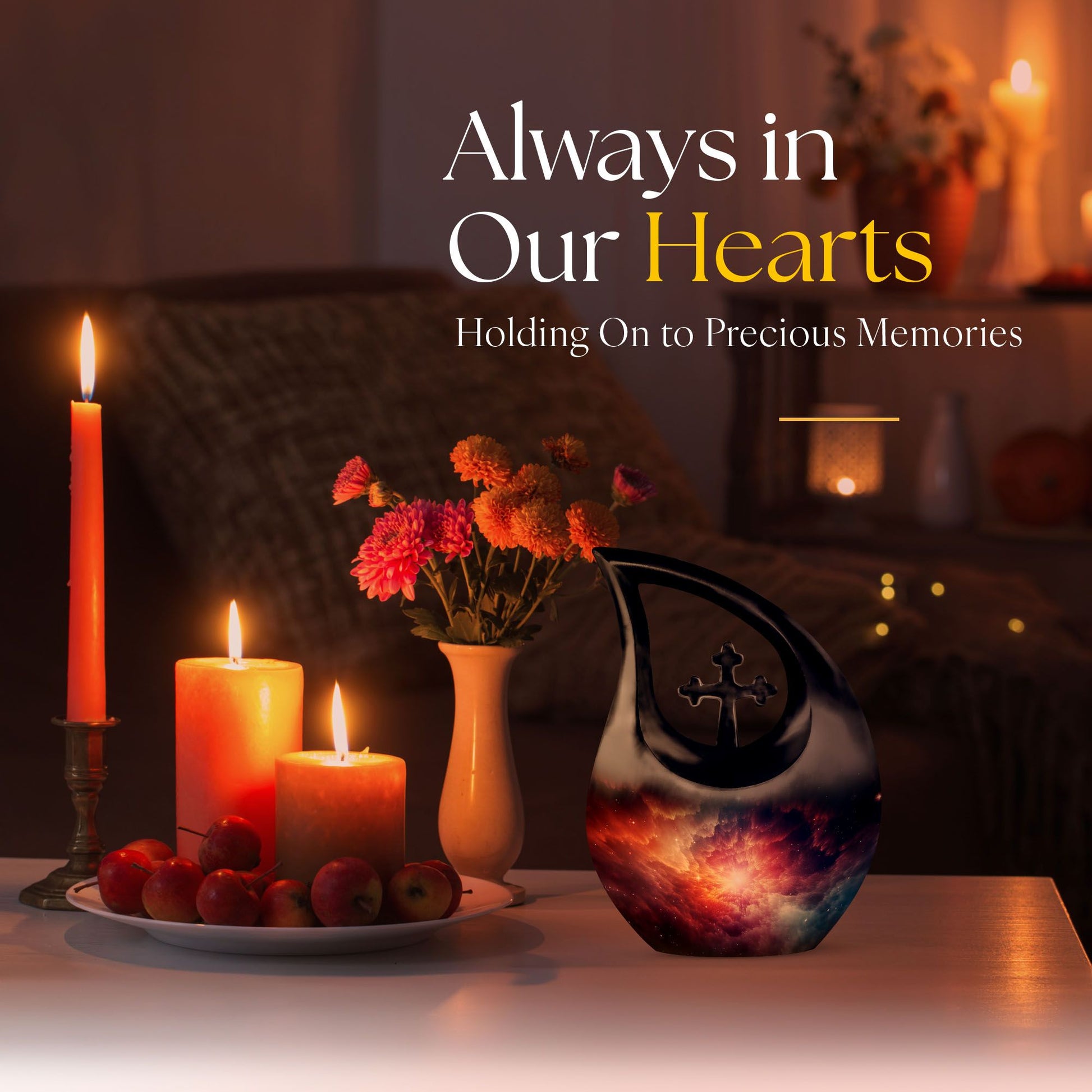 Let this large urn for human ashes symbolize infinite love—just as the stars shine forever, so will the memories of those we hold dear. Each of these adult large urns stands as a timeless tribute to a life beautifully lived.