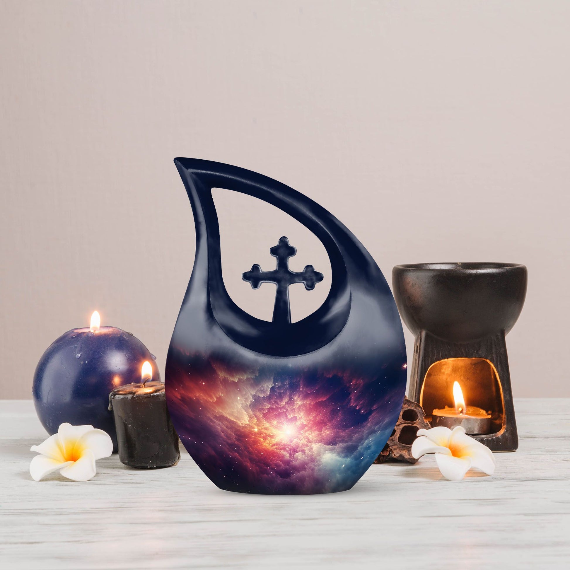 The Nebula Galaxy Remembrance Urn is a heartfelt tribute to those who have departed, capturing the vast beauty of the cosmos within its design. This elegant piece serves as a celestial resting place for your loved one’s ashes, symbolizing eternity, light, and peace. Crafted as a large urn for ashes adult male or large urn for ashes for women, it offers a dignified way to preserve precious memories.