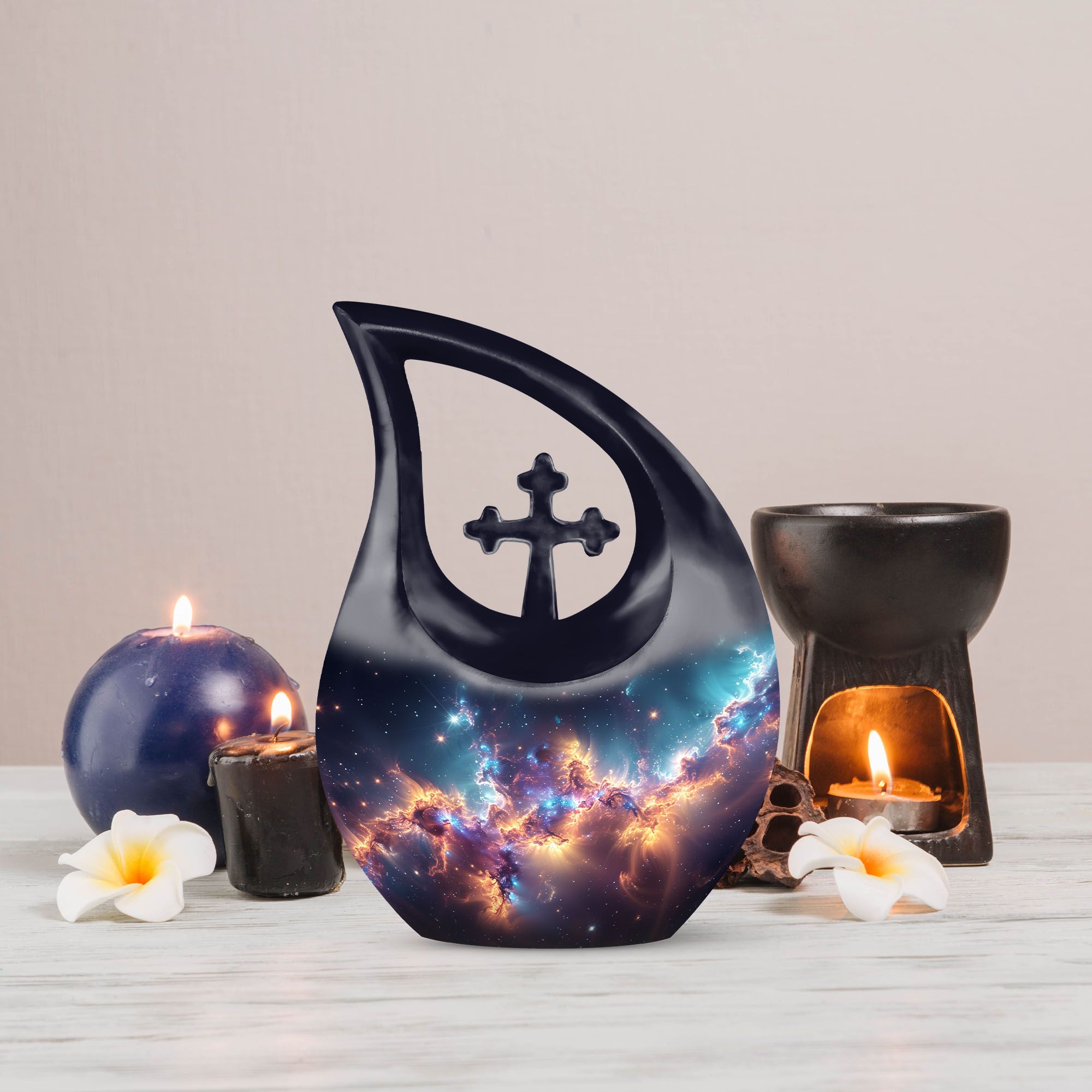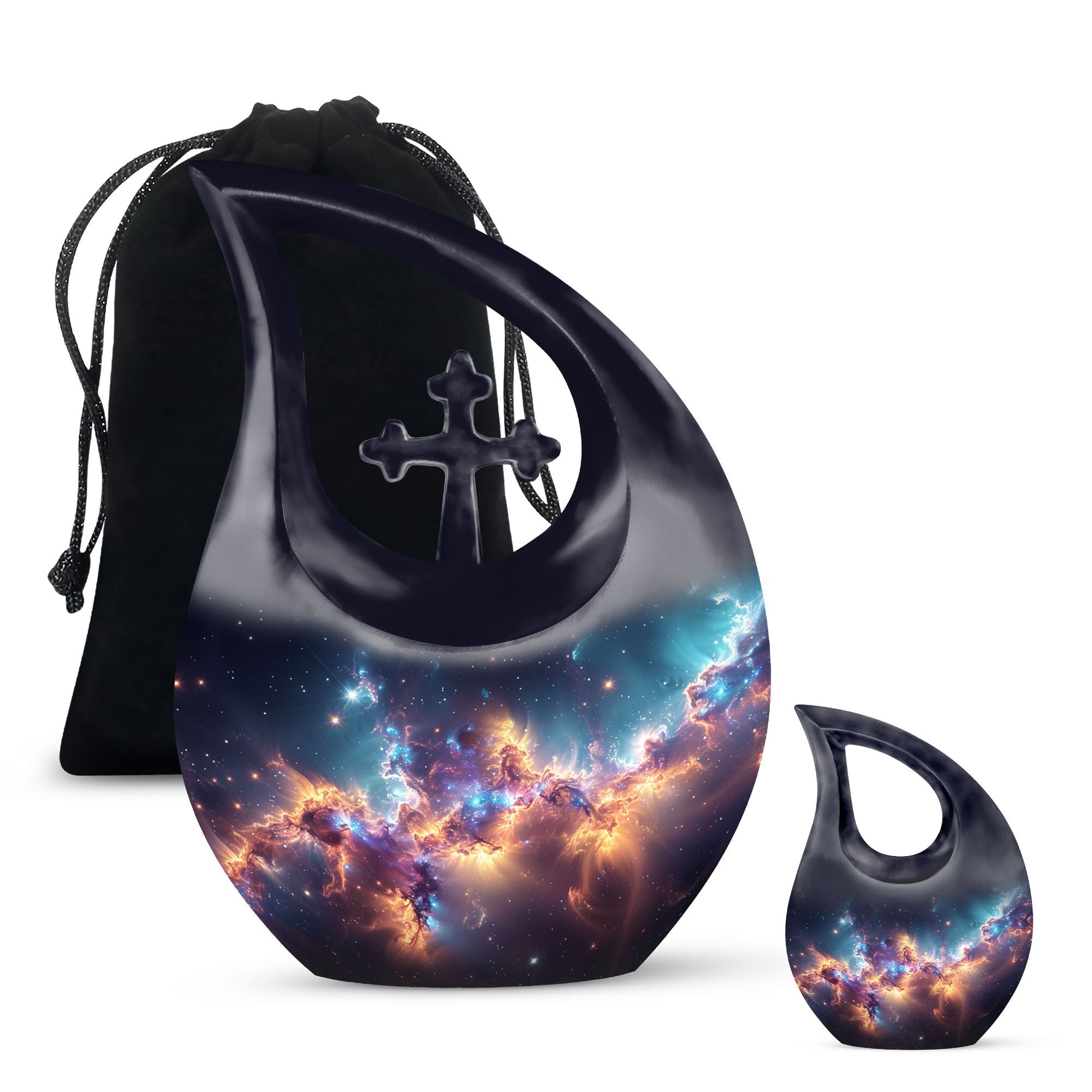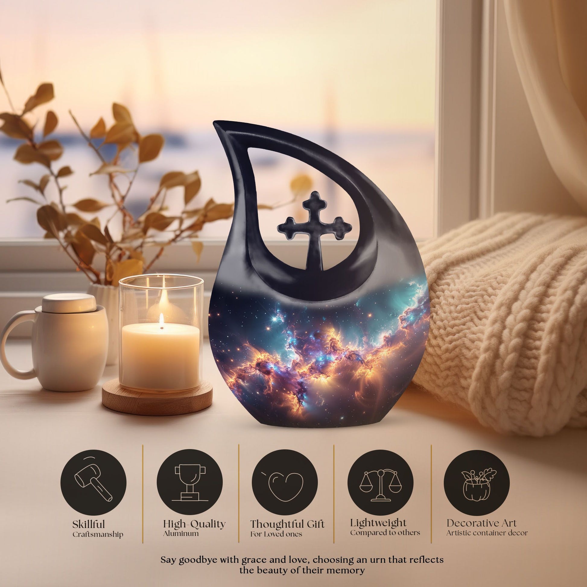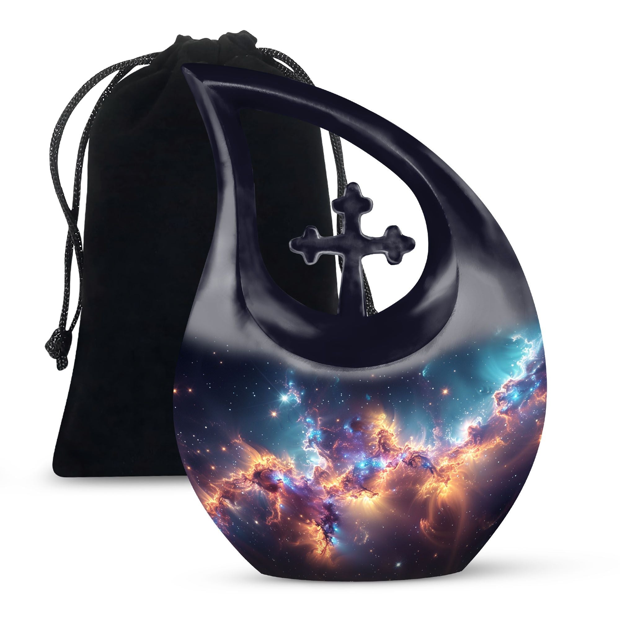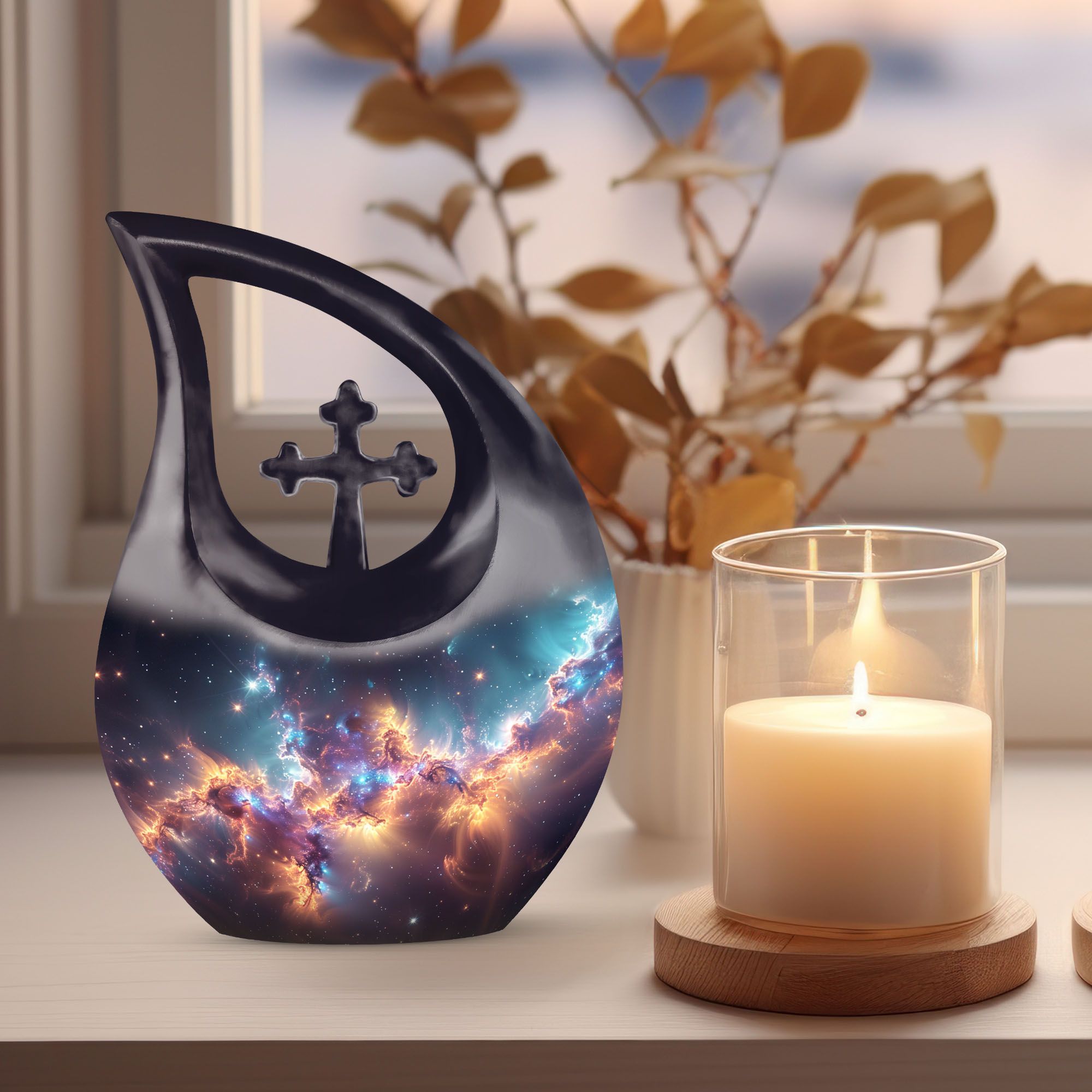 A celestial and heartfelt tribute, this Nebula Galaxy Burial Urn offers a beautiful way to honor the memory of a cherished loved one. Designed with swirling cosmic hues, it provides comfort for families seeking a cremation urn human ashes option, adult cremation urns, or a meaningful memorial for Mom, Dad, or any beloved adult.