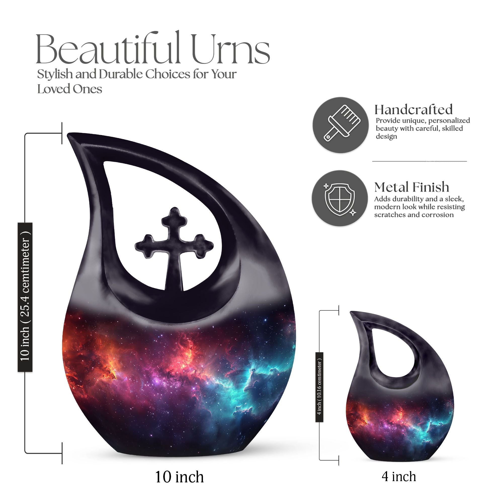 Handcrafted from durable aluminium, this 10-inch urn features a stunning galaxy-inspired finish, blending deep blues, purples, and cosmic shimmer. Its secure screw-top lid ensures dependable protection, making it ideal as a cremation urn for adults, cremation urn mom, or cremation urns for adult ashes. Families looking for urns for cremation ashes or cremation urns for ashes will appreciate its artistry and strength. It also pairs beautifully with small urns for cremation ashes, mini cremation urns, or cremation keepsake urns for human ashes adult when shared remembrance pieces are desired.