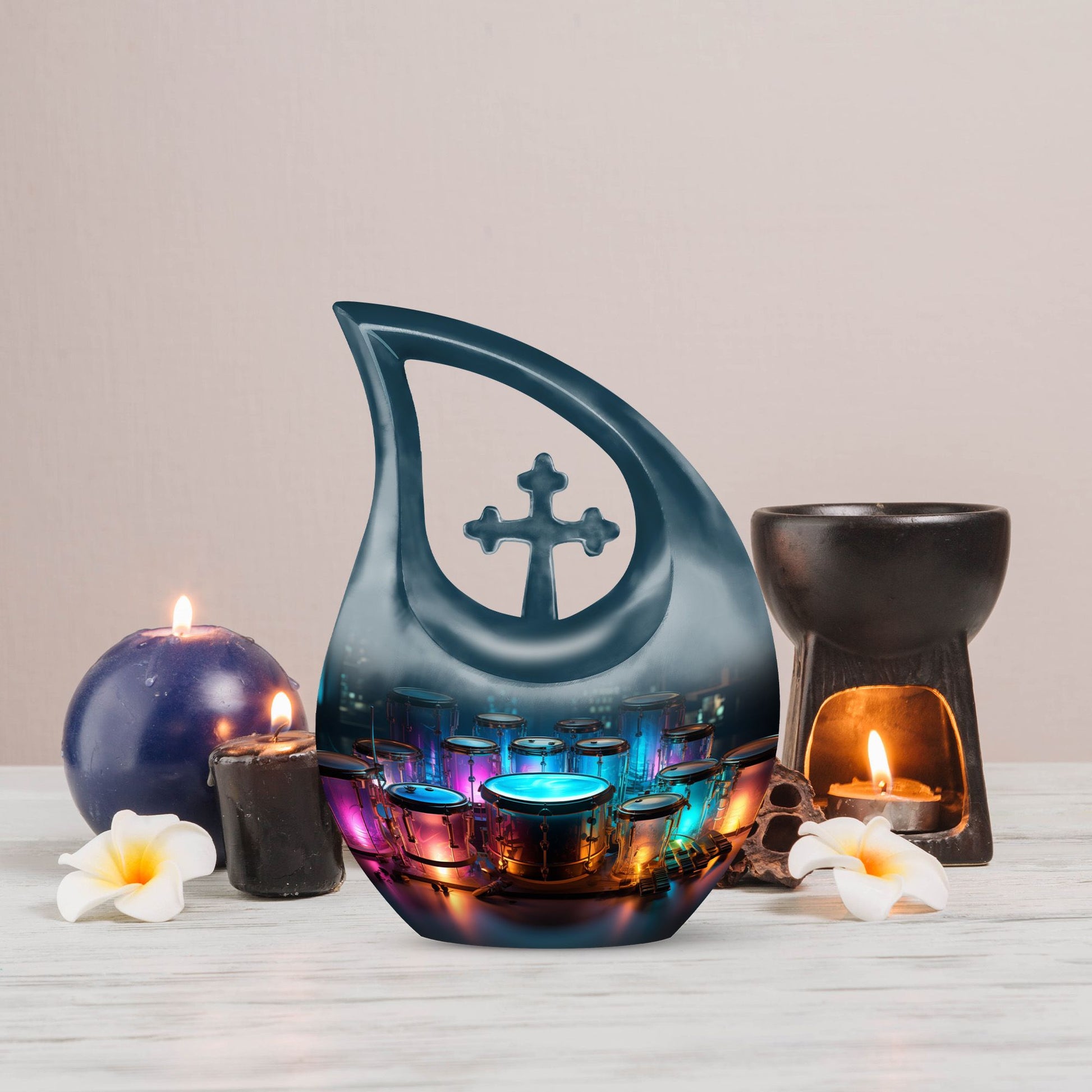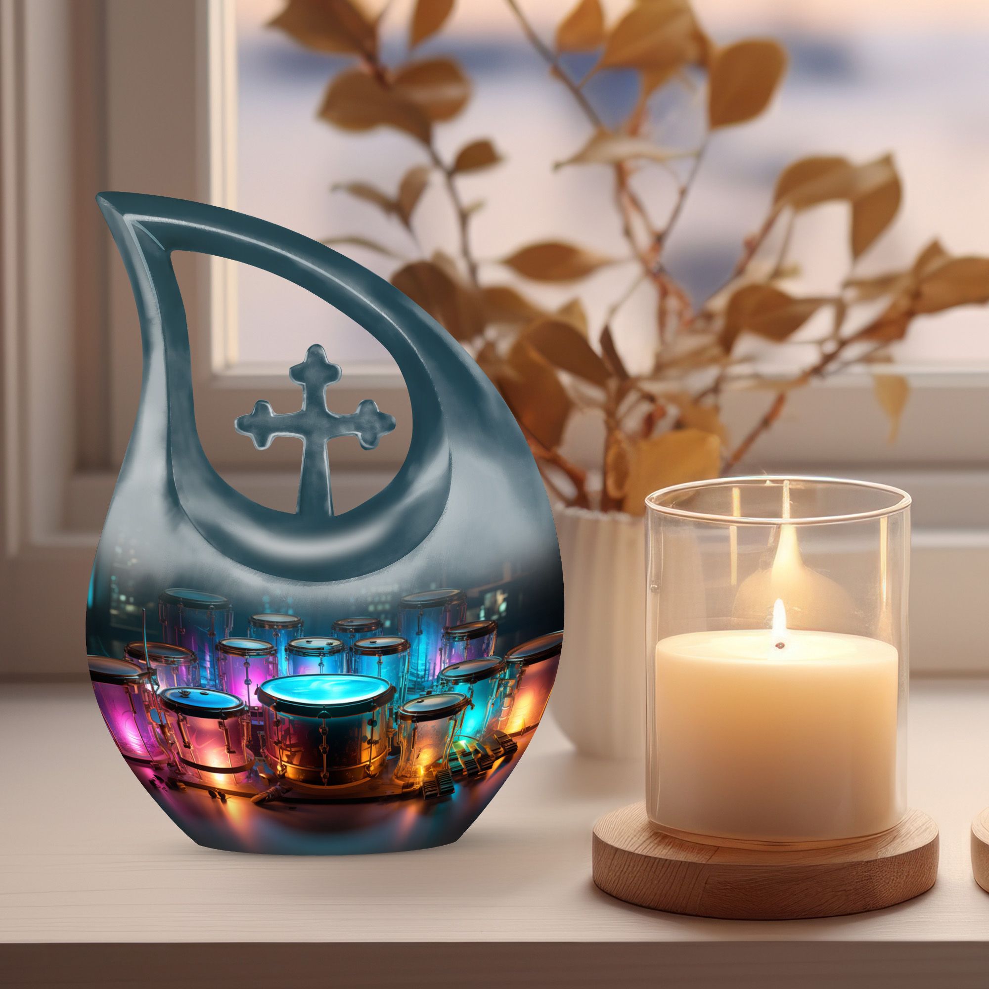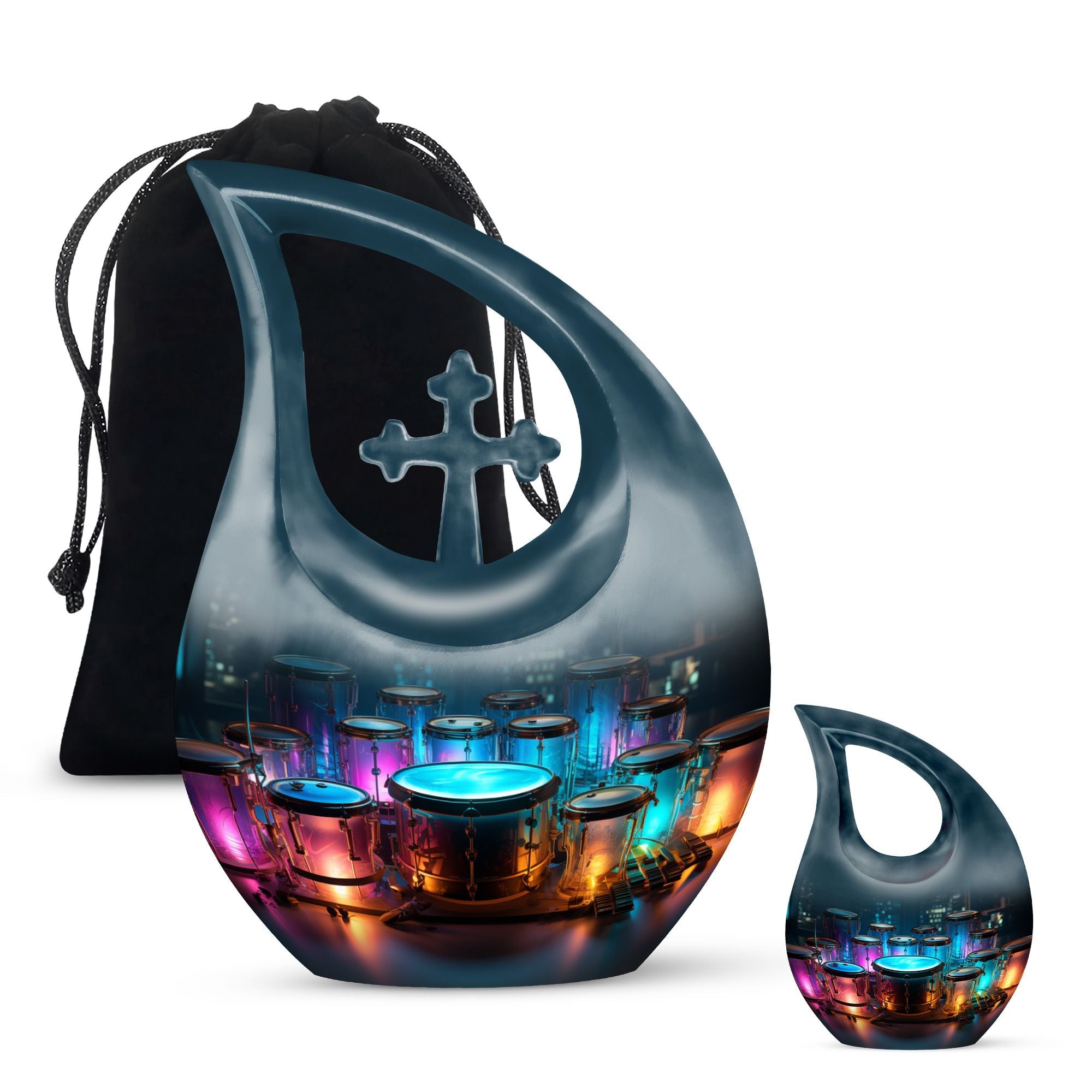 Crafted from durable aluminum, the 10-inch urn features a vibrant neon drum–themed artwork that symbolizes passion, movement, and the heartbeat of a life well lived. Its secure screw-top lid offers lasting protection while providing a meaningful memorial for families. For those wishing to share ashes, this urn pairs beautifully with mini urn set for ashes, decorative miniature urn options, mini urn for human ashes, mini urn for Mom ashes, urn keepsakes for ashes, human ashes keepsake designs, ash keepsakes for human ashes, memorial ashes keepsake pieces, keepsake for ashes, and keepsakes for ashes—allowing loved ones to hold a personal and intimate remembrance.