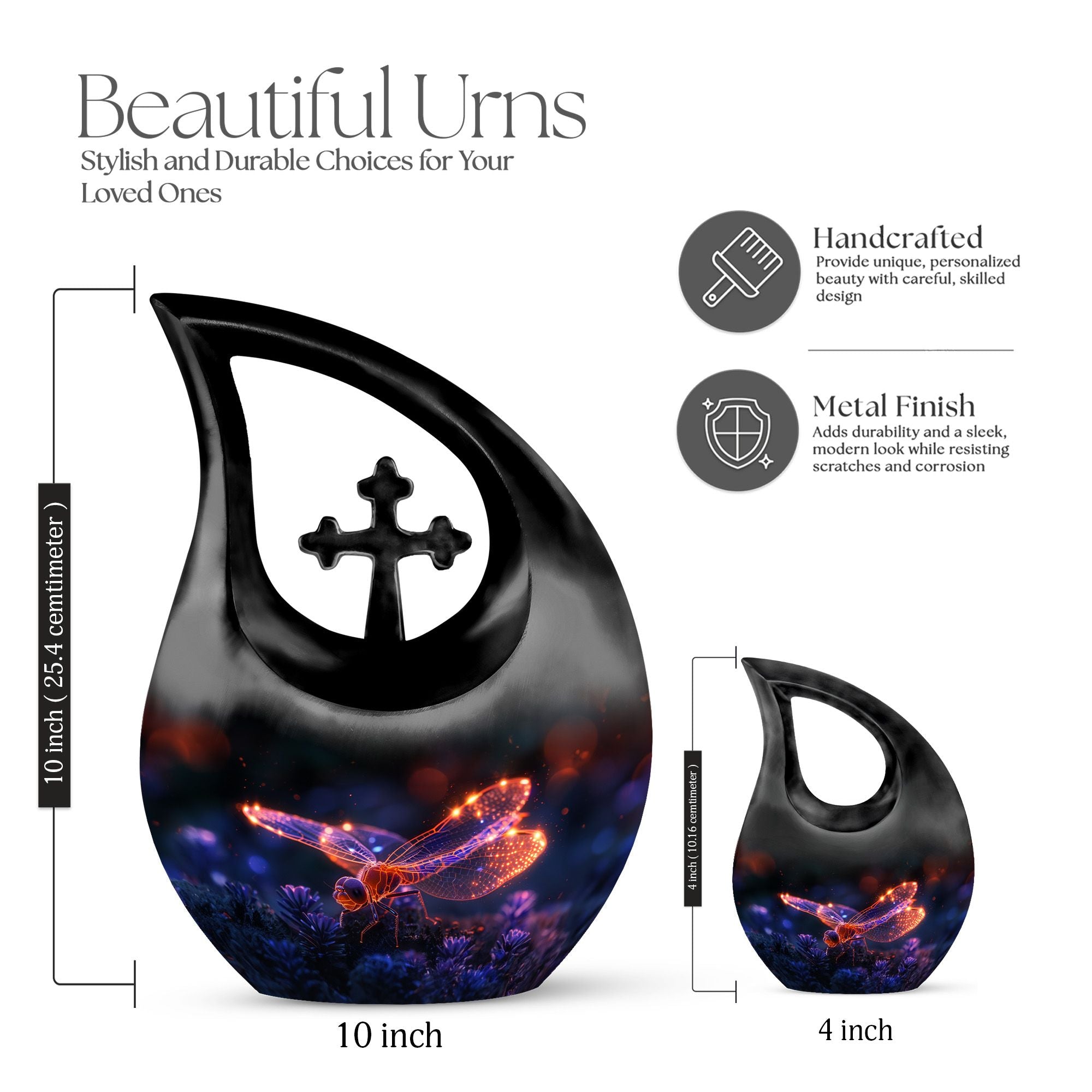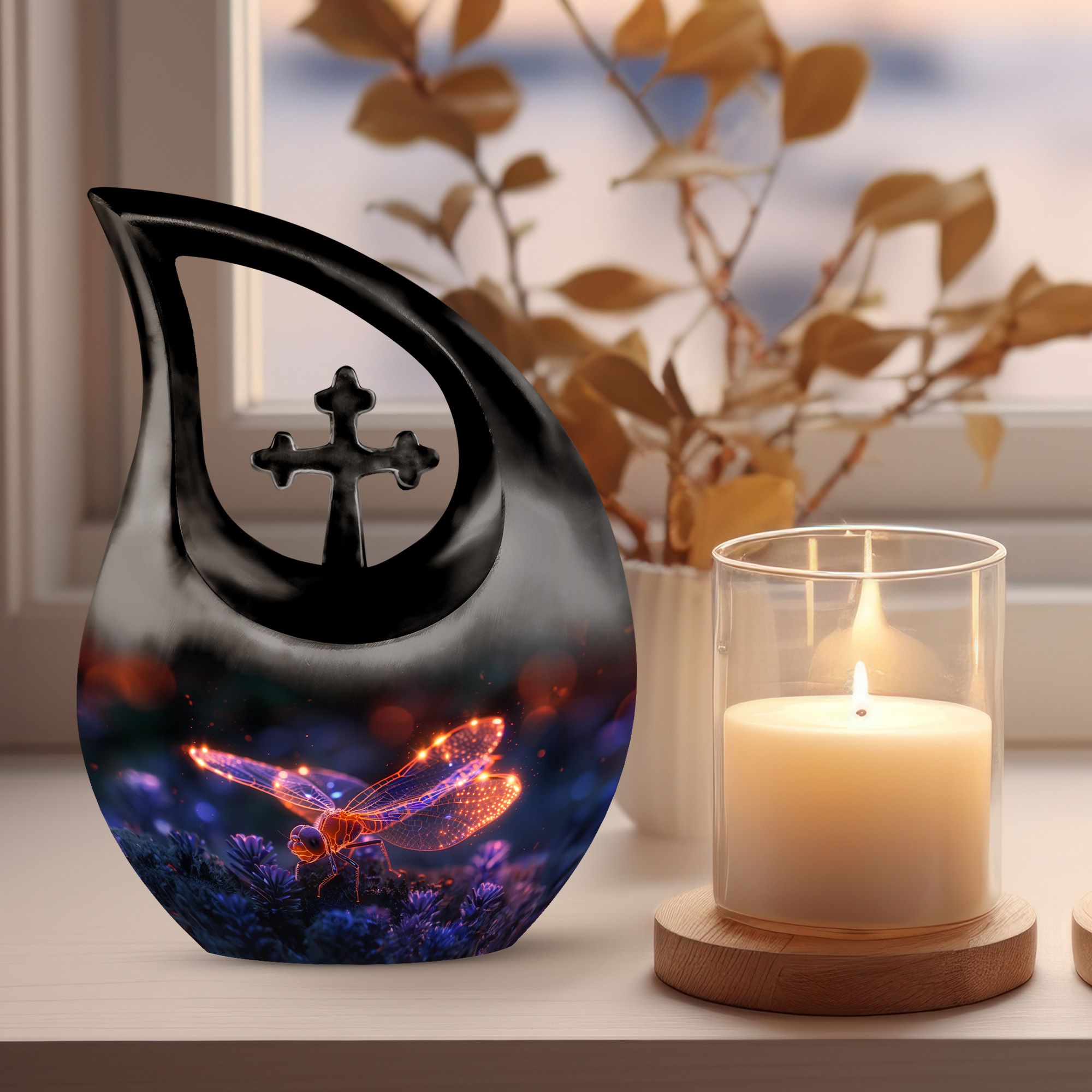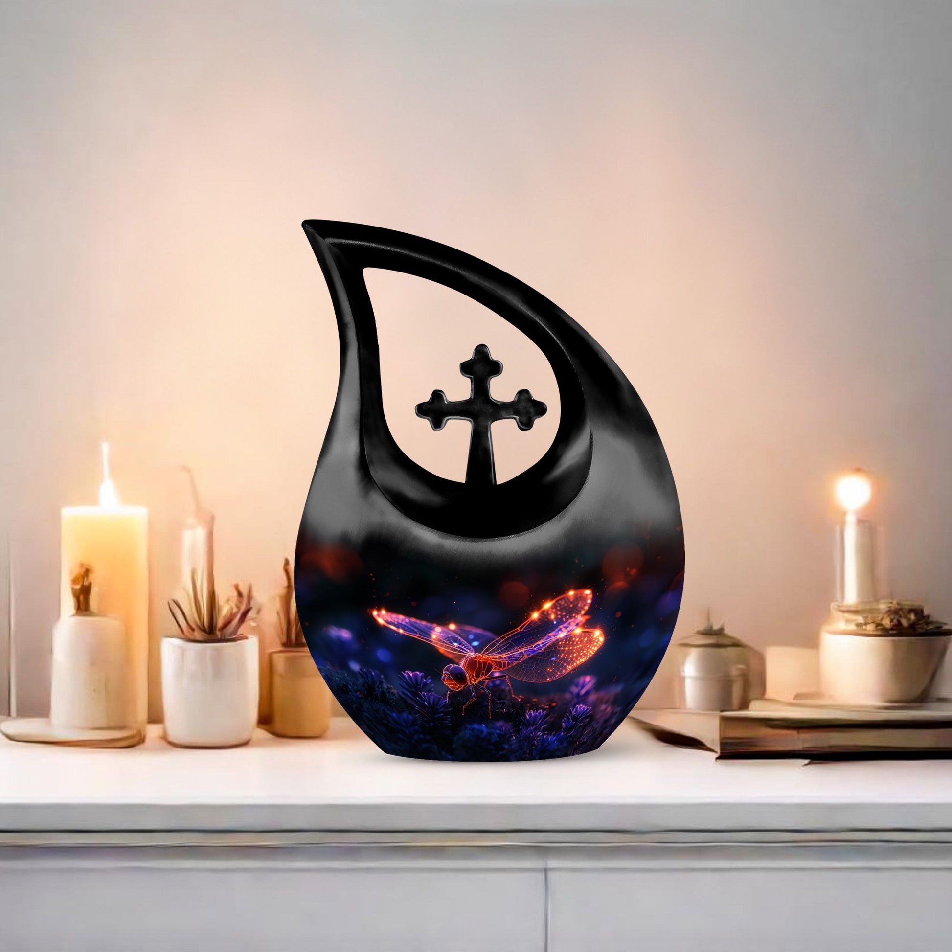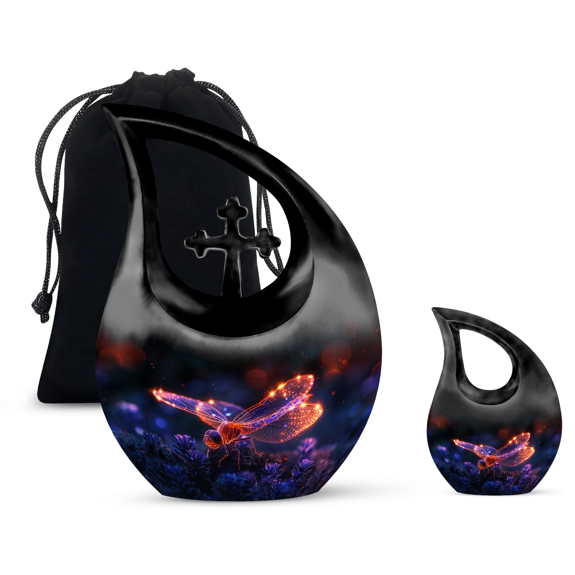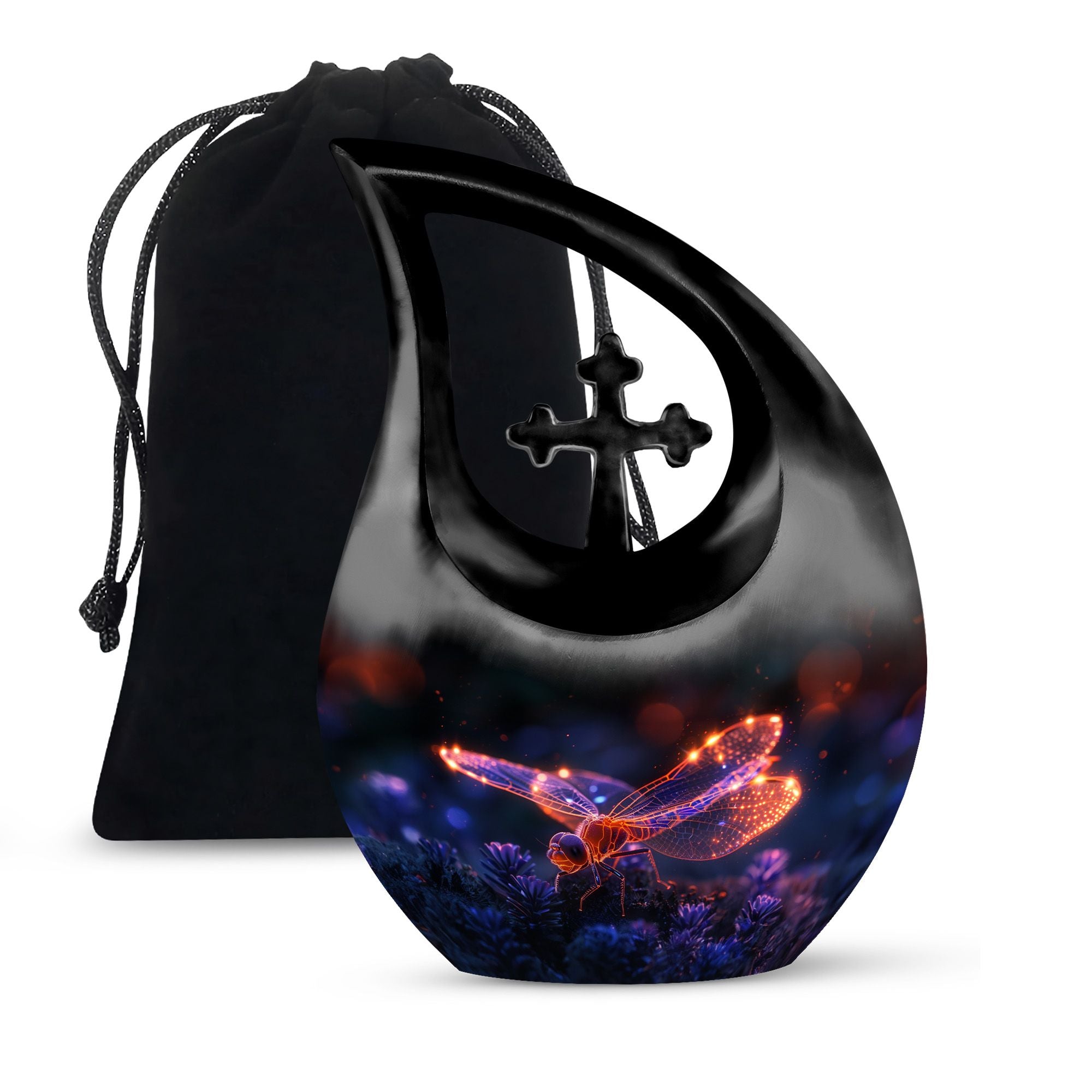 Immerse in the memory of your beloved ones with the elegant 'Neon Flight Insect Urn', a personalized, profound and respectful cradle for the ashes. This attractive 10-inch Aluminium Urn, weighing 3.3 pounds, with a capacity of 200 cubic inches, comfortably paves a restful abode for the remnants. The 'Cross Drop' theme signifies a symbolic journey, honoring the departed. Its substantial size makes it an ideal match for 'Large urns' or 'Double urns for ashes'. Customize it with engraved names, adding a personal touch to an eternal keepsake. Your purchase includes a soft velvet pouch for containment and conservation of the ashes. Commemorate the flight of your cherished ones in a loving, distinctive embrace. The Neon Flight Insect Urn is much more than a container; it's a testament to a life well-lived, a vessel that respects and reveres the departed, treasured for generations to come. Probe for 'Memorial urns' or 'Ashes keepsake', and our unique urns emerged as the epitome of remembrance.