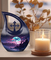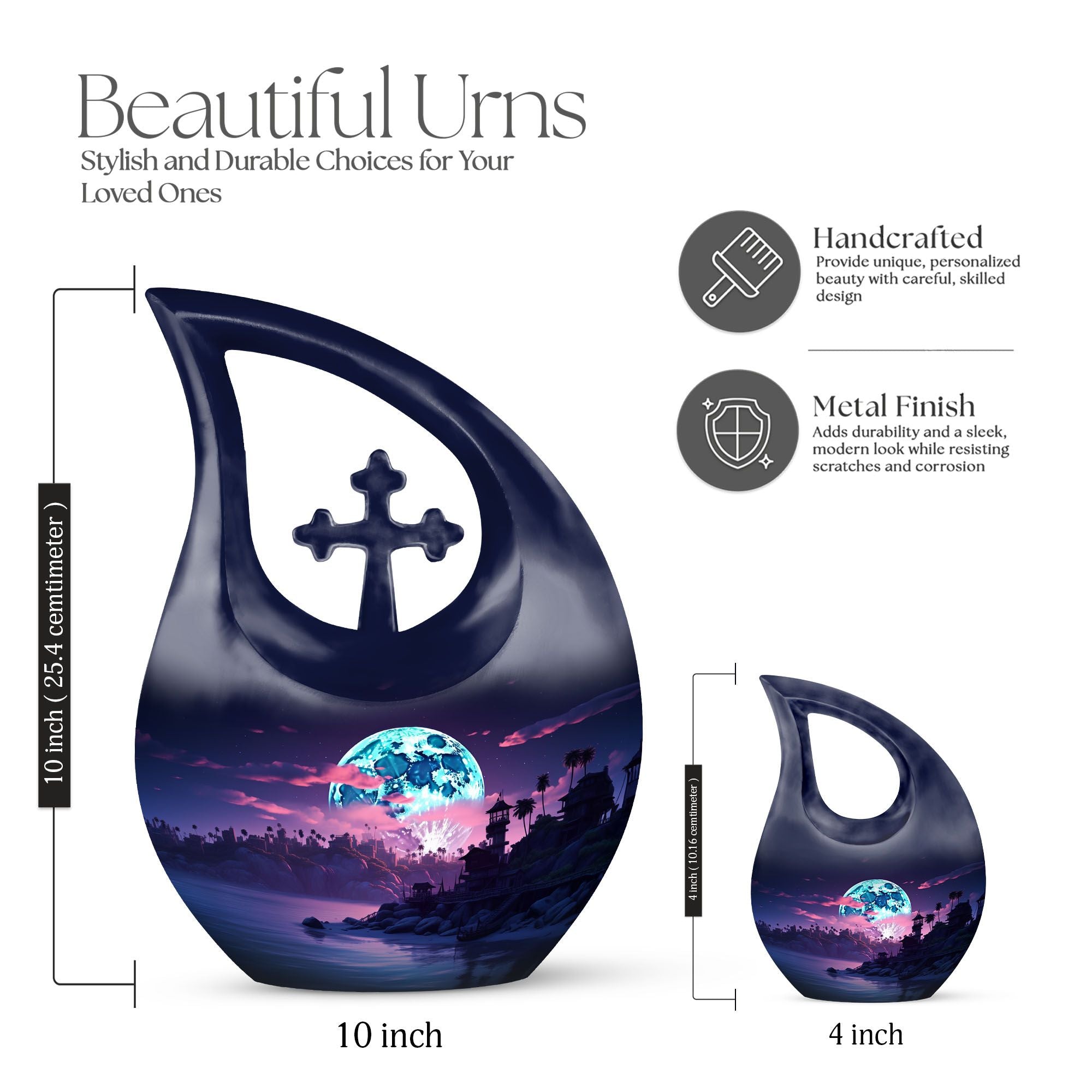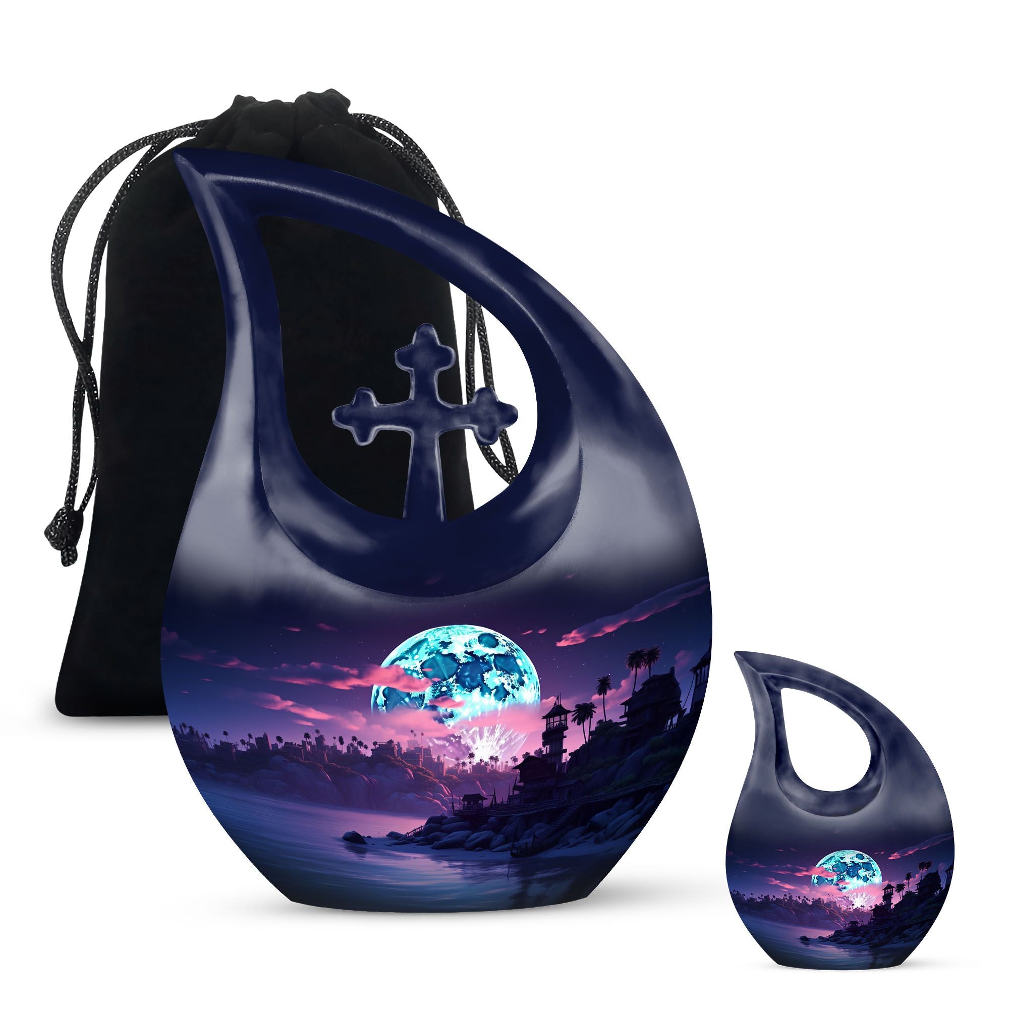 The Full Moon Memorial Urn for Ashes beautifully symbolizes eternal love and remembrance beneath the radiant glow of the moon. Designed for families seeking both comfort and elegance, this cremation urn for ashes reflects the peaceful passage of the soul and the light that continues to shine even after farewell. Its rich purple tones and luminous moonlit design evoke calm and spiritual strength, making it a touching tribute for any loved one.