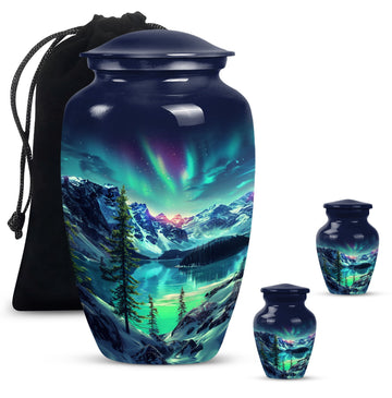 The Northern Lights Memorial Keepsake Urn captures the awe-inspiring beauty of the aurora, symbolizing peace and eternity. This radiant aurora borealis urn offers families a meaningful way to preserve memories, making it a dignified choice for honoring both men and women.