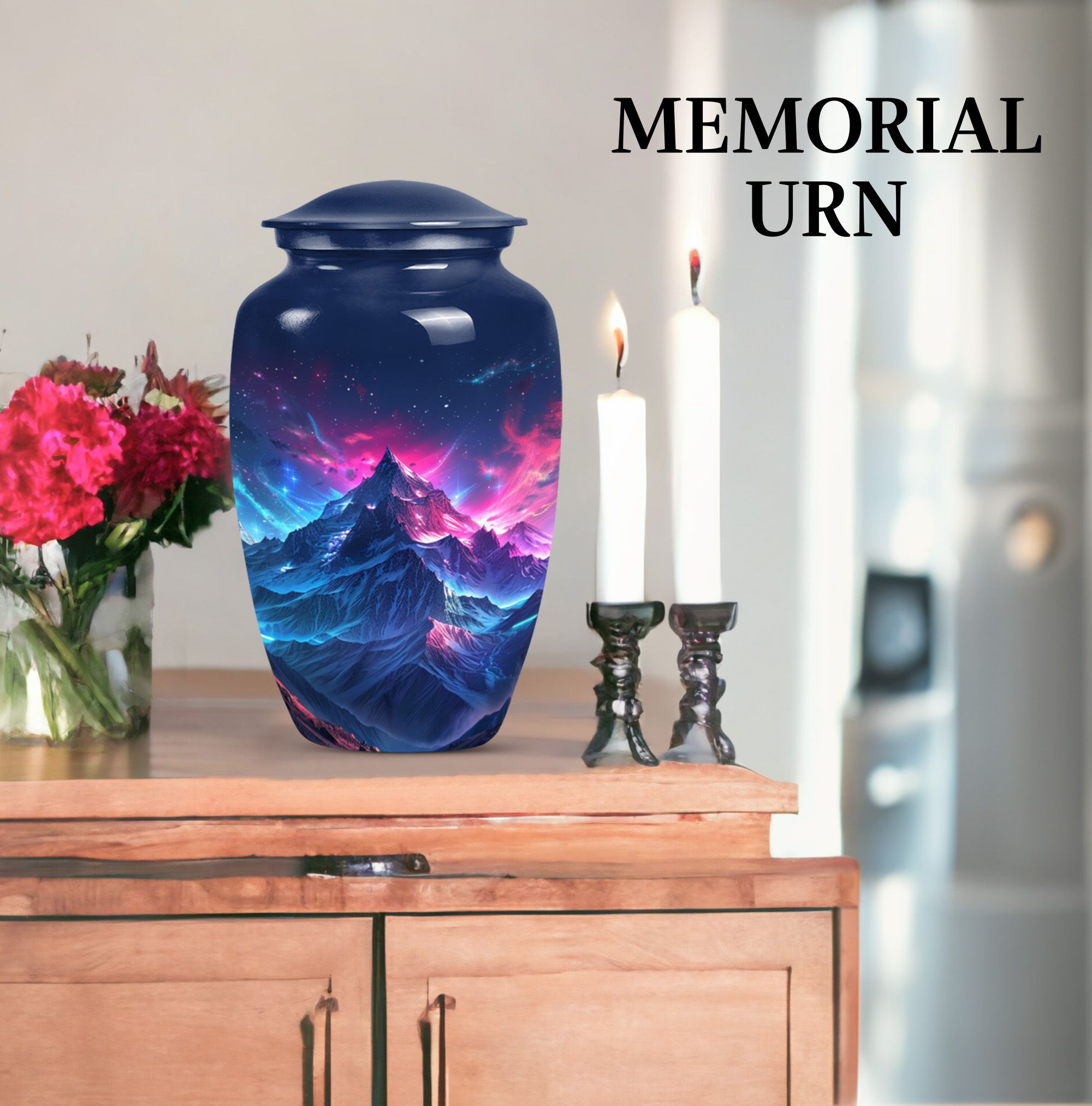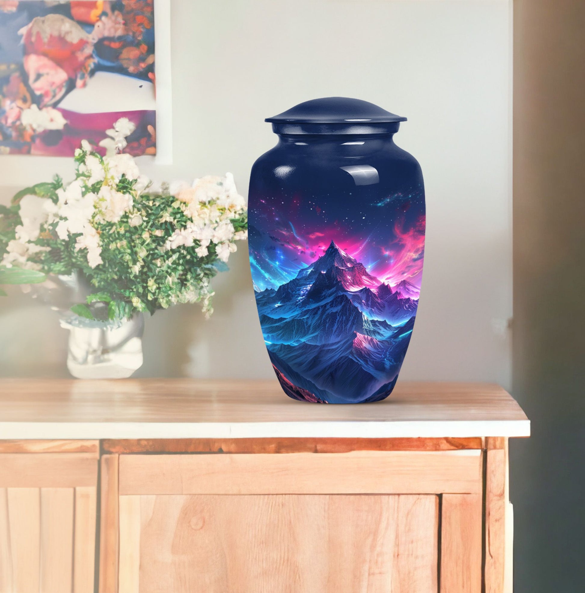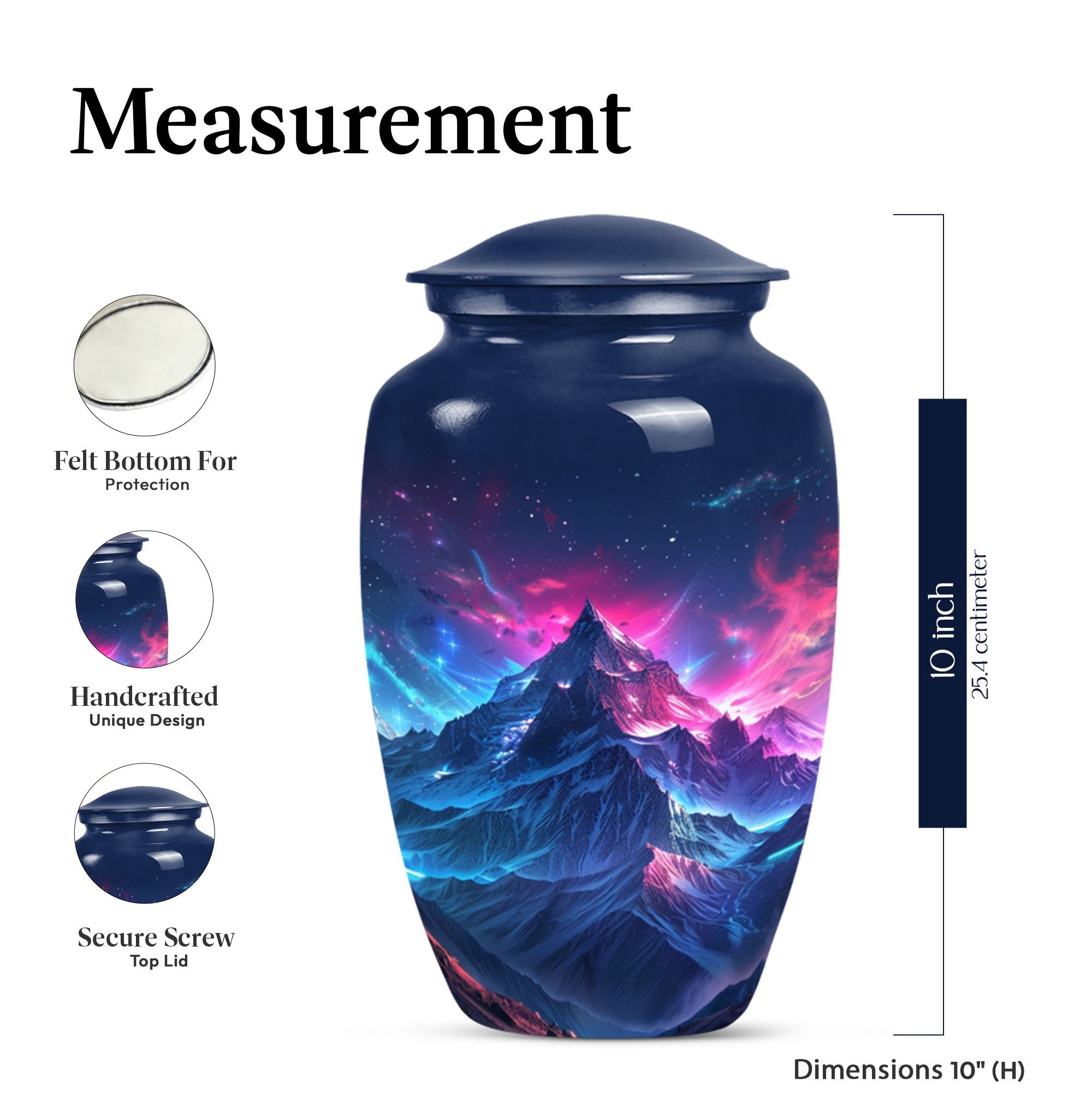 Immortalize the memory of a lost loved one with our 'Northern Lights' - a stunning cremation urn specifically designed large urn for male. Made from the highest-quality aluminium, this urn stands at 10 inches in height and has a profound capacity of 200 cubic inches, perfect for preserving their cherished remnants. The urn, with a tasteful Butterfly theme, weighs a proud 3.3 pounds, signifying its superior quality and resilience. We know that every individual is unique, this is why we offer customization - so you can personalize the urn with engraved names, truly reflecting the personality and the spirit of the departed. In the package, we include a soft velvet pouch for containment of ashes, further ensuring preservation and respect for the treasured remains. Owing to its classic theme and design, it can elegantly fit into any setting. Note the keywords such as 'funeral ashes urns', 'Large Cremation Urns for Men' and 'metal urn for ashes adult male' may help you find this product with ease. Experience a new paradigm in memorial ceremony supplies with our 'Northern Lights' cremation urn.