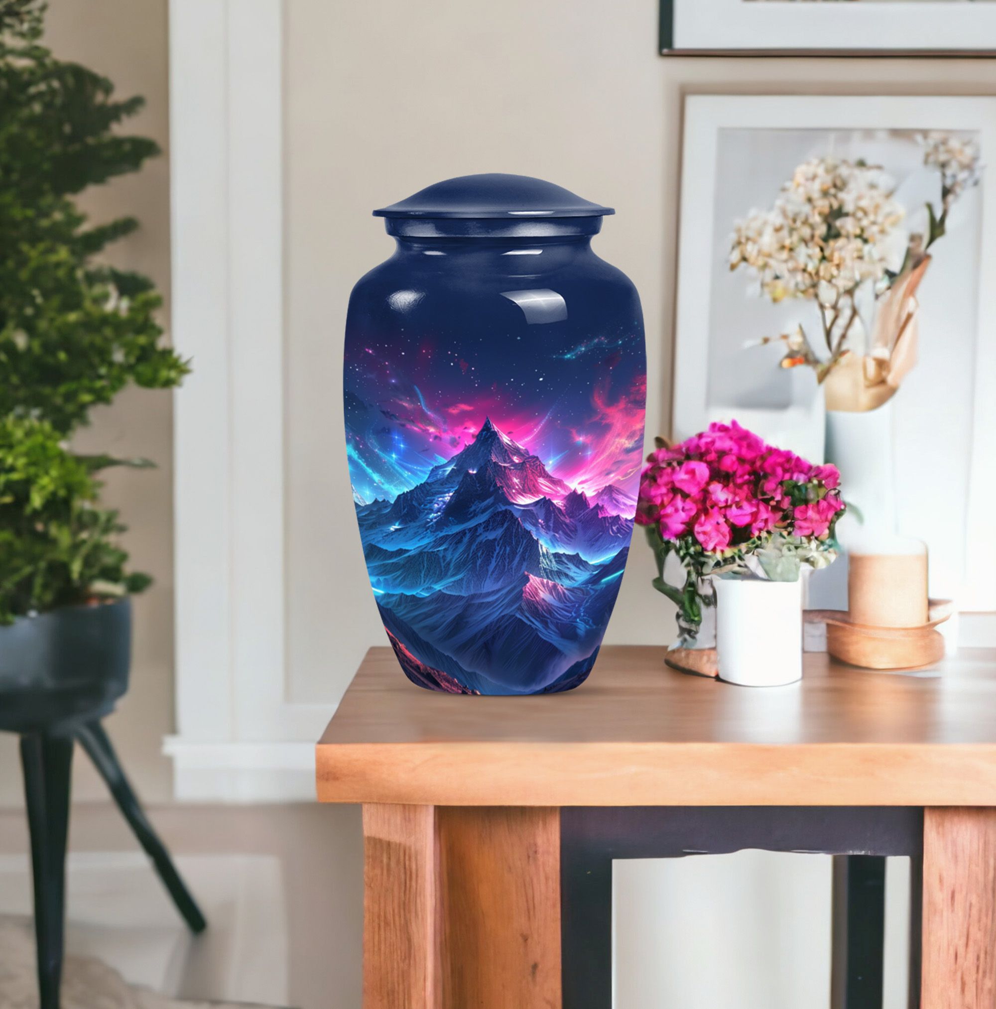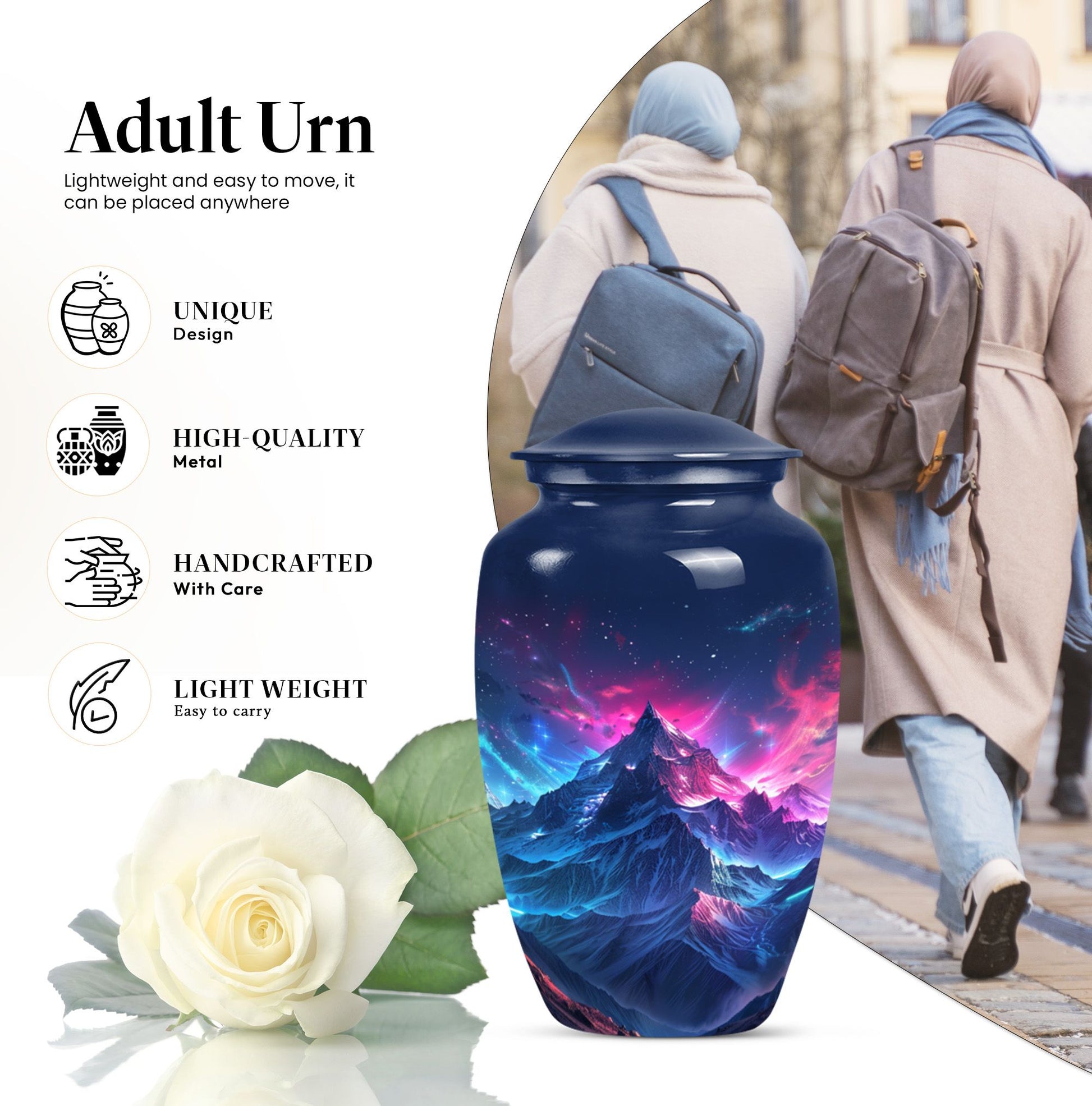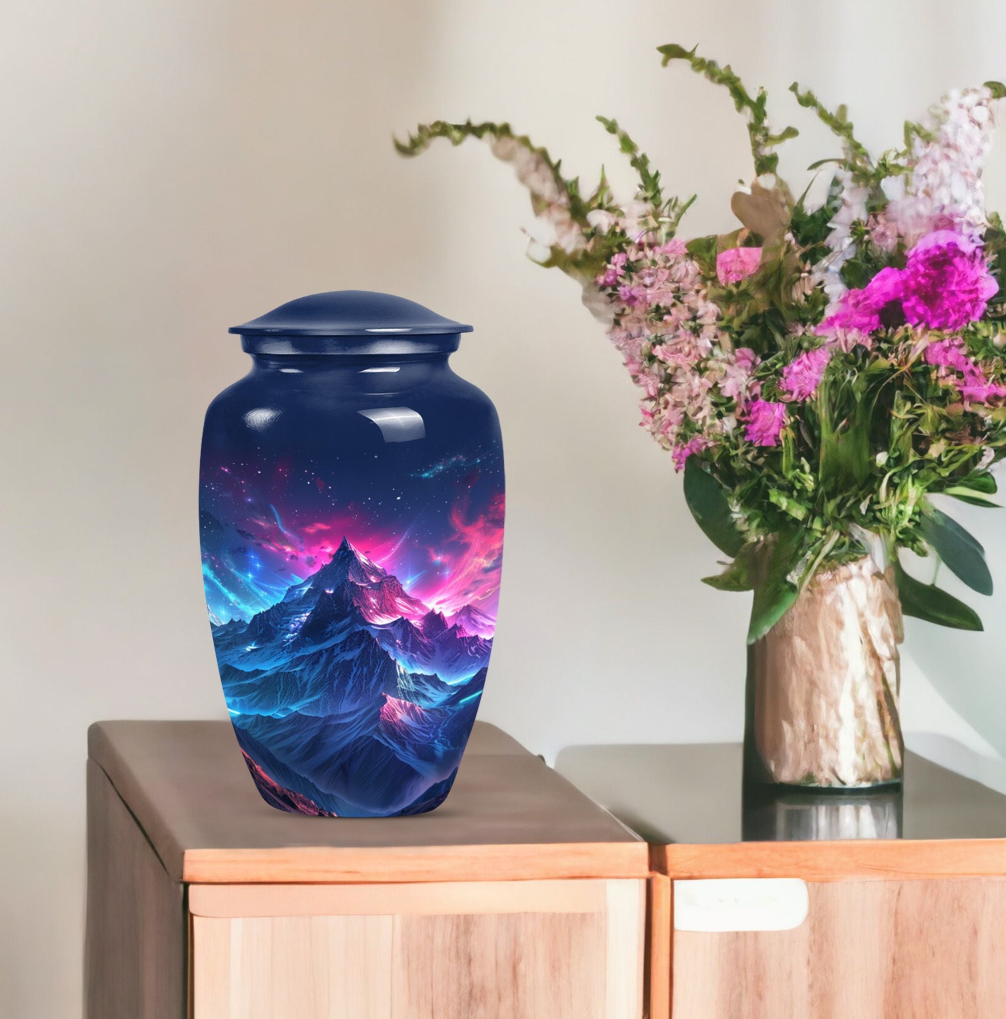 Immortalize the memory of a lost loved one with our 'Northern Lights' - a stunning cremation urn specifically designed large urn for male. Made from the highest-quality aluminium, this urn stands at 10 inches in height and has a profound capacity of 200 cubic inches, perfect for preserving their cherished remnants. The urn, with a tasteful Butterfly theme, weighs a proud 3.3 pounds, signifying its superior quality and resilience. We know that every individual is unique, this is why we offer customization - so you can personalize the urn with engraved names, truly reflecting the personality and the spirit of the departed. In the package, we include a soft velvet pouch for containment of ashes, further ensuring preservation and respect for the treasured remains. Owing to its classic theme and design, it can elegantly fit into any setting. Note the keywords such as 'funeral ashes urns', 'Large Cremation Urns for Men' and 'metal urn for ashes adult male' may help you find this product with ease. Experience a new paradigm in memorial ceremony supplies with our 'Northern Lights' cremation urn.