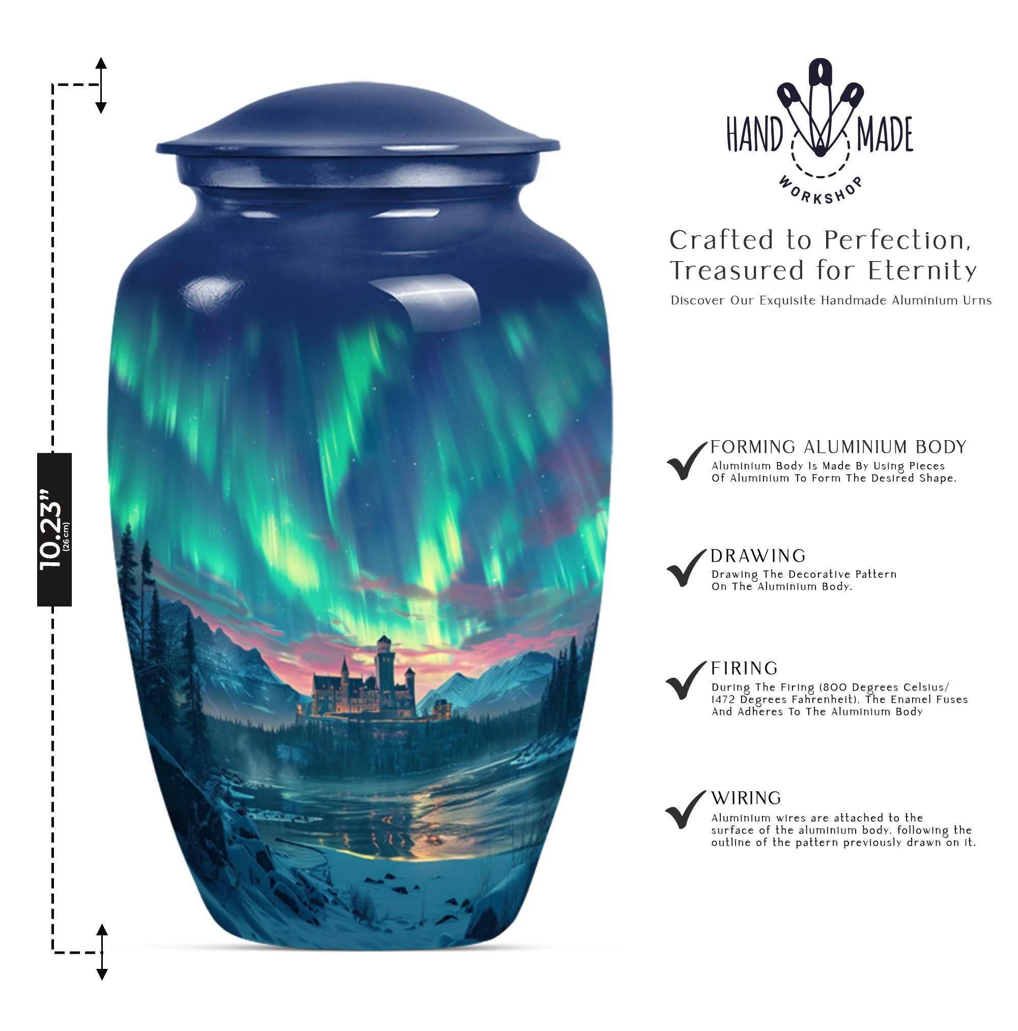 The Northern Lights Classic Cremation Urn offers a timeless way to honor the memory of your loved one. Designed with compassion and dignity, this urn provides a beautiful final resting place for urn ashes adult male or urn ash adult female, ensuring their legacy is preserved with grace and love. Families searching for large urns for female & male will find this design both comforting and meaningful.