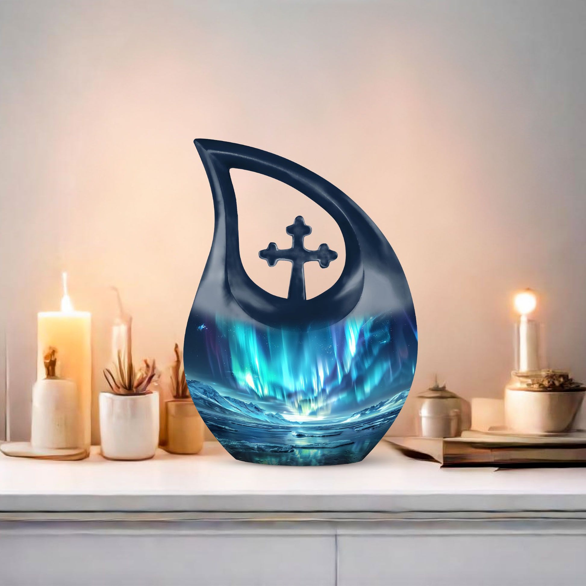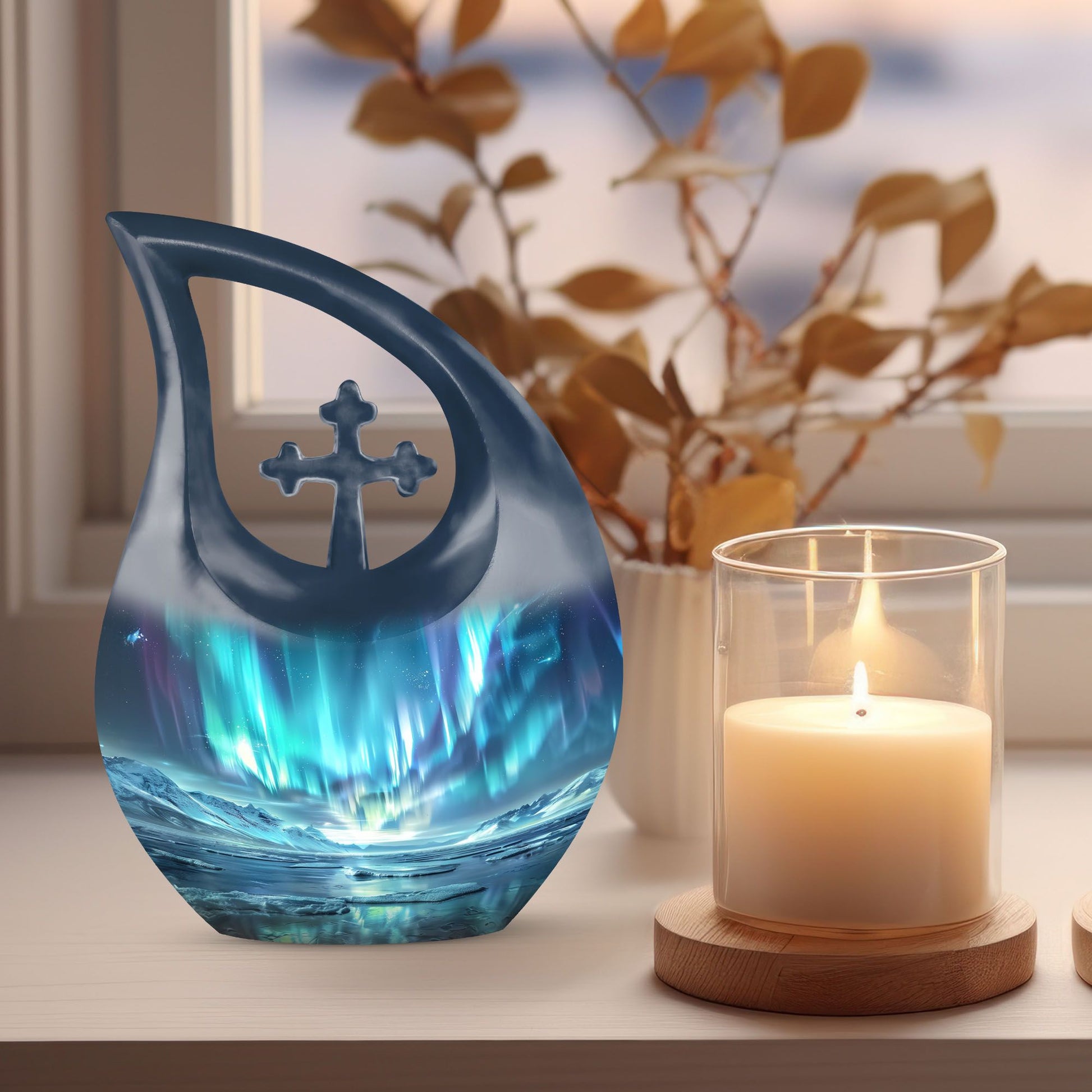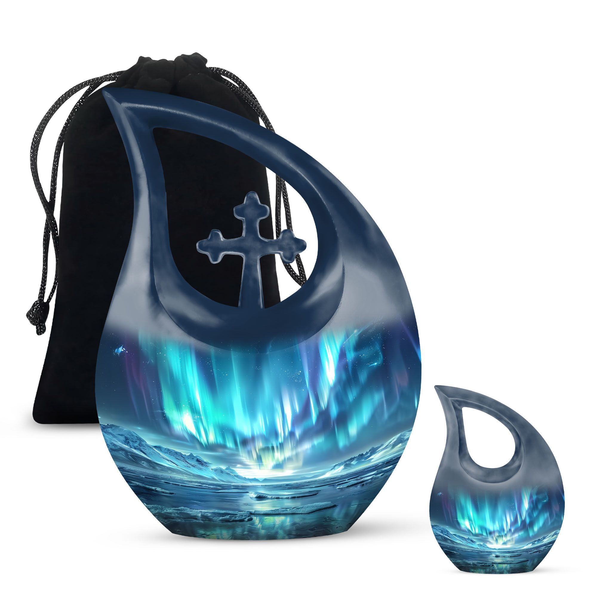 The Northern Lights Memorial Urn – Aurora Borealis Urn Combo Set for Women is a breathtaking tribute inspired by the tranquil dance of the northern skies. This large funeral urn embodies grace, light, and everlasting remembrance — a perfect resting place that honors a loved one’s spirit with celestial beauty.