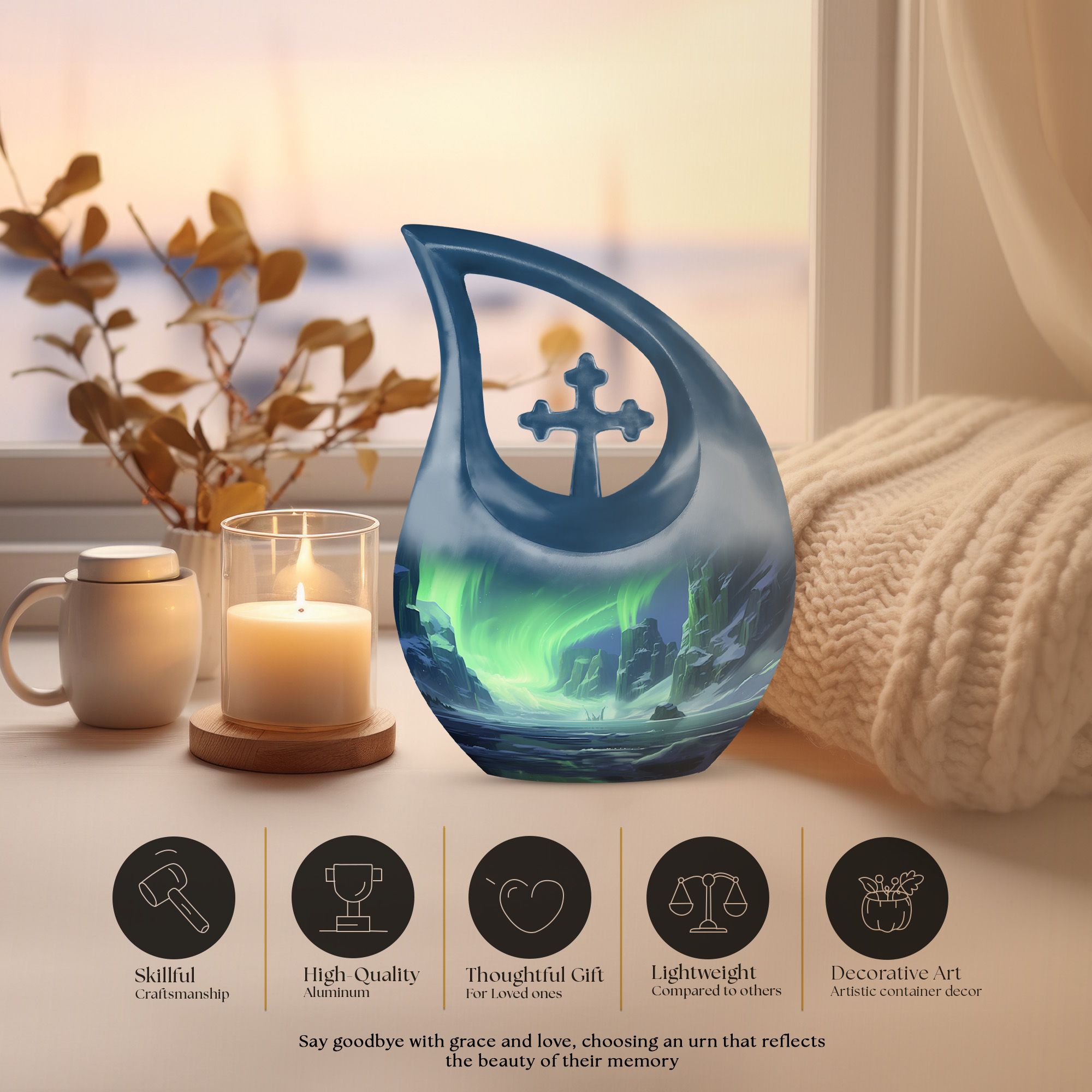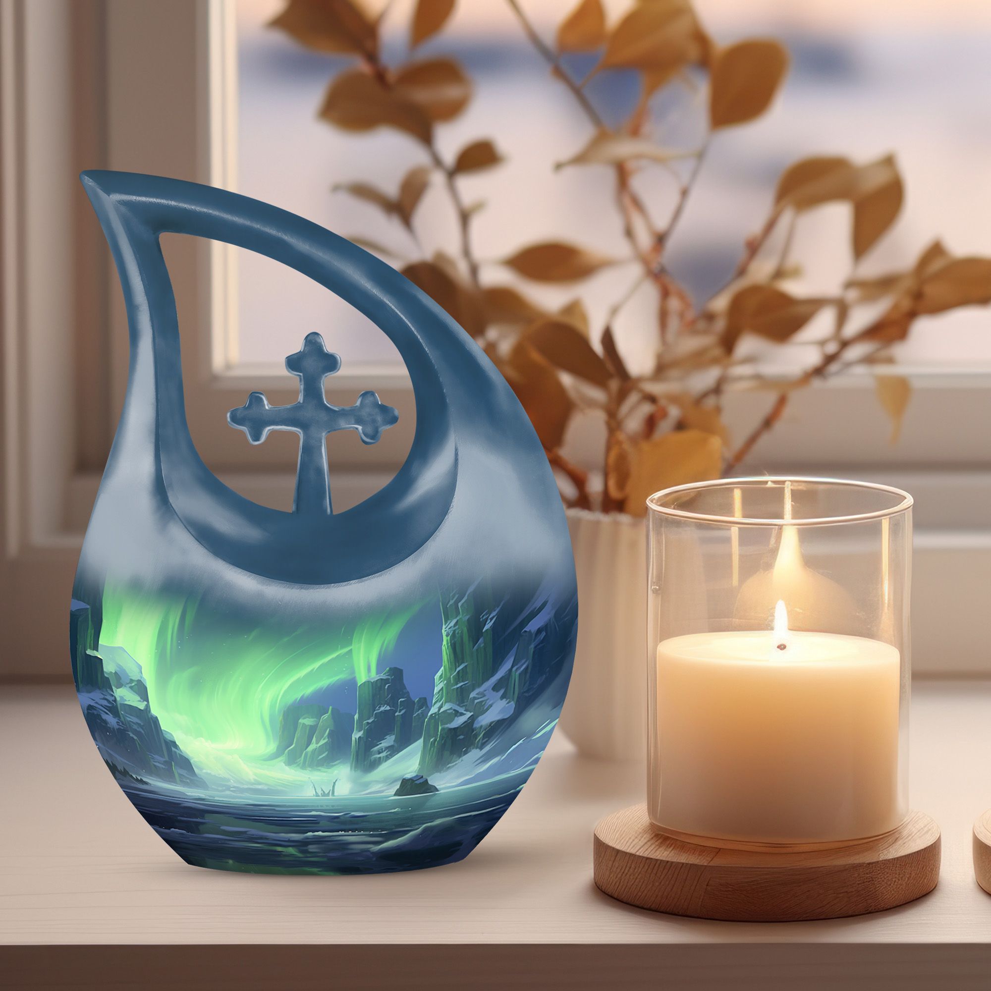Let this urn for women ashes serve as a symbol of love that shines as bright as the Northern Lights themselves—an eternal tribute to a life that continues to inspire and illuminate the hearts of those left behind.