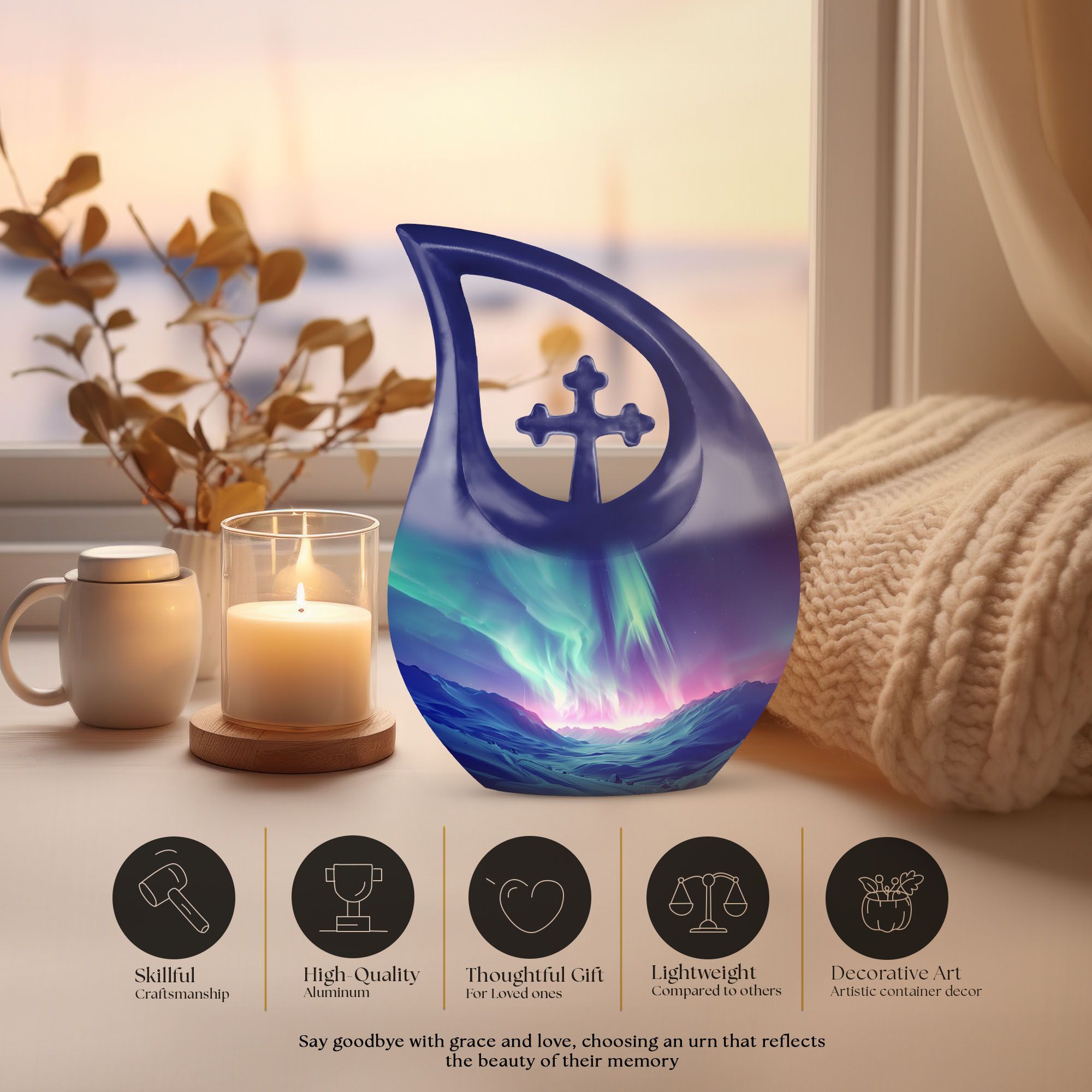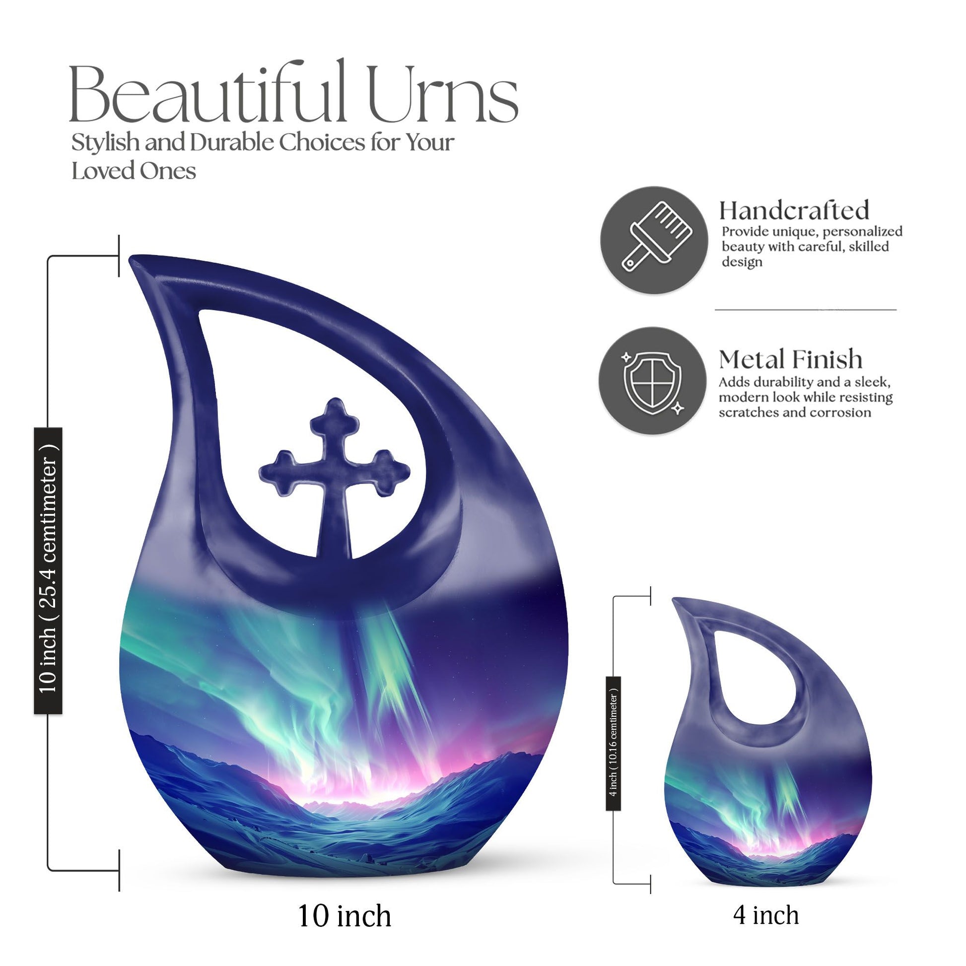 This Northern Lights Funeral Urn for Human Ashes brings celestial beauty and comforting symbolism to your remembrance space. Inspired by the gentle glow of the aurora, it offers a peaceful resting place for your loved one—ideal for families seeking a meaningful cremation memorial that brings both solace and light.
