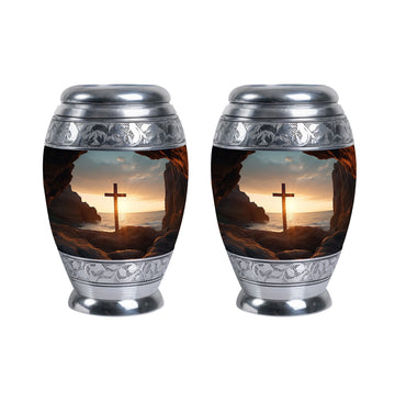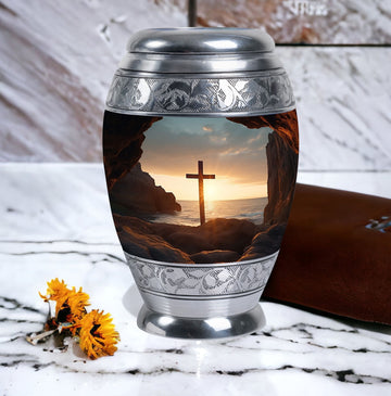 Honor your loved ones with our captivating Ocean Jesus Cross Urns for Human Ashes. This 3-inch, large urn, weighing 3.3 pounds with a capacity of 200 cubic inches, has been meticulously crafted to offer a poignant memorial. Each urn is made from high-quality aluminum, ensuring long-lasting and durable construction that beautifully transcends time. At 10 inches in height, this classic urn conveys reverence and respect, subtly highlighting the depth of your love. It also includes a velvet pouch for secure containment of ashes, adding a further layer of protection. Our urn can be personalized with engraved names, providing a heartfelt touch that accentuates this tribute to eternity. Perfect for adults or seniors wanting a unique and meaningful memorial, this urn is one of the most exquisite cremation urns available. Ideal for those in search of 'Customized Urns for Ashes for Adults', 'Human Urns', or 'Large Urns for Human Ashes', this urn offers a profound way to express love and memories that never fade.