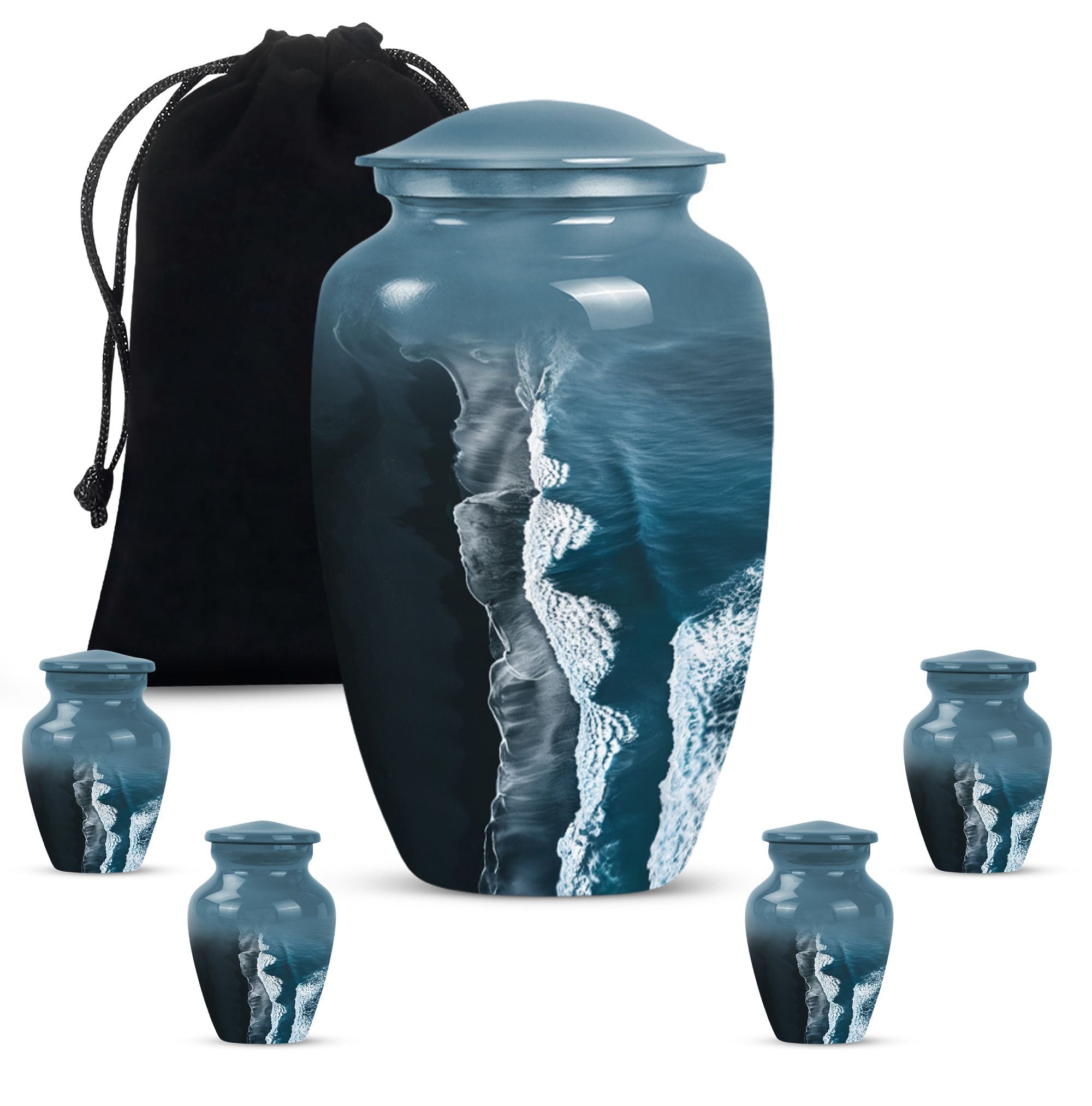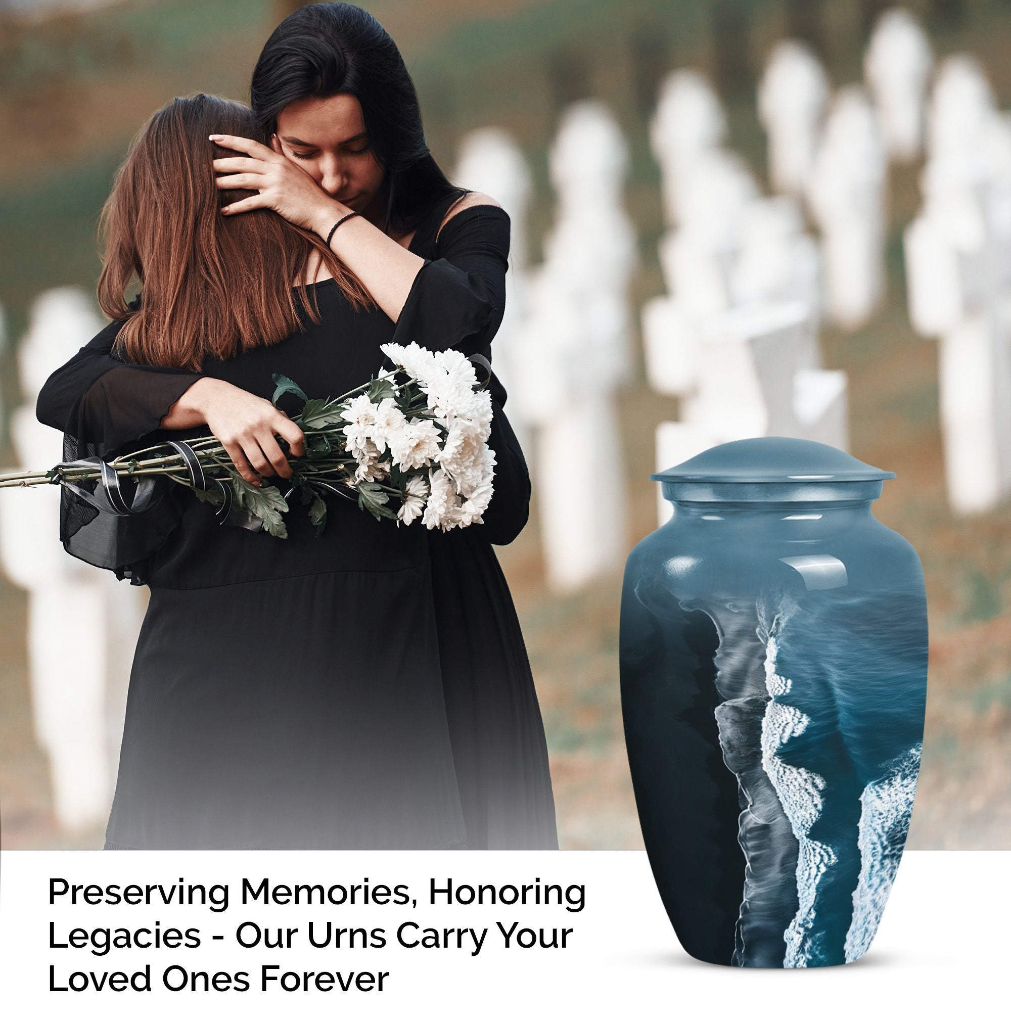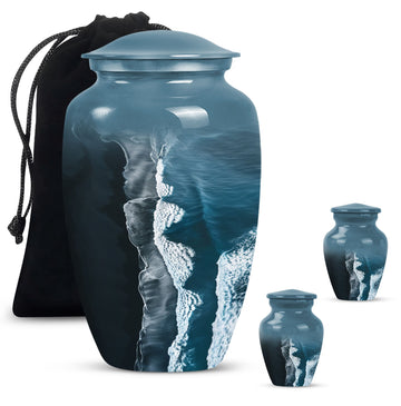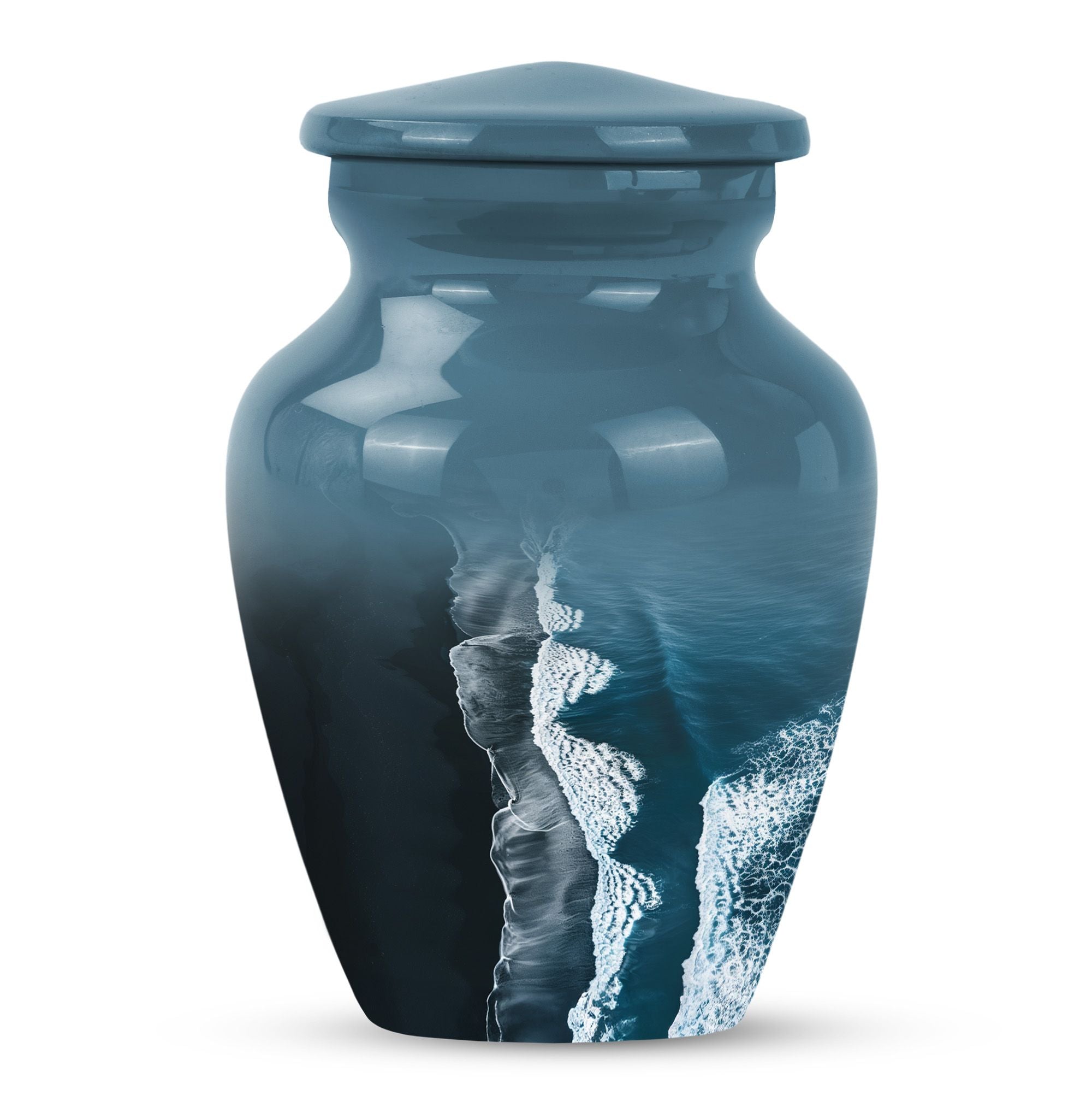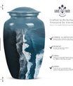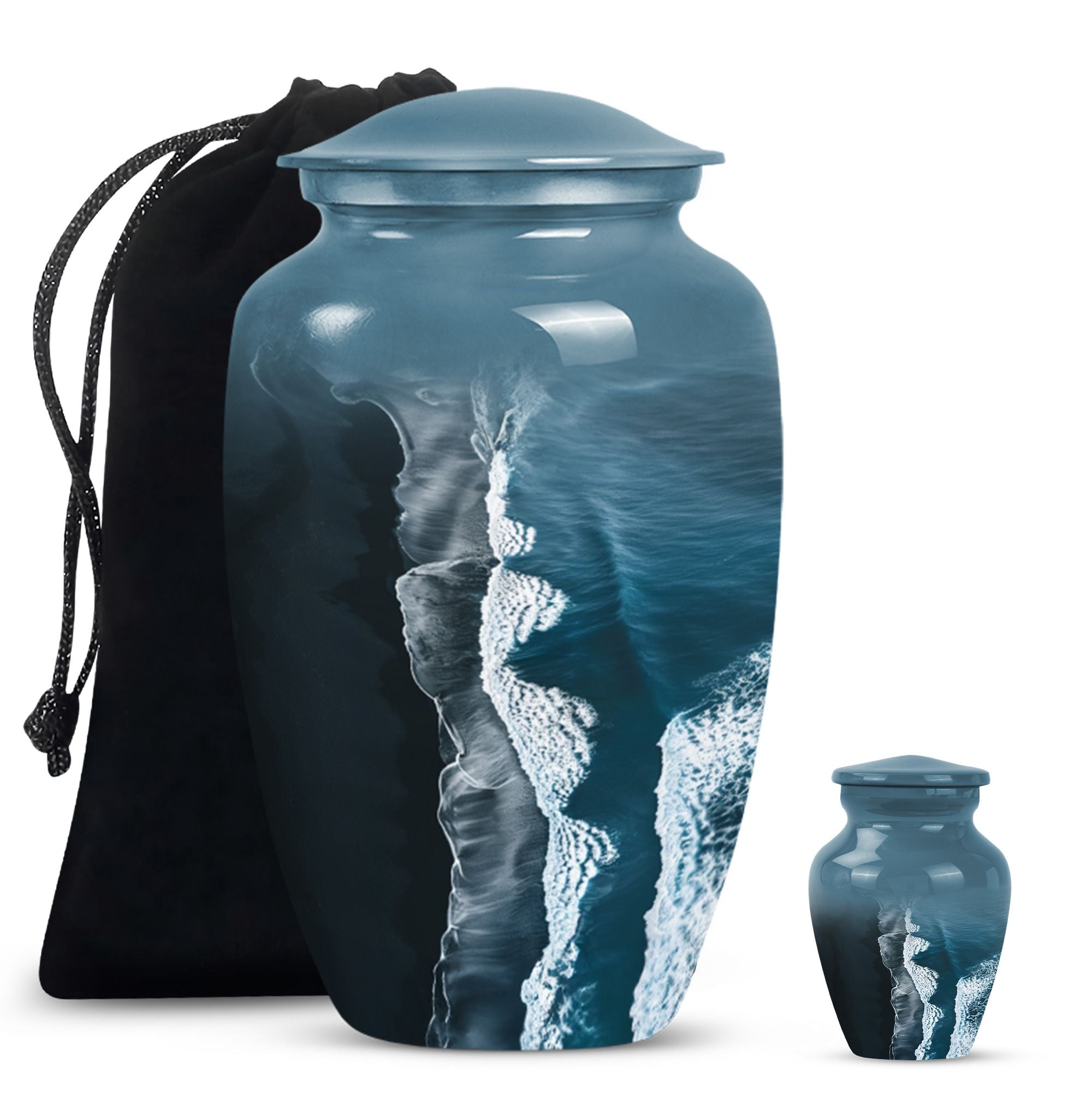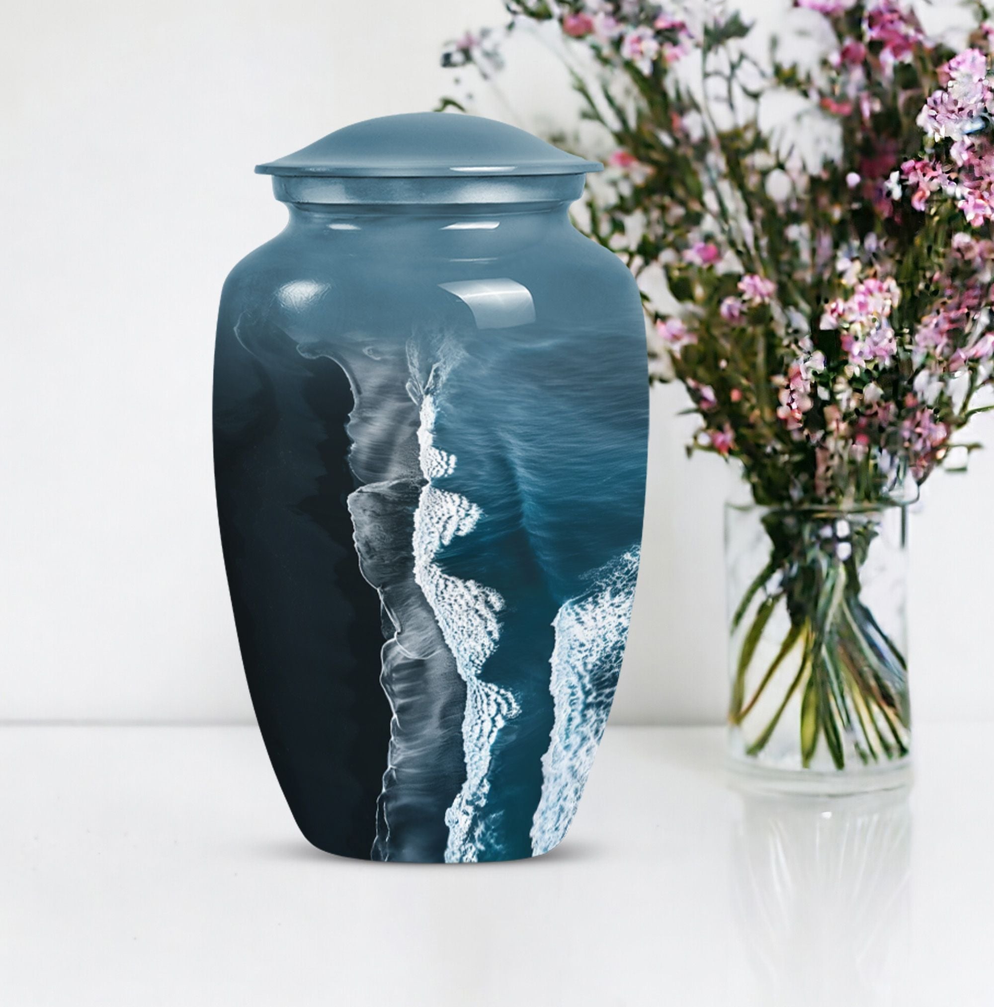Immerse in the serenity of deep ocean waves with our eloquent cremation urn, crafted at a substantial size of 10 inches. This robust urn boasts a weight of 3.3 pounds, resonating its high-quality aluminium material. The distinctive 'Classic Urn' design flaunts a tranquil butterfly theme, each detail meticulously engraved, offering an unconventional appeal to this memorial ceremony supply. Along with the urn, the package includes a velvet pouch for containment of ashes, reiterating our concern for your delicate needs. With a spacious capacity of 200 cubic inches, this urn can respectfully hold the treasured ashes. Providing an additional touch of respect, it also extends customization through personalized engraving. Ideal for adults and seniors who are in seek of 'cremation urn for dad' or 'burial ash urns for humans', this immersive ocean-themed urn truly symbolizes eternity, offering you a peaceful way to remember your loved ones.