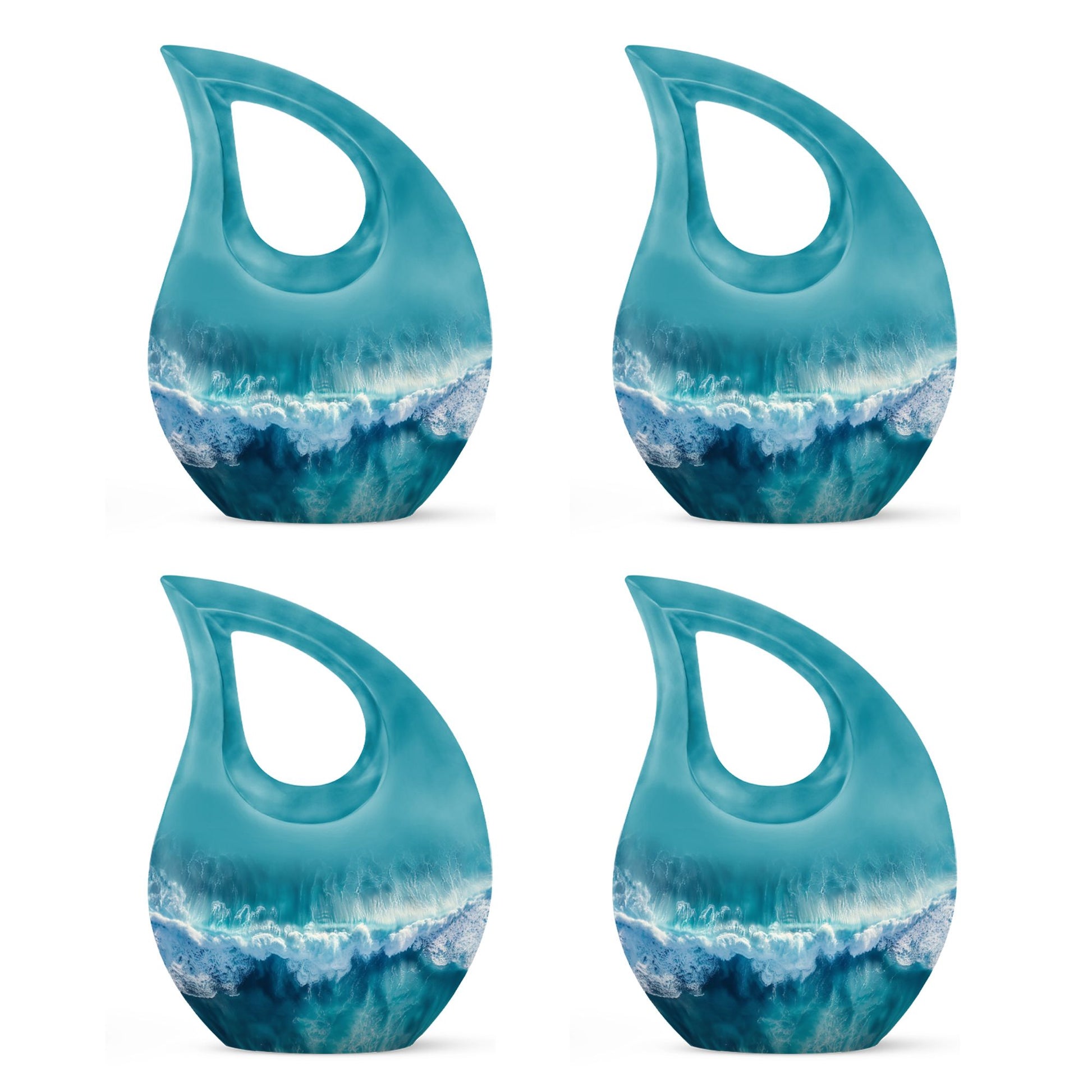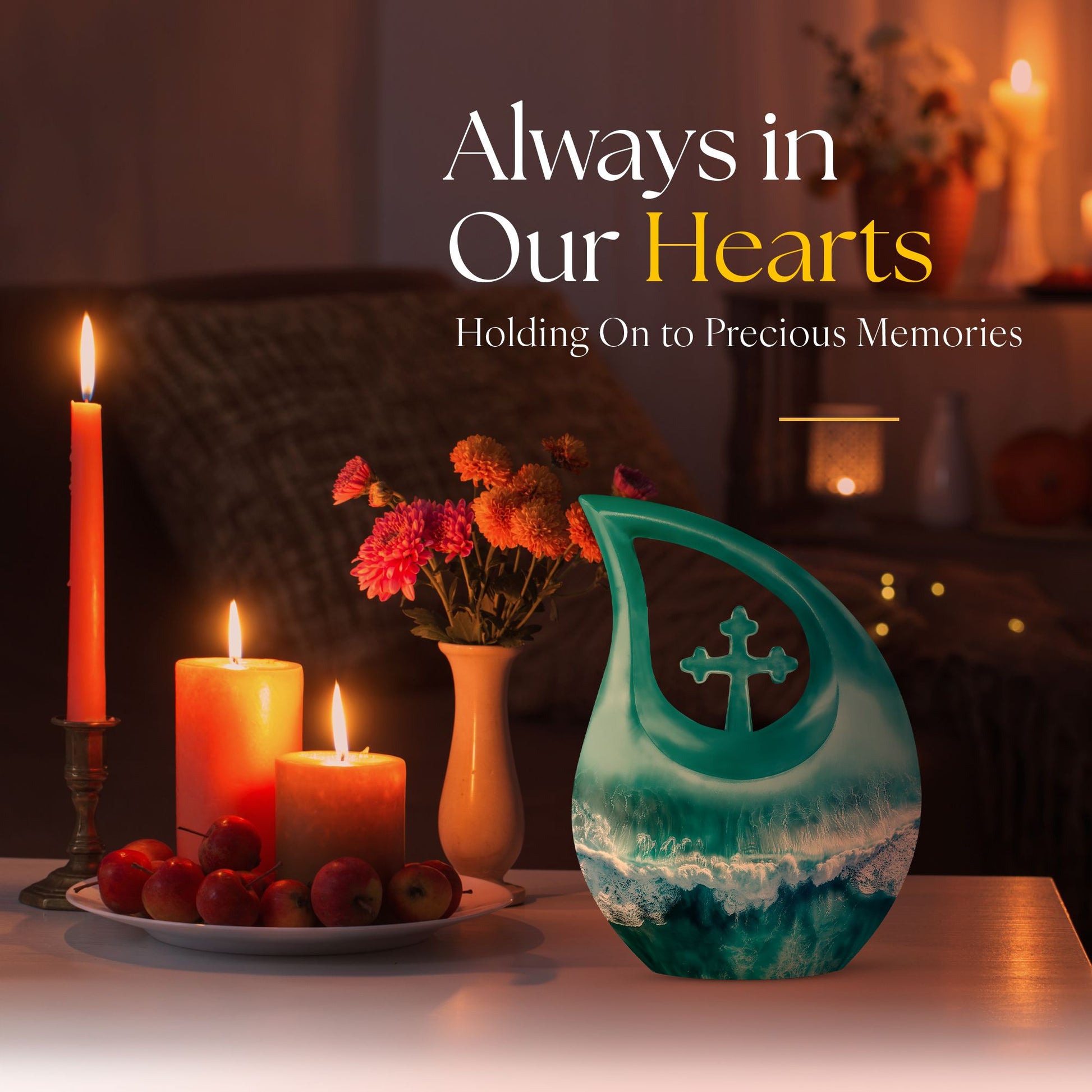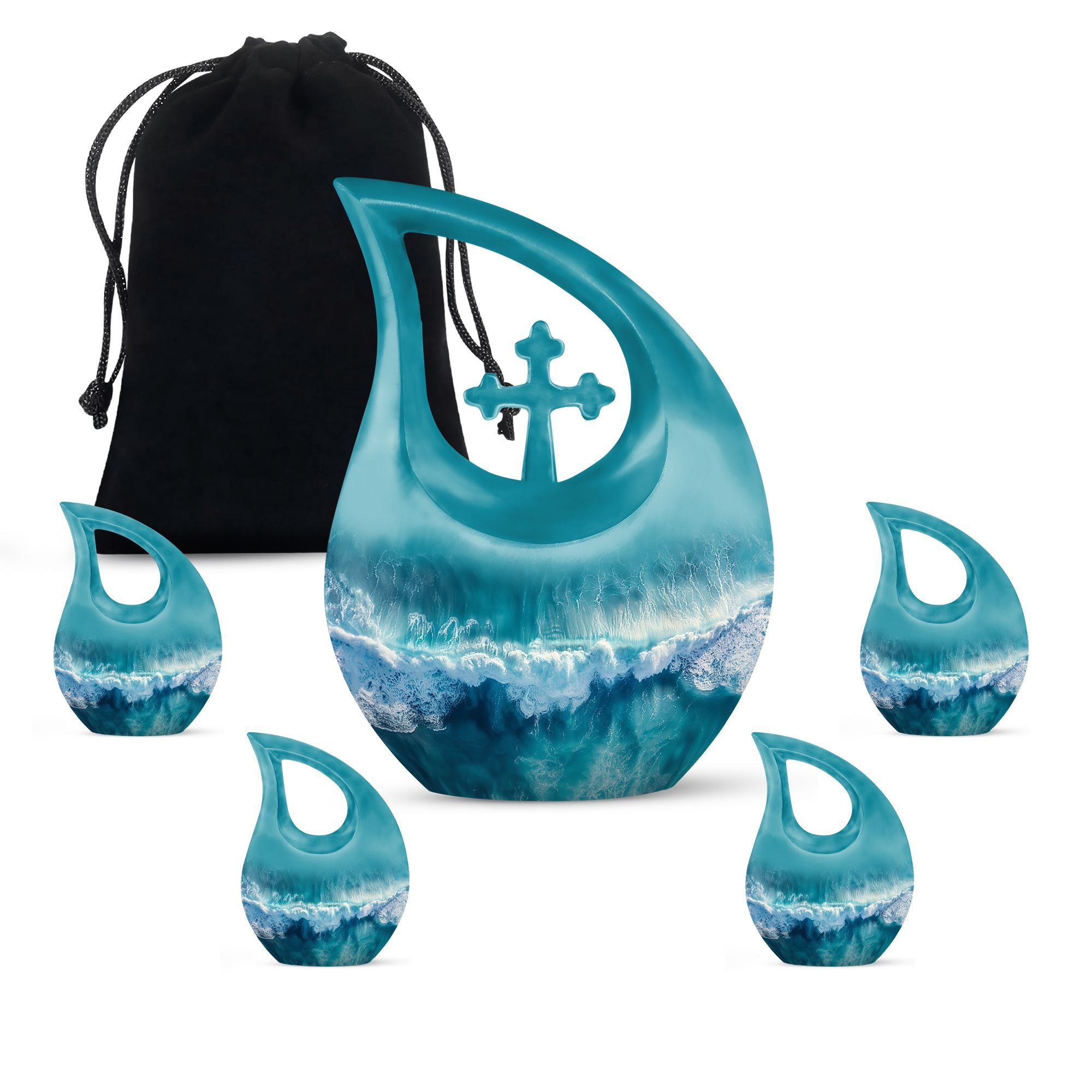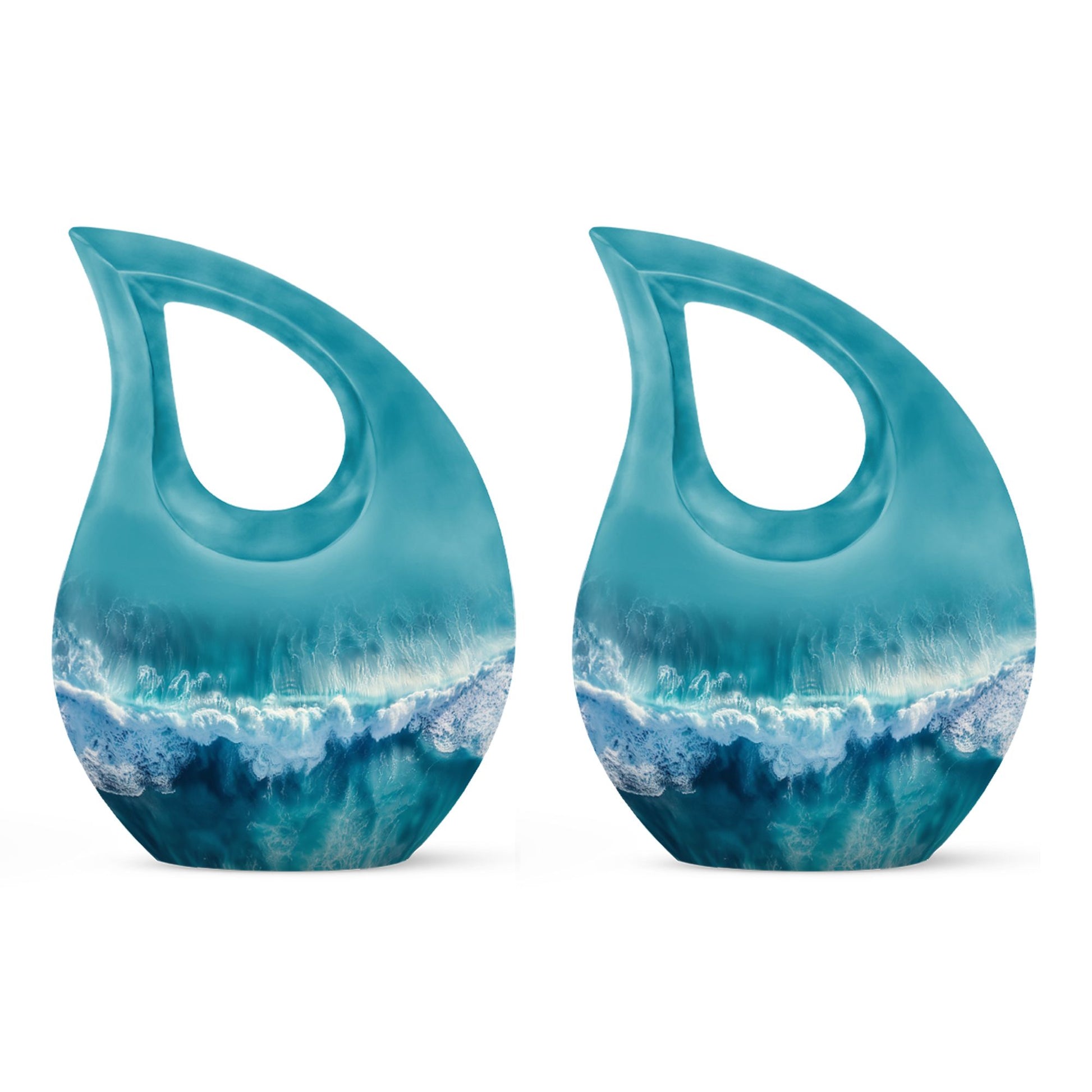 Pay special tribute to your loved ones with our uniquely designed Ocean Waves Urn. Crafted from robust Aluminium, this 10-inch large urn has a hauntingly beautiful 'Cross Drop' theme reminiscent of ocean waves. With a sizeable capacity of 200 cubic inches and weighing just 3.3 pounds, it can respectfully hold the ashes of a loved one. The urn comes with a soft velvet pouch, assuring secure containment and respectfully tribute. For added uniqueness, you have the option to personalize this urn with engraved names, making it a truly unique and precious keepsake. Ideal for both adults and seniors, this urn fits well under the 'Urns For Human Ashes' category, serving as an elegant choice for memorial urns. Notably, its unique design might also cater to searches for 'Pink Urns For Human Ashes', 'Urn For Mom', 'Butterfly Urns For Ashes' or 'Angel Urn'.