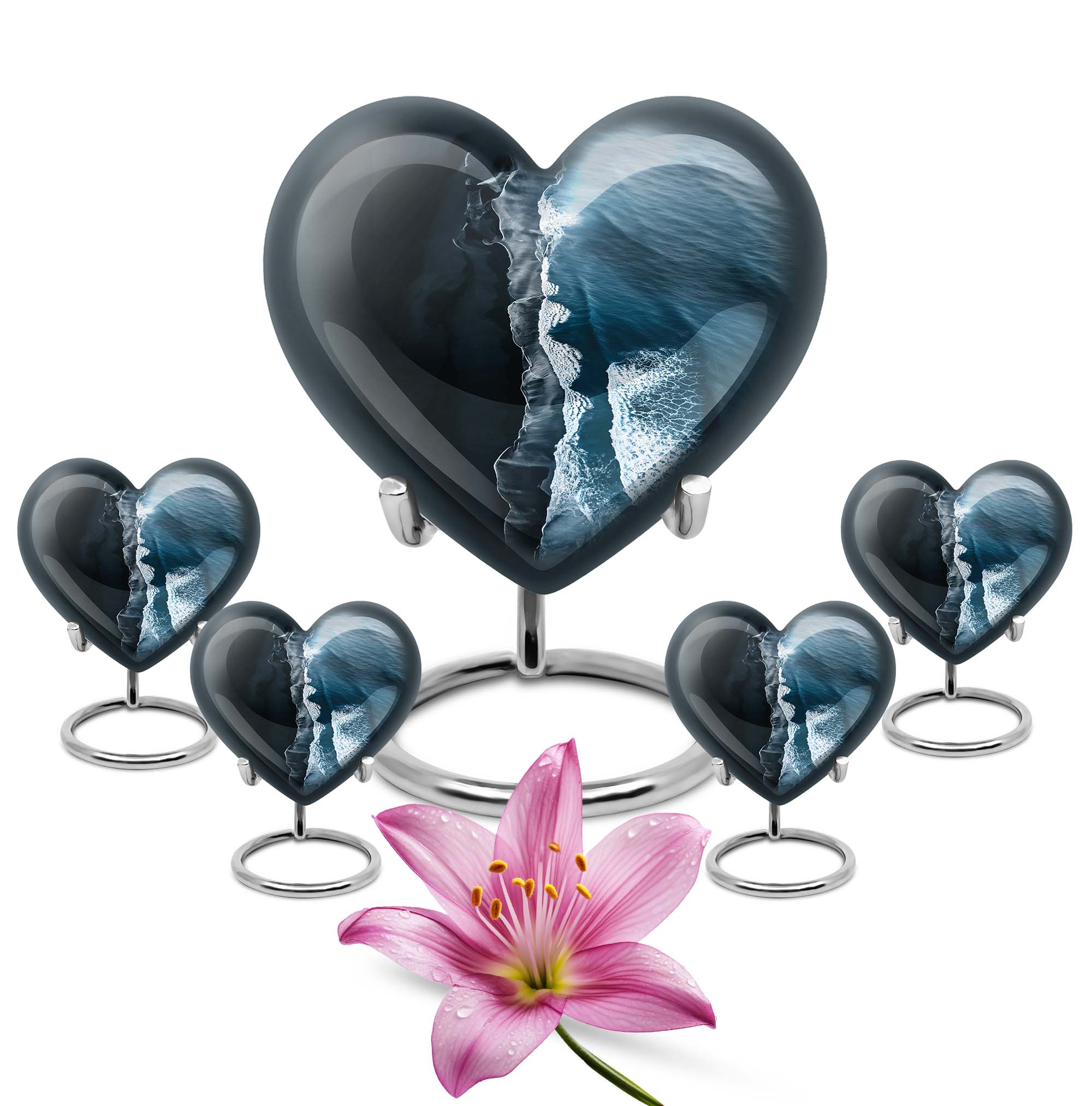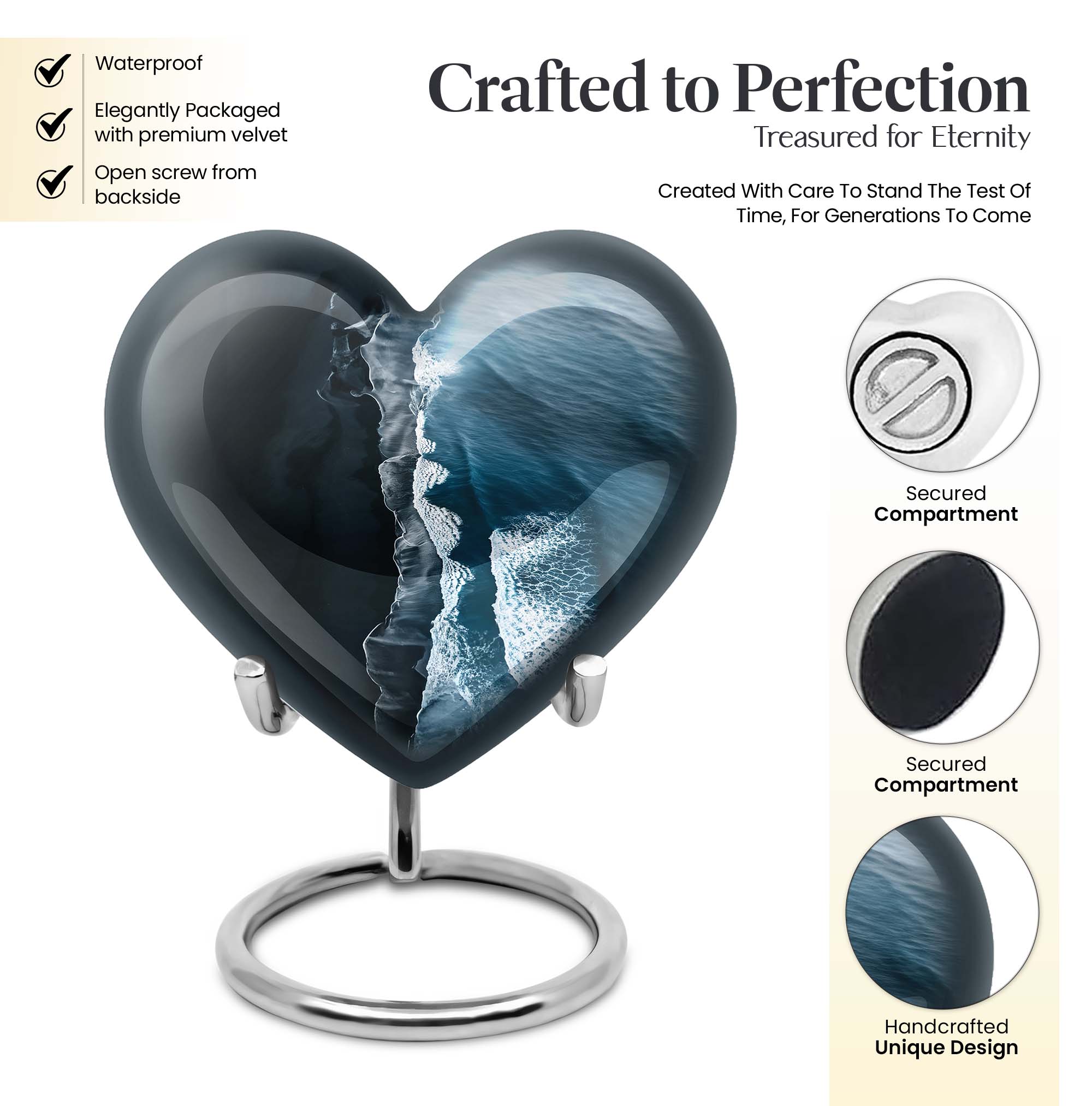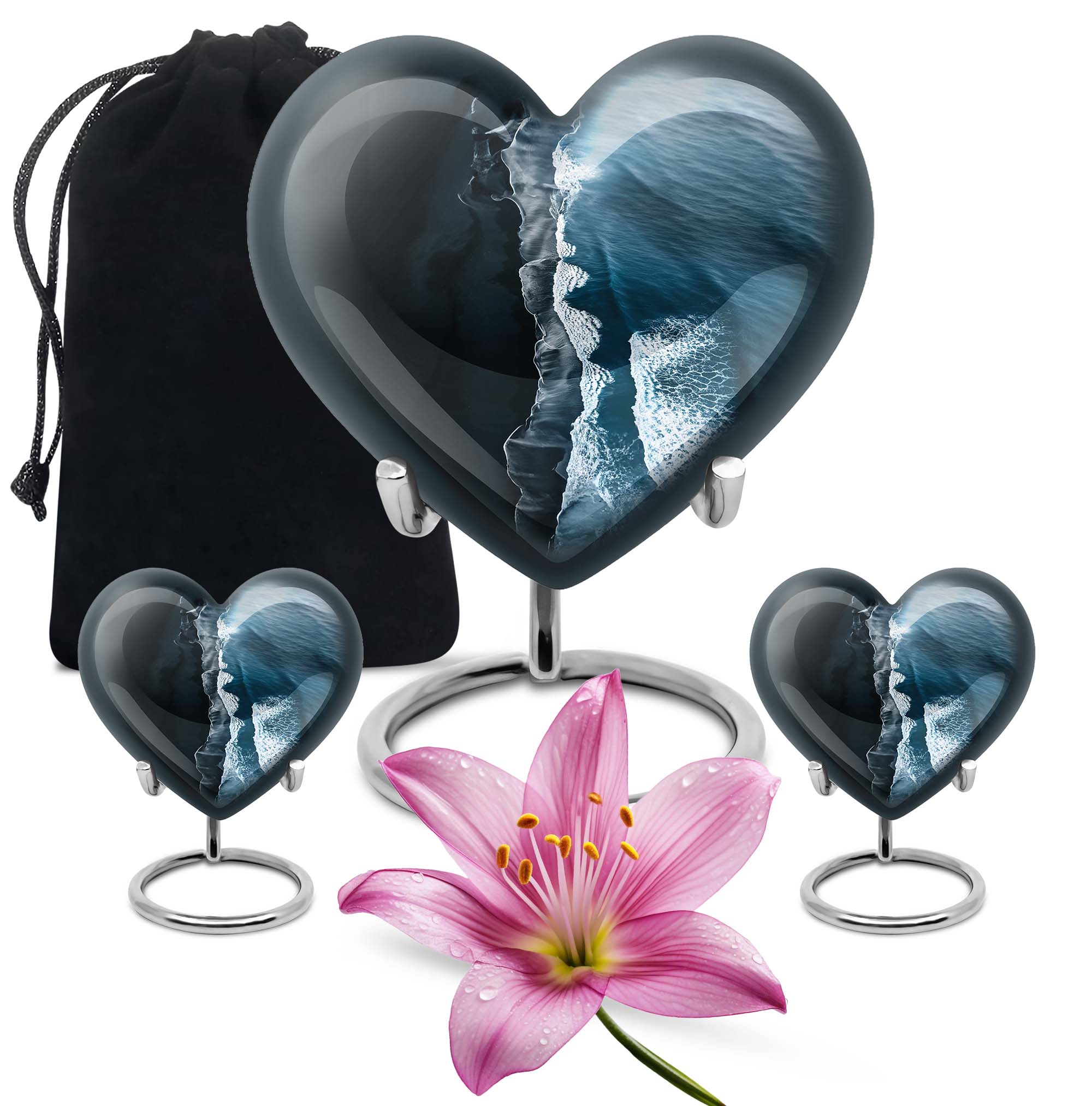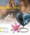 Honor the memory of your cherished loved one with our captivating 'Ocean Waves Urn,' a top-quality choice in the category of large-sized urns. This unique, heart-shaped cremation urn stands 10 inches tall, crafted from strong and long-lasting Aluminium. Measuring at 3.3 pounds, it provides ample space with a capacity of an impressive 200 cubic inches. Our cremation urn is meticulously designed with a beautiful butterfly theme, radiating serenity and love. The urn for human ashes arrives with a soft velvet pouch, ensuring safe containment of the ashes, offering peace of mind for adults and seniors alike. For a personal touch, take advantage of our customization option and personalize with engraved names. This makes a perfect, touching memorial for a parent with the alternative title, 'cremation urn for dad.' Search keywords include 'burial ash urns for humans' and 'human ash urn ashes.'