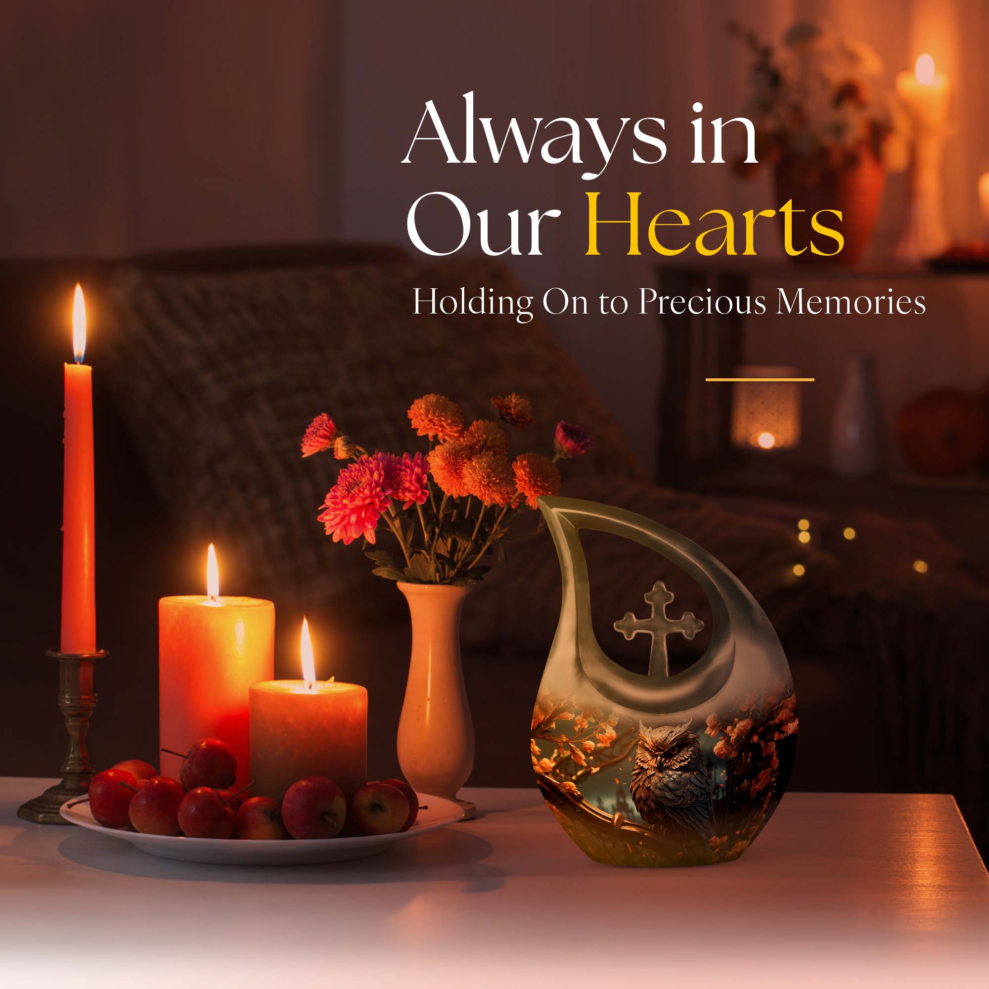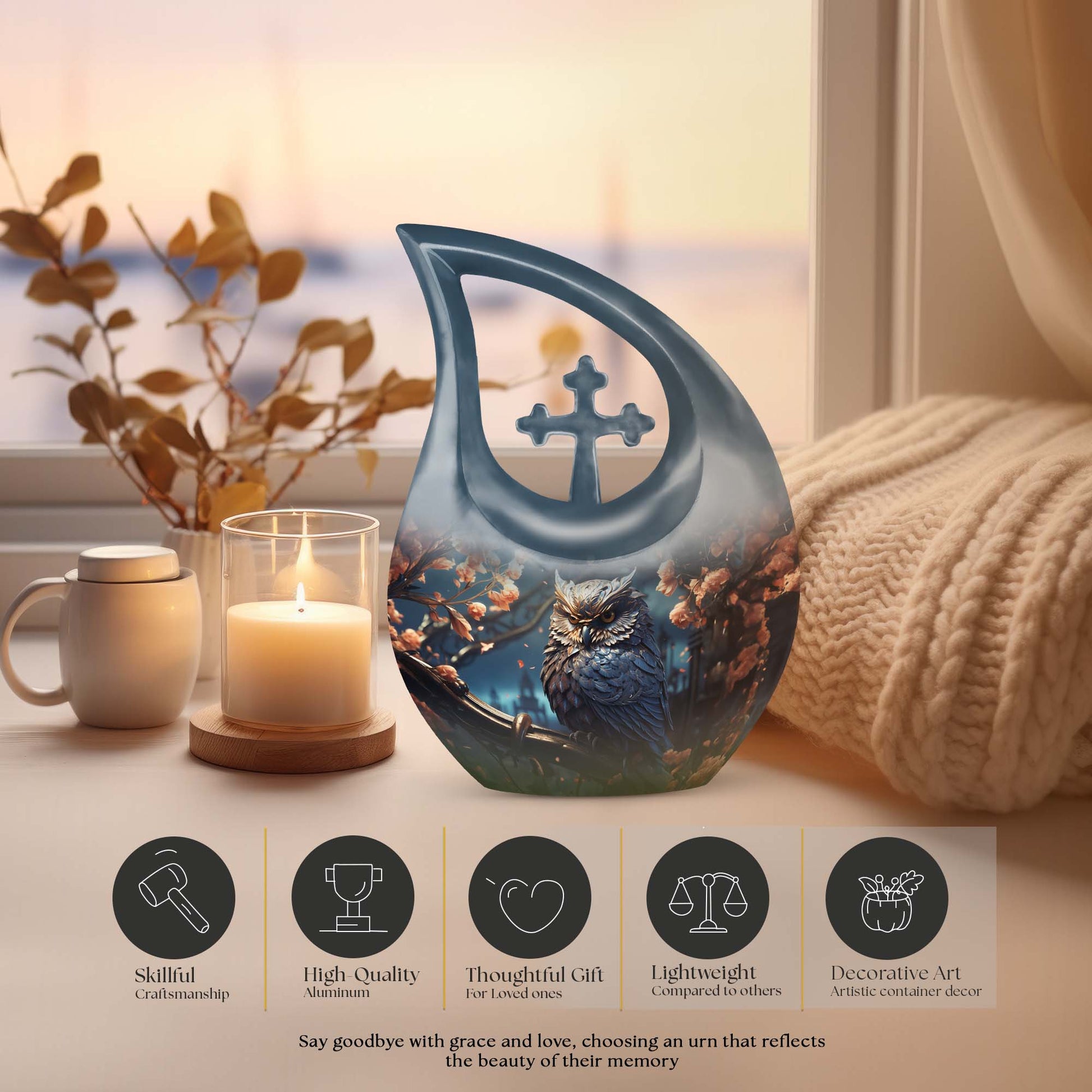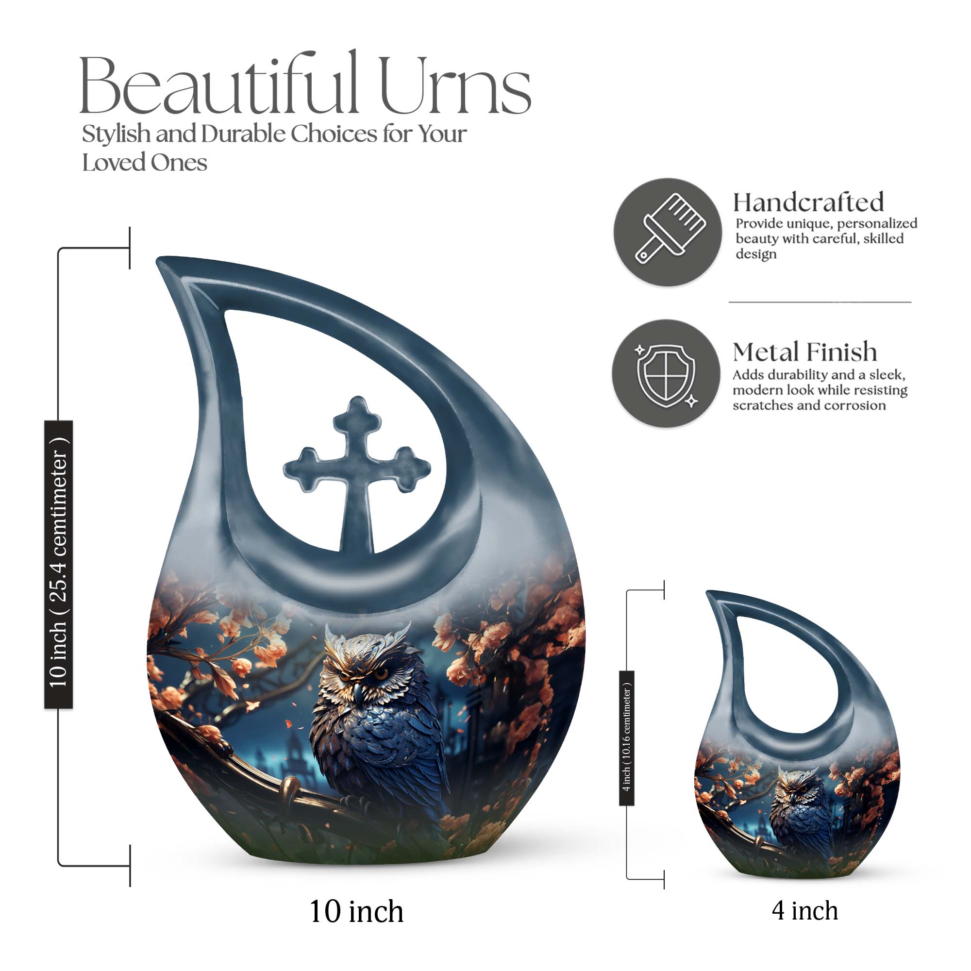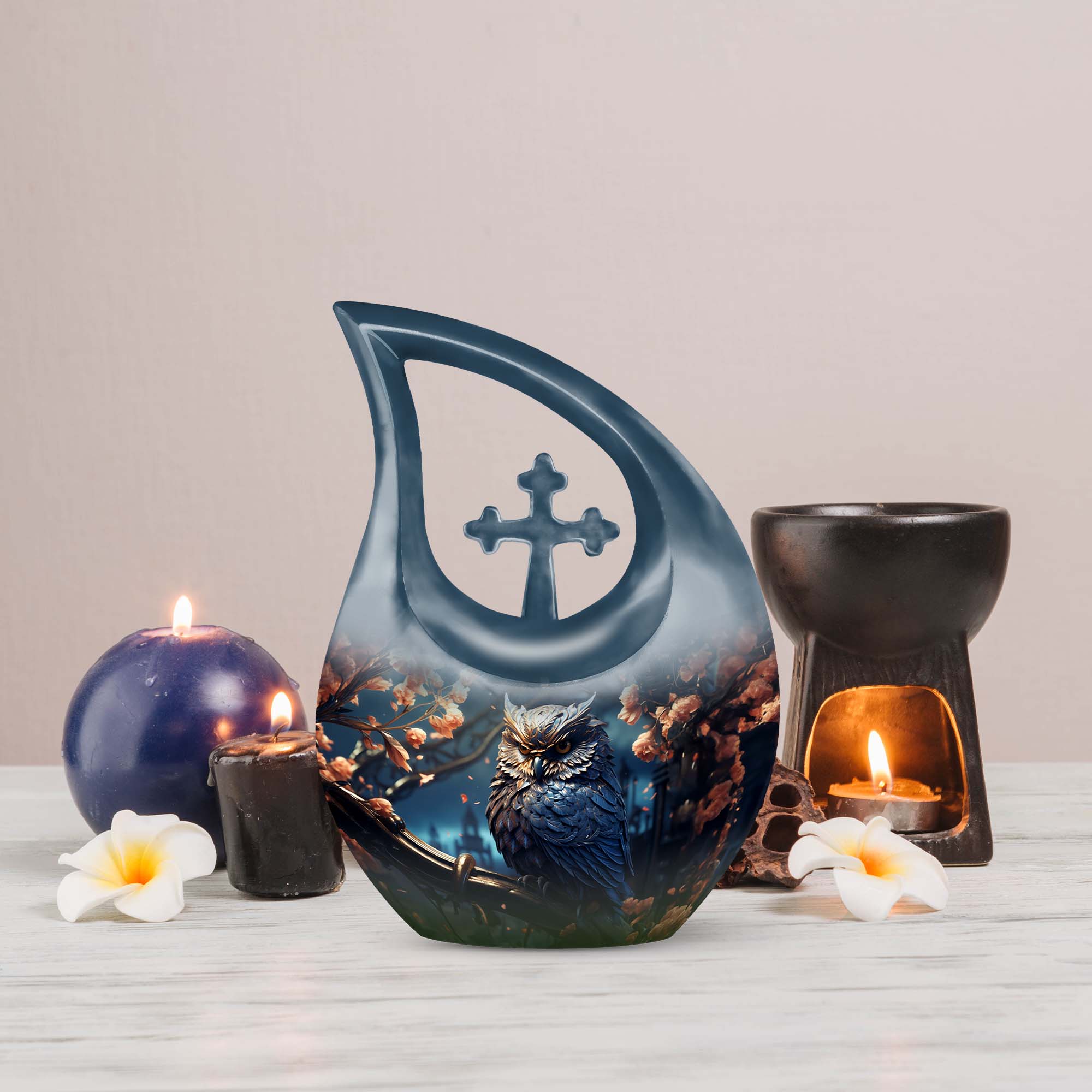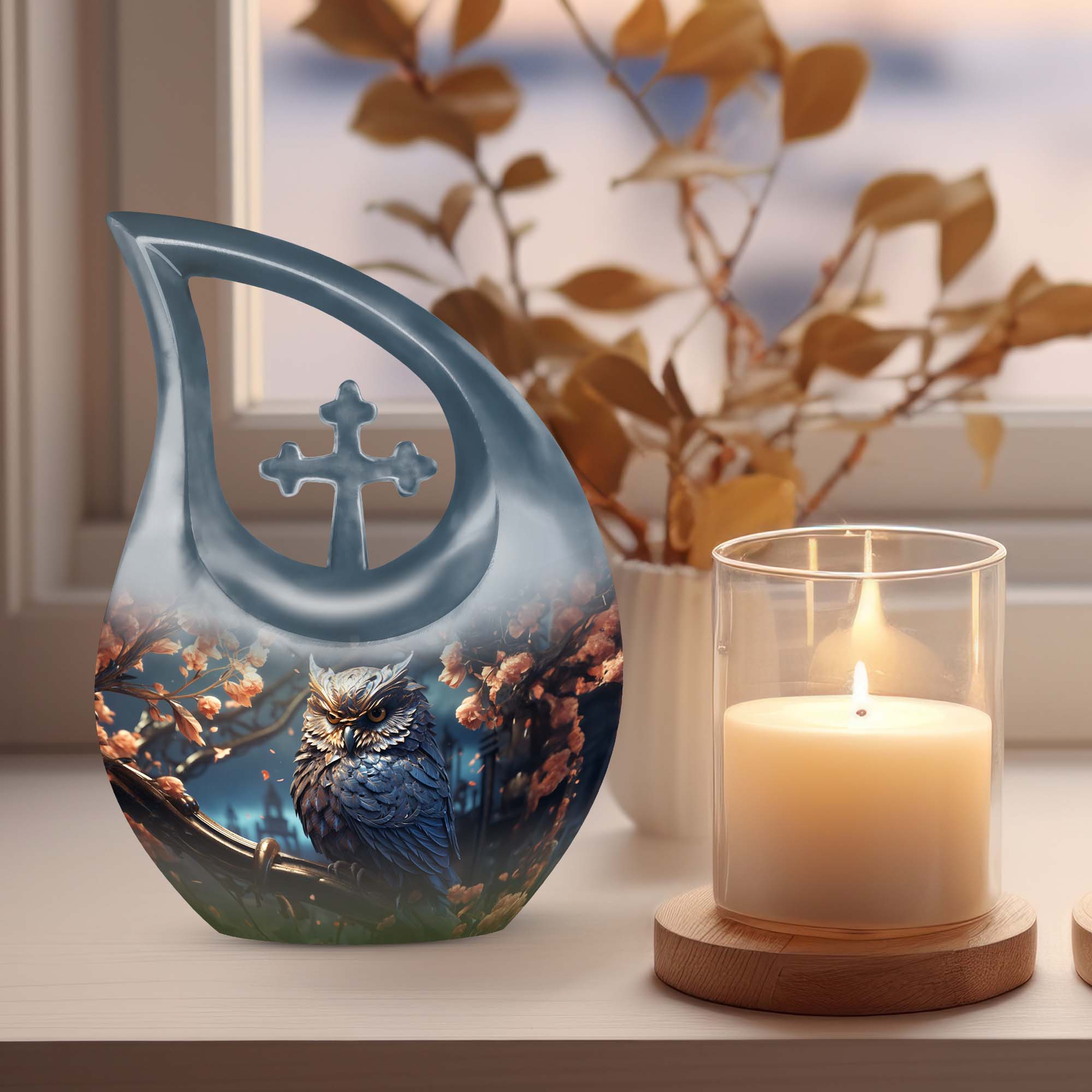 Crafted with precision from durable aluminum, this urn is built to last while maintaining an elegant presence. The owl motif makes it a unique choice for funeral urns for adult ashes women or urns for human ashes male, ensuring it holds both beauty and meaning. Its secure design provides peace of mind, while its craftsmanship ensures it can be displayed as part of your funeral décor urn collection with grace and dignity.
